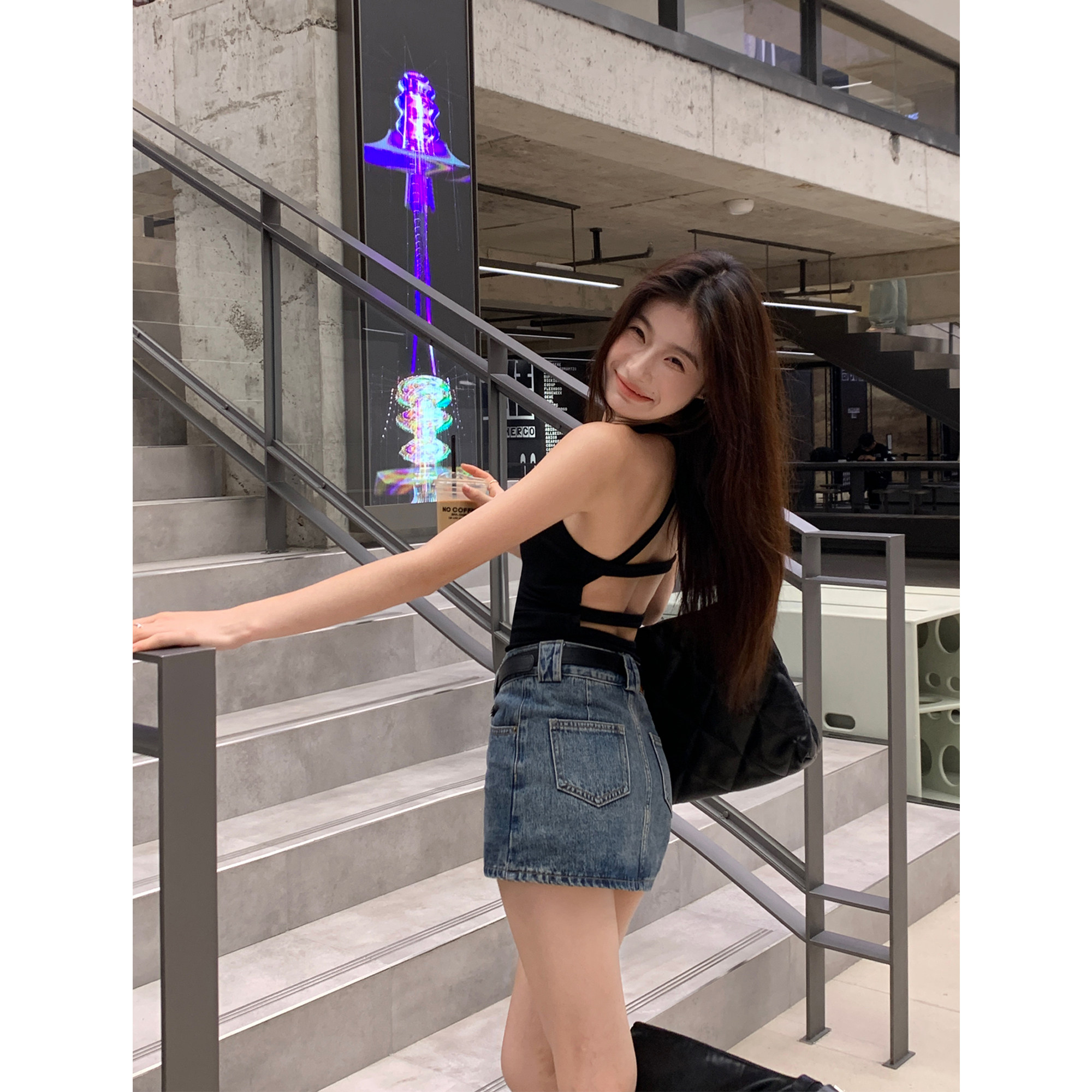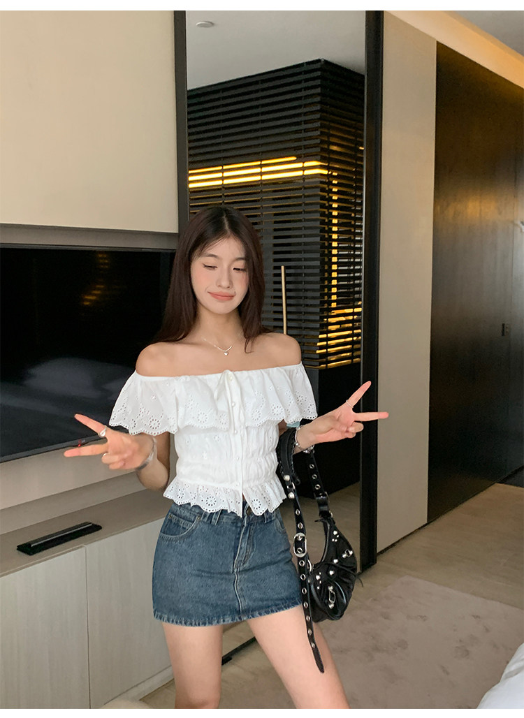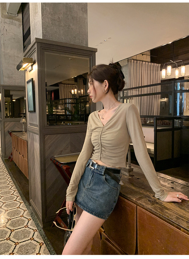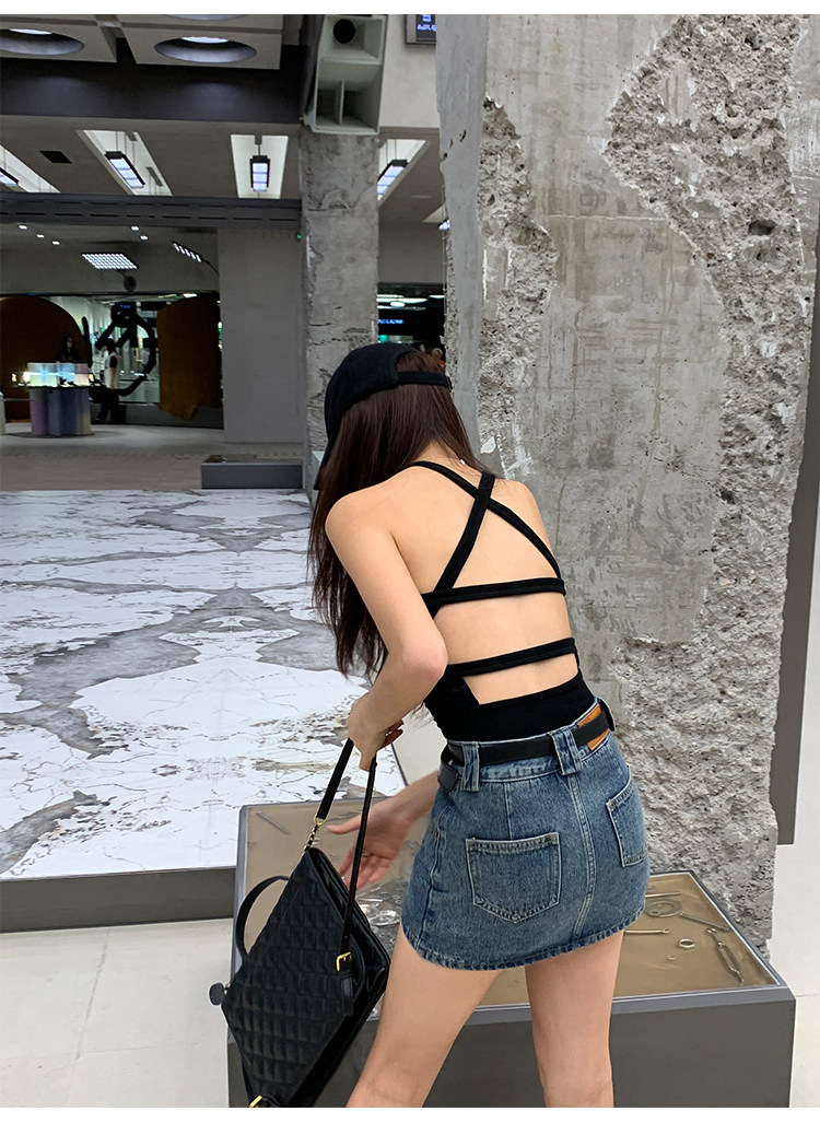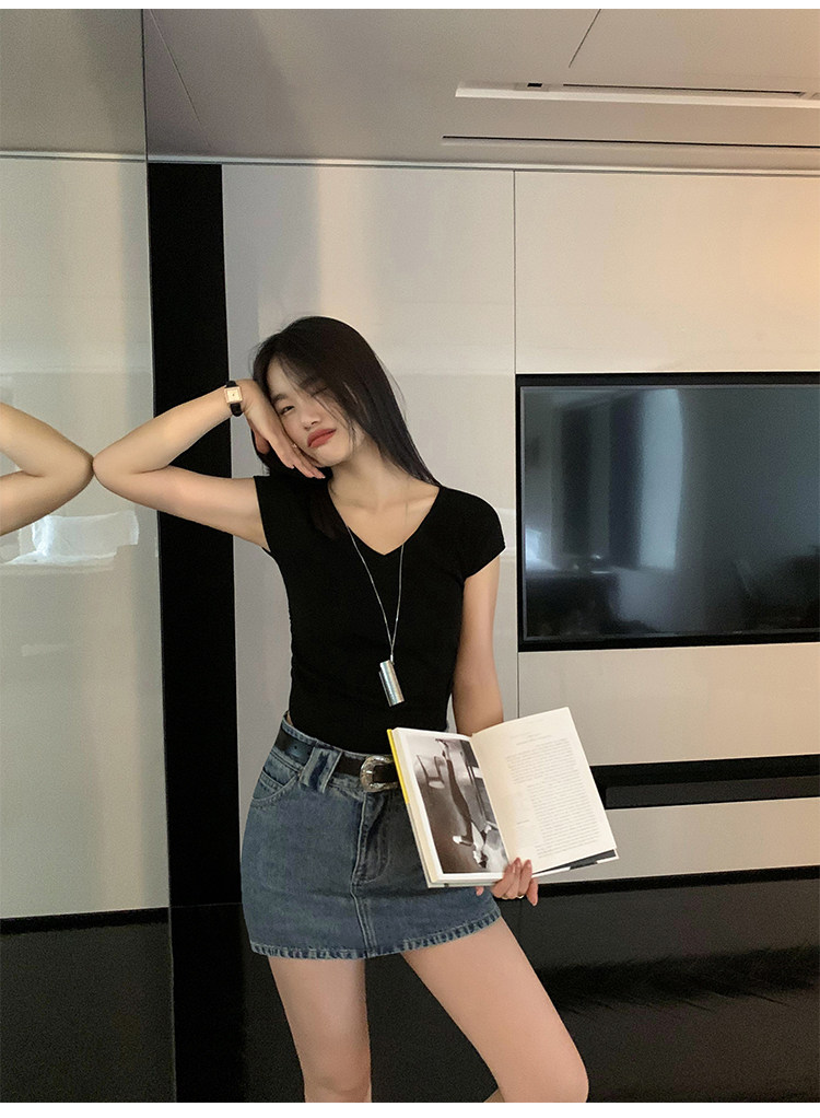 pusumede Джинсовая юбка, мини-юбка, с акцентом на бедрах, облегающий крой, А-силуэт
