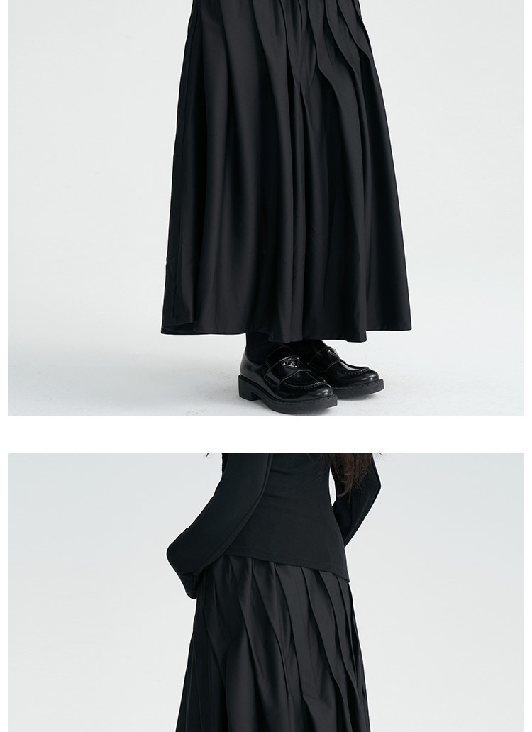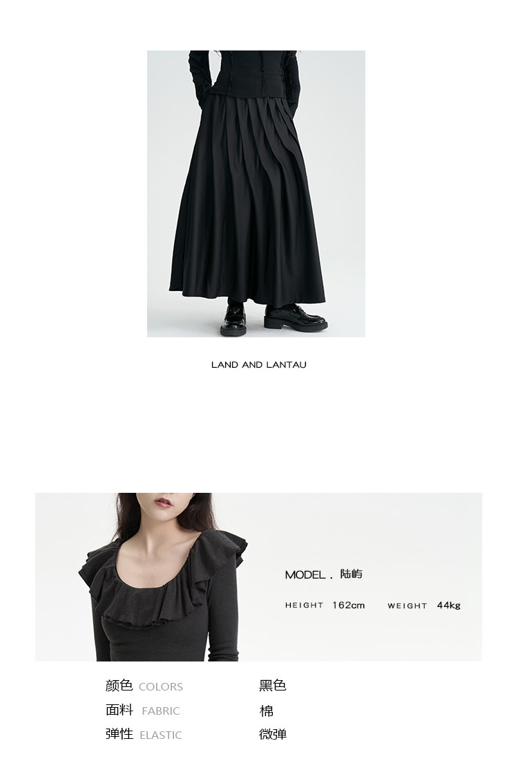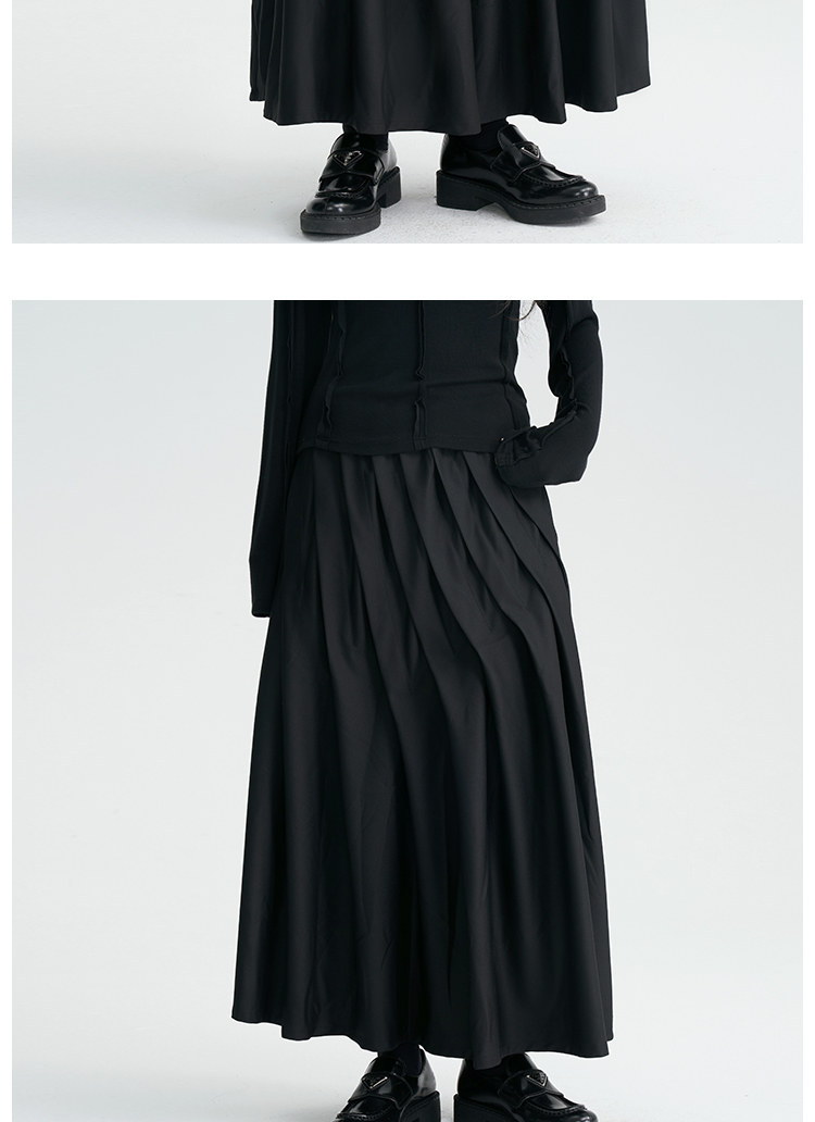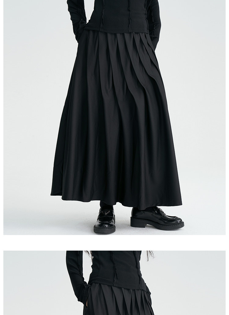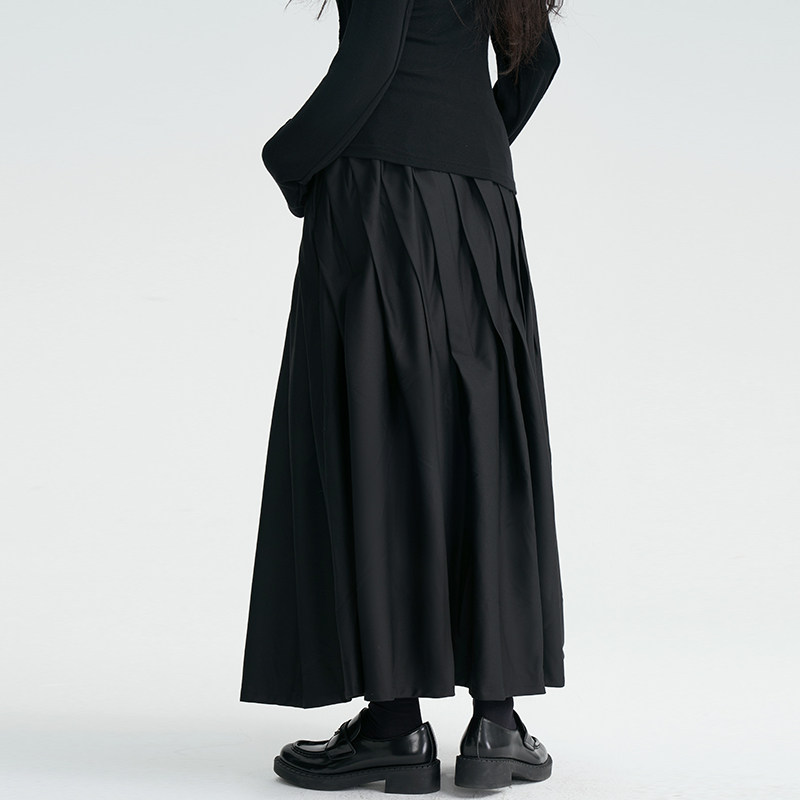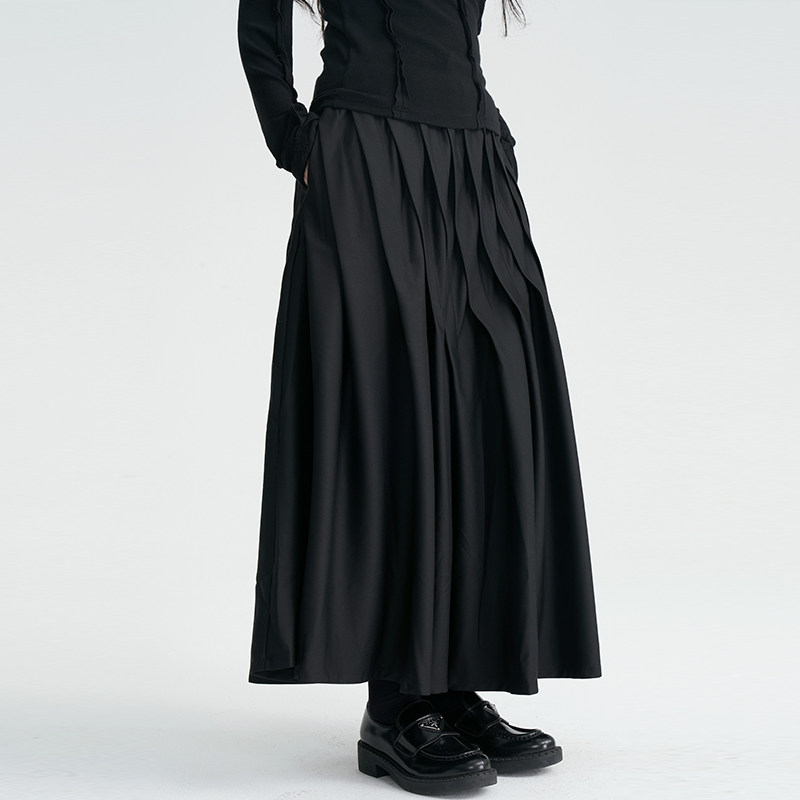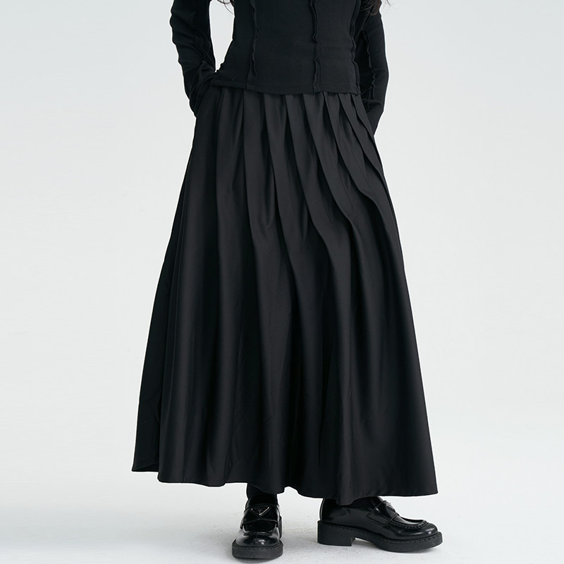 陆与山屿 Черная дизайнерская юбка в складку, длинная длинная юбка, тренд сезона, А-силуэт
