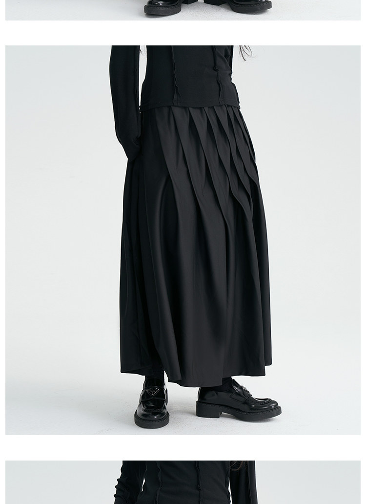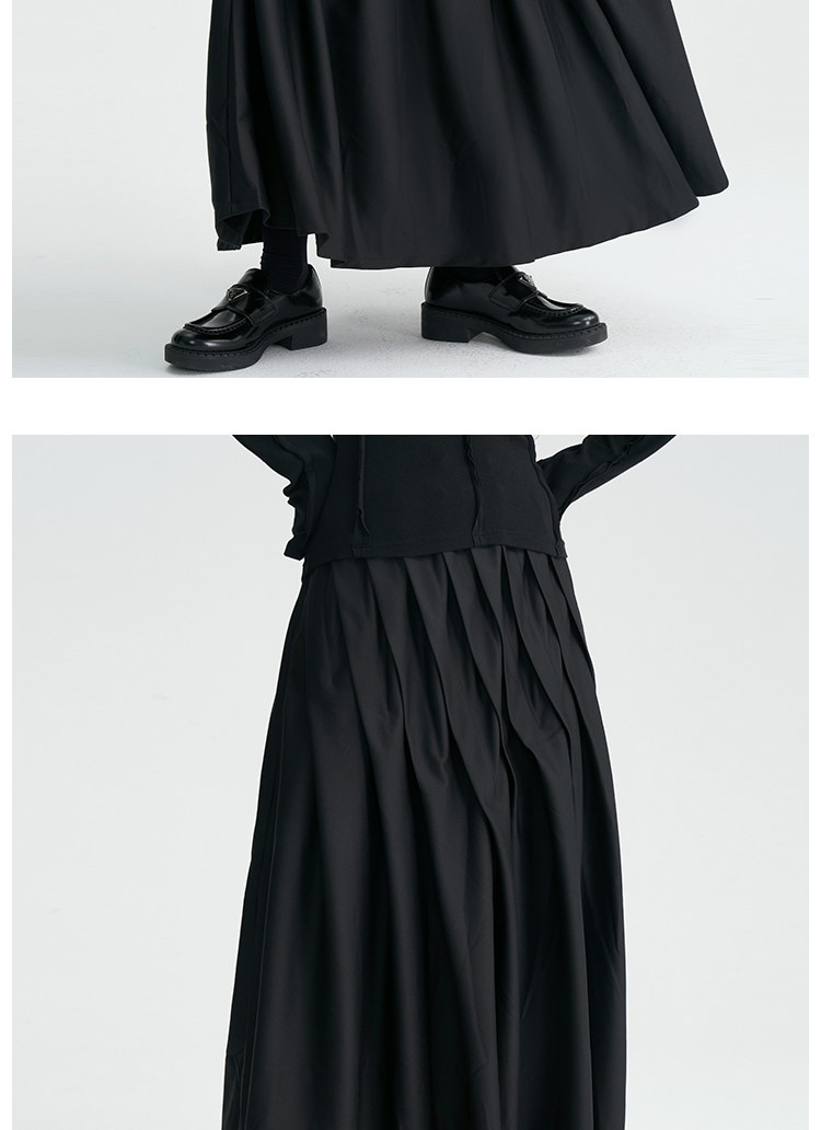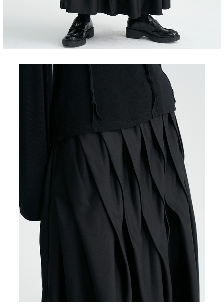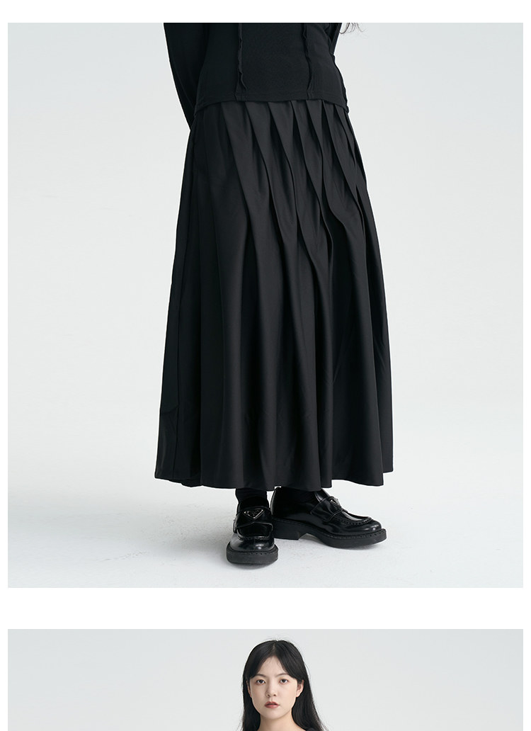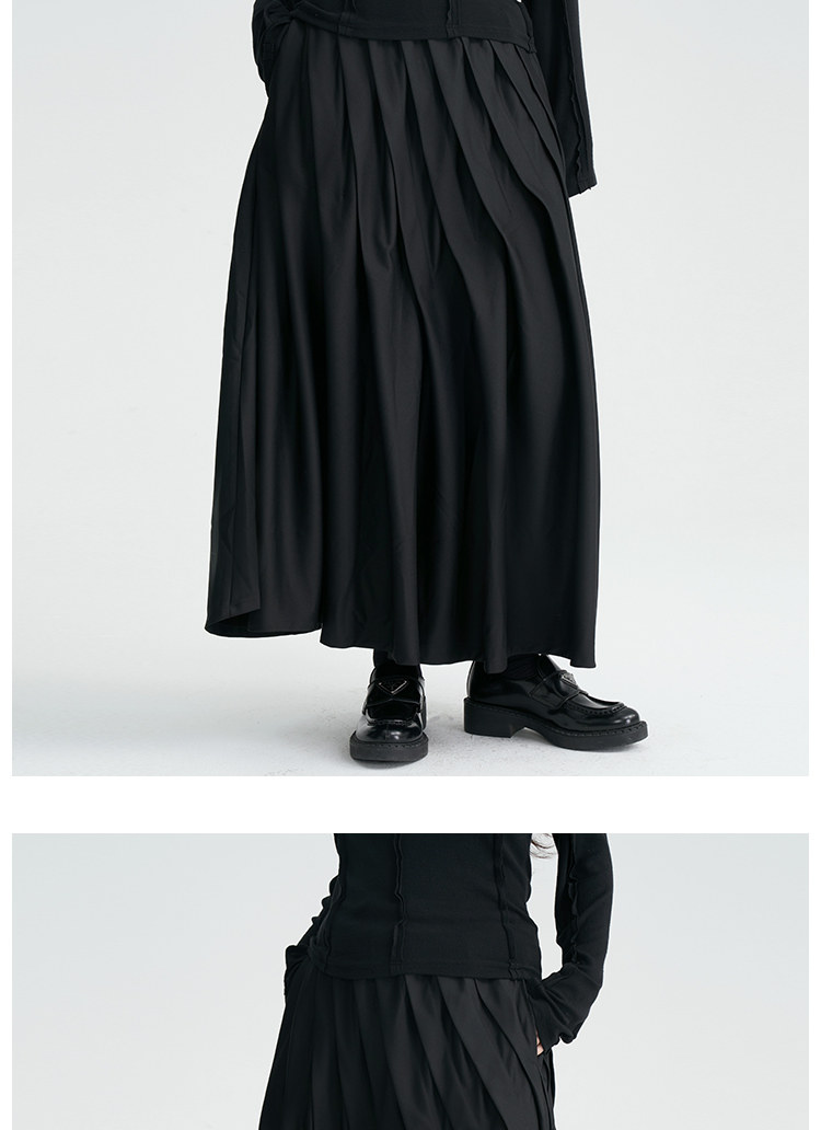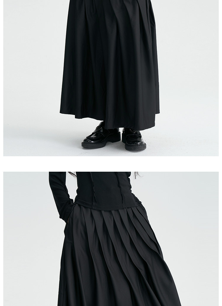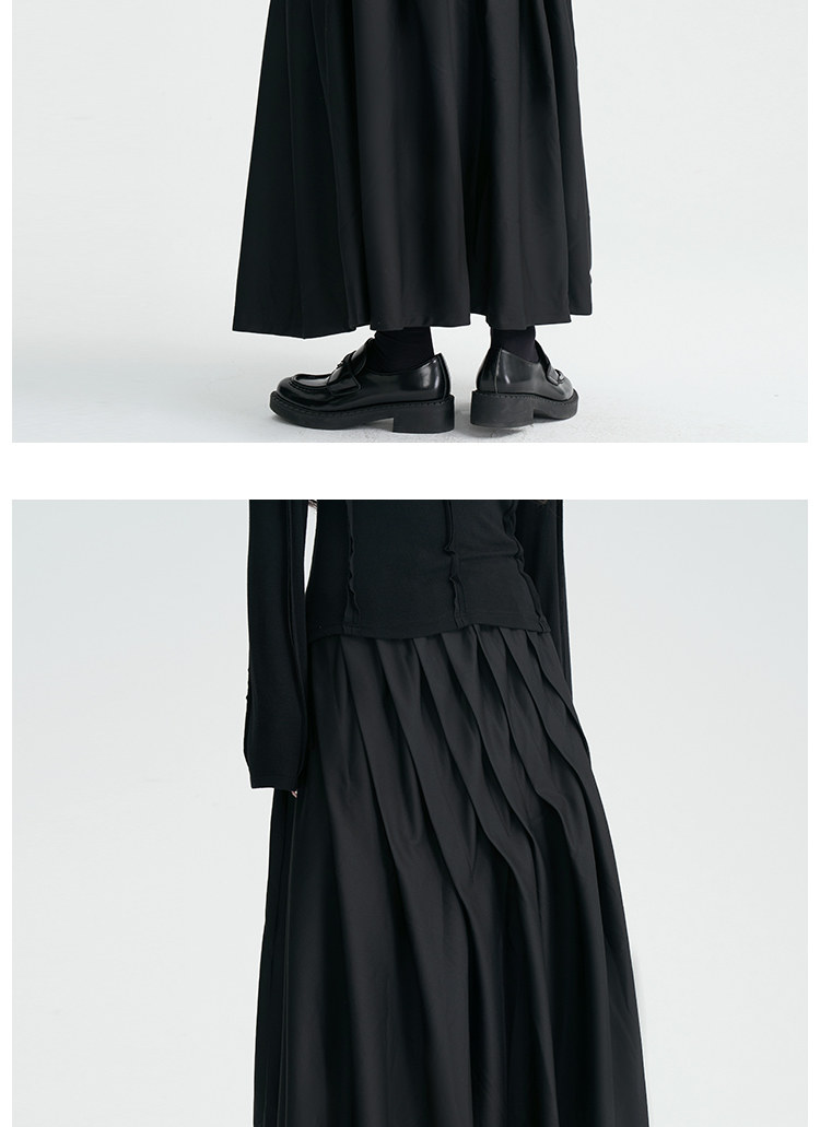 陆与山屿 Черная дизайнерская юбка в складку, длинная длинная юбка, тренд сезона, А-силуэт
