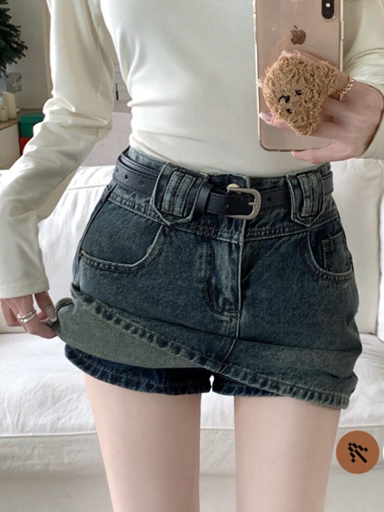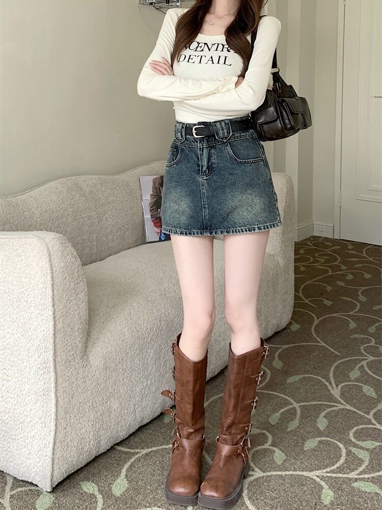 Весенняя джинсовая юбка, приталенная брендовая мини-юбка, в американском стиле, высокая талия, с акцентом на бедрах, А-силуэт