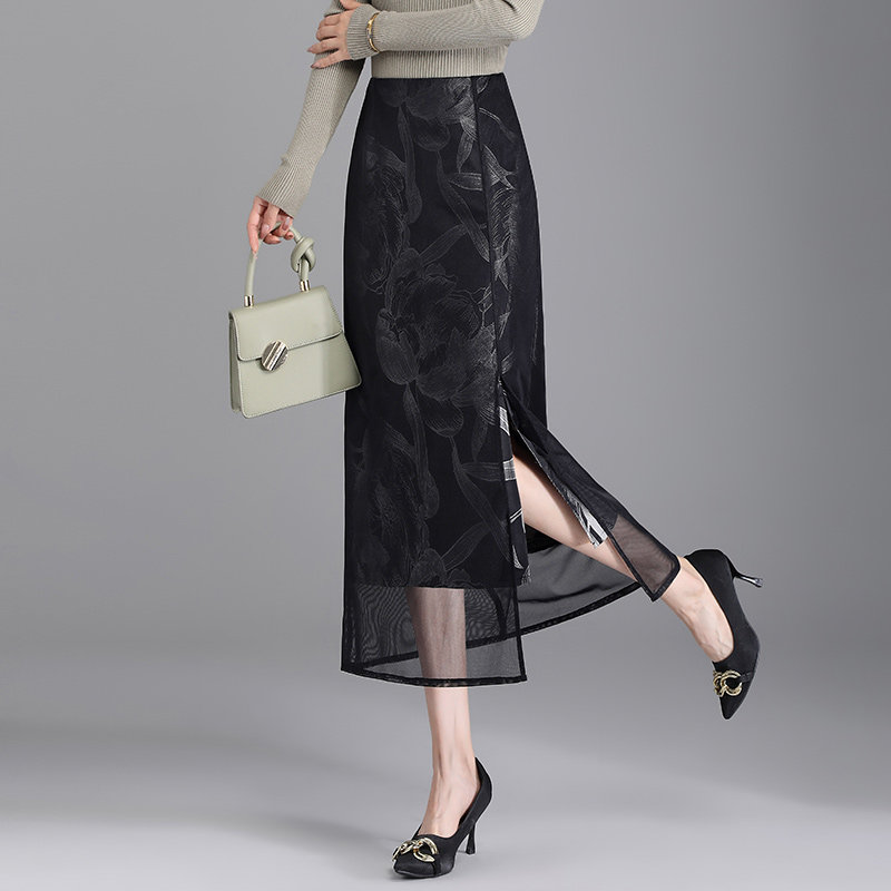 Ретро летняя юбка, цветочный принт, с акцентом на бедрах, свободный прямой крой