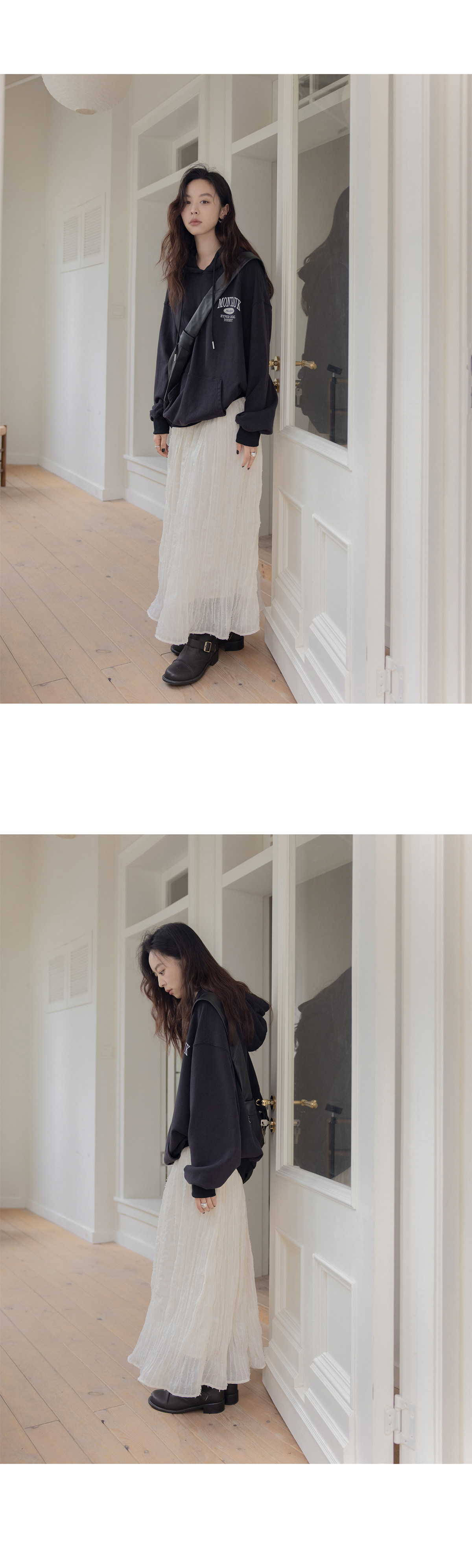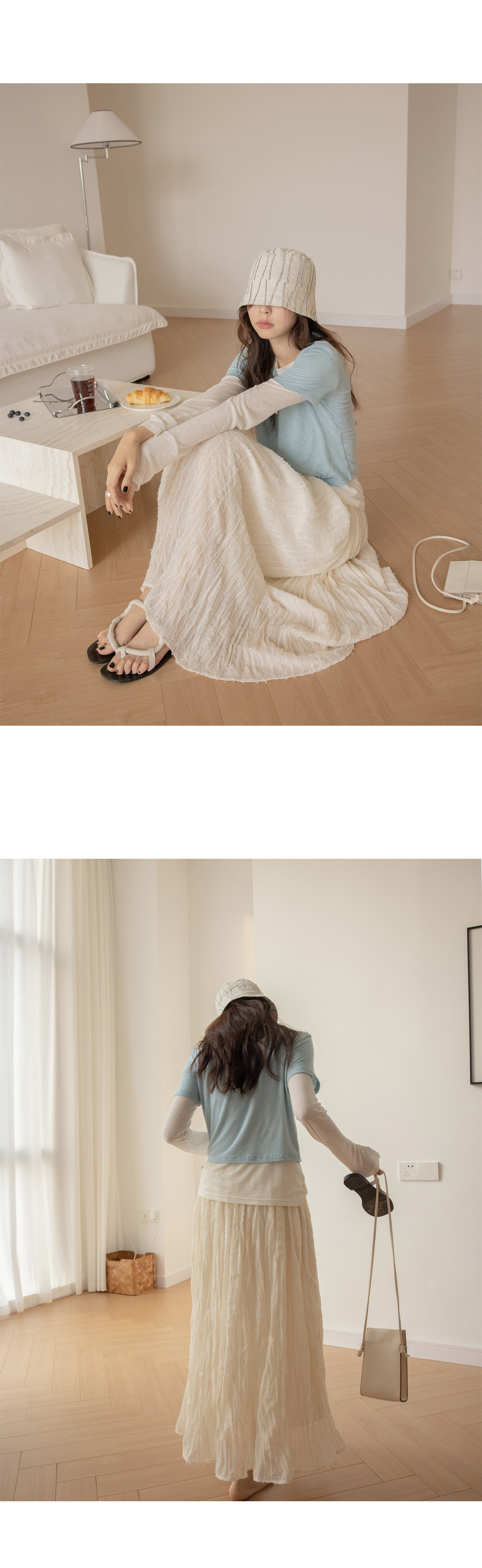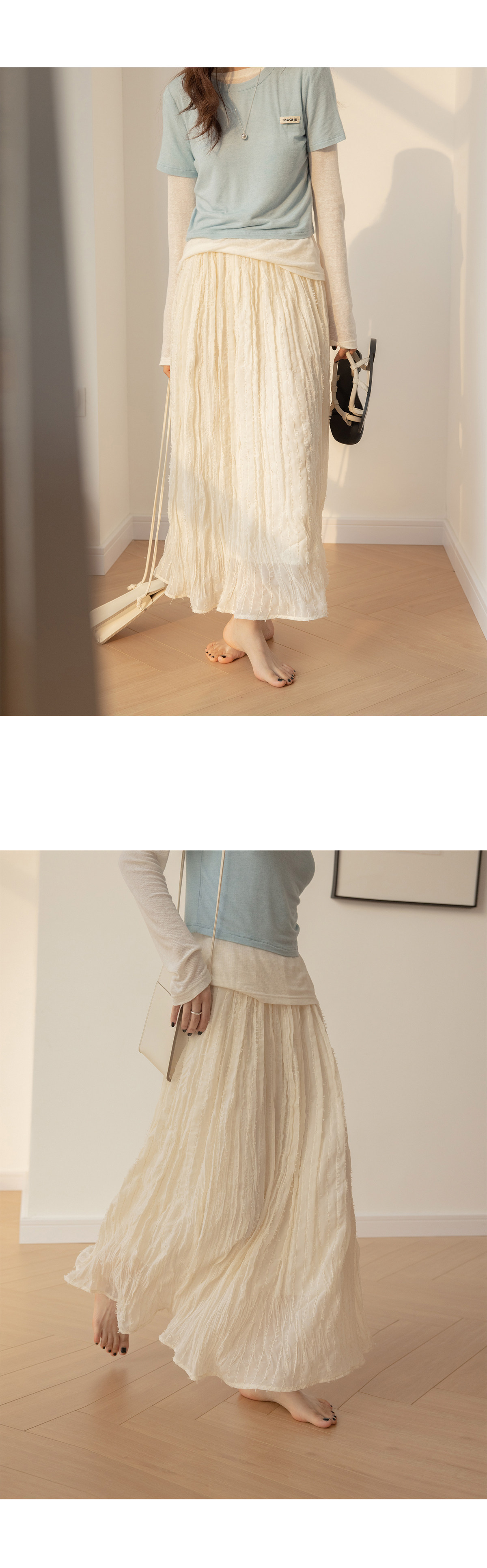 Белая длинная однотонная юбка, эластичная талия