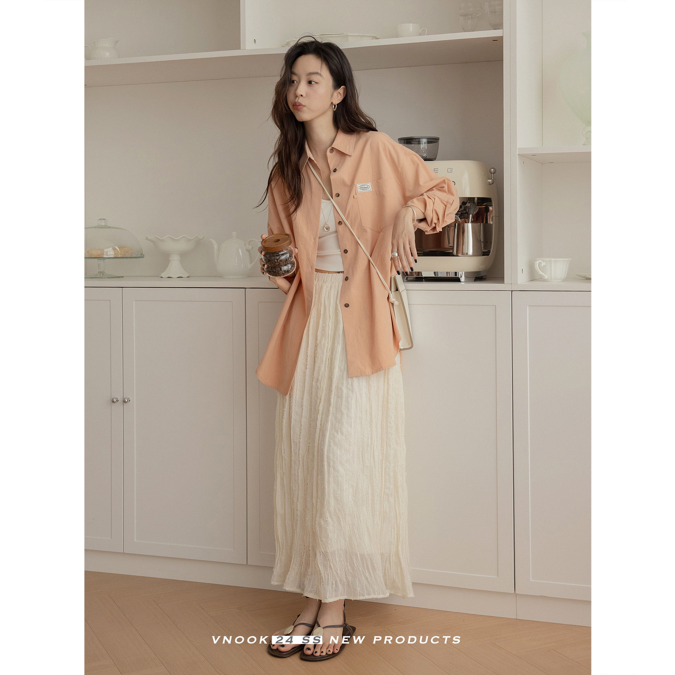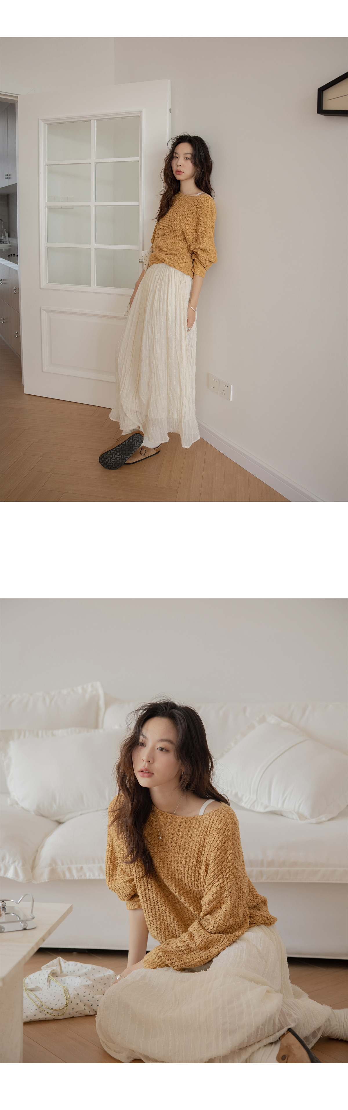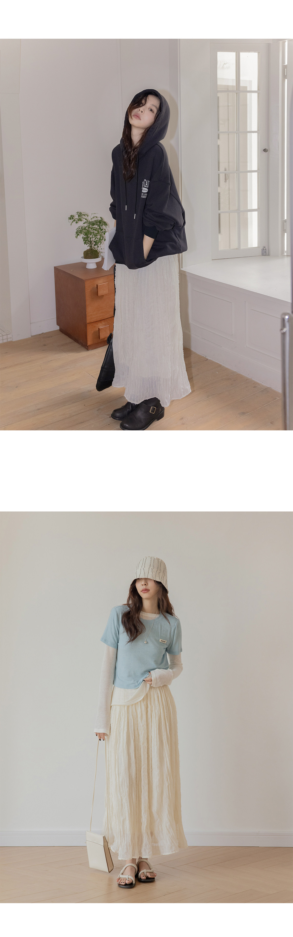 Белая длинная однотонная юбка, эластичная талия