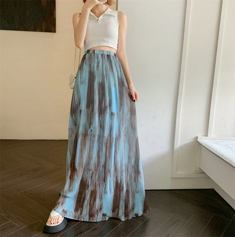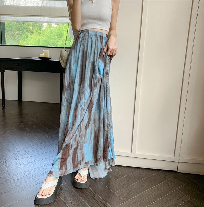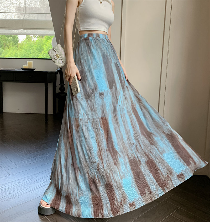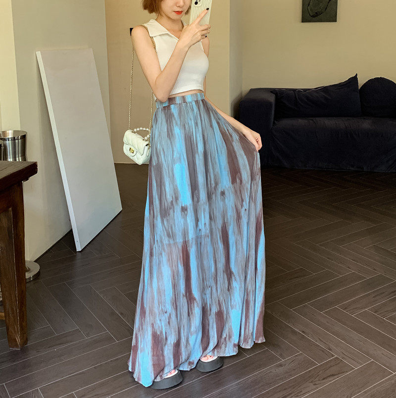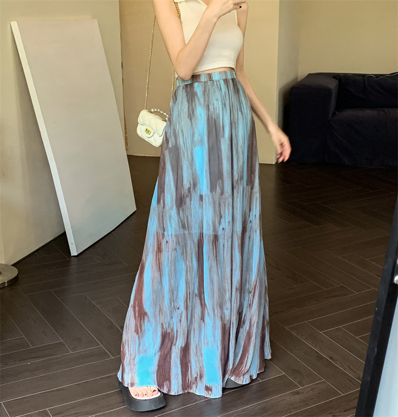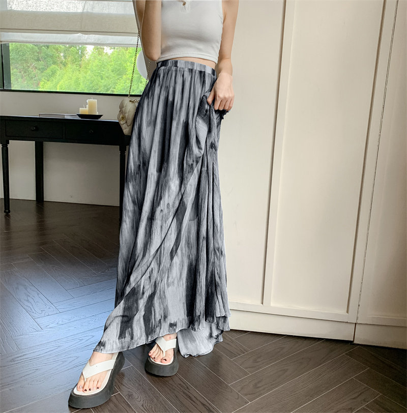 Плиссированная юбка с галстуком темпераментом для женщин летом 2025 г. Новая высокая драпированная плиссированная длинная юбка высокая талия