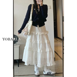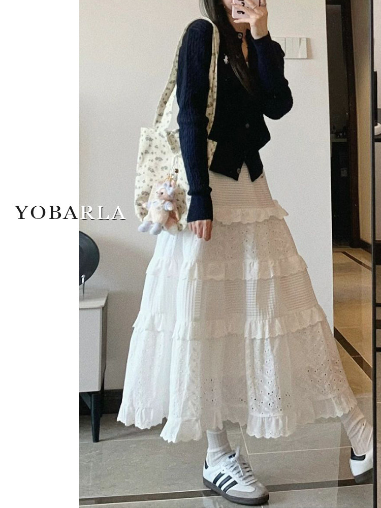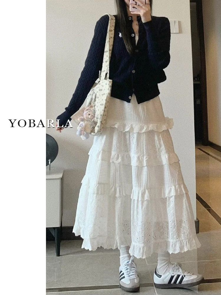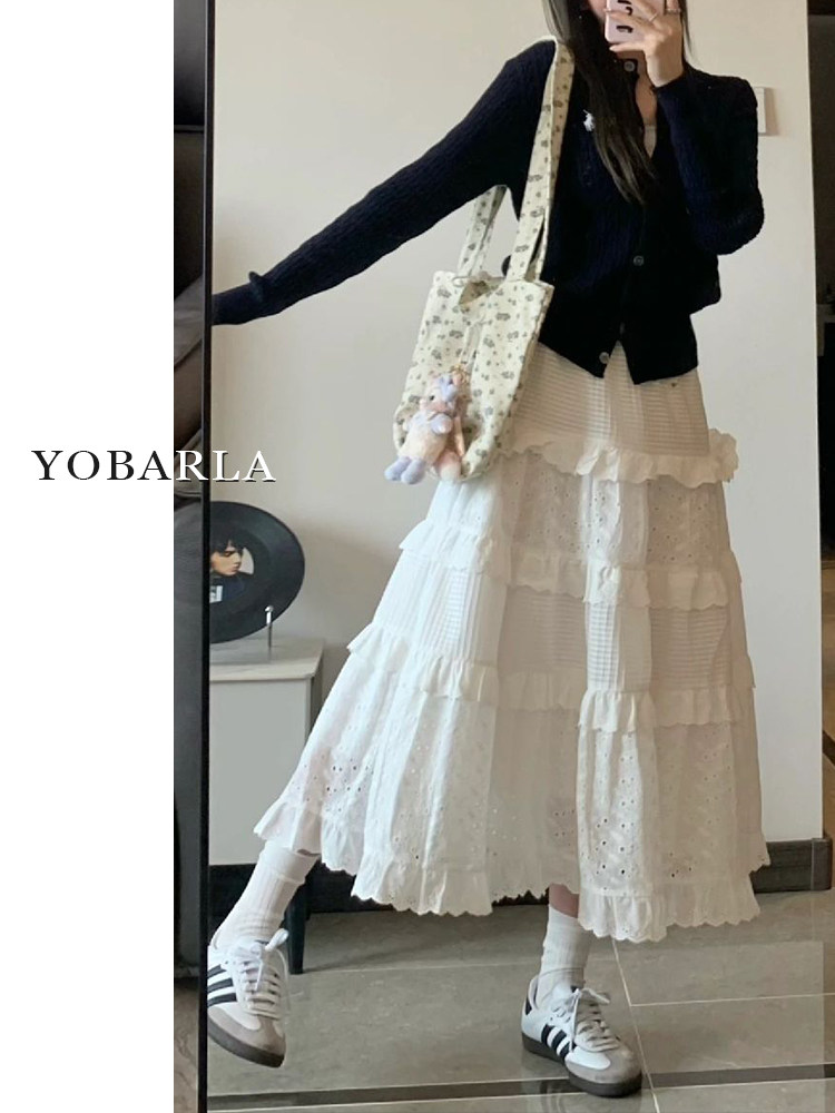 Белая кружевная летняя длинная юбка, большой размер, средней длины, А-силуэт