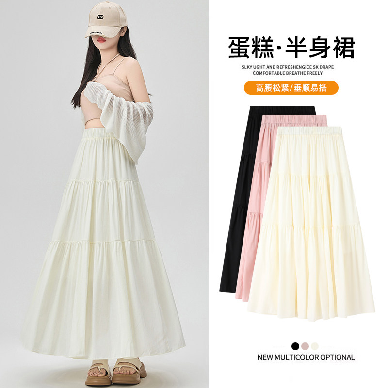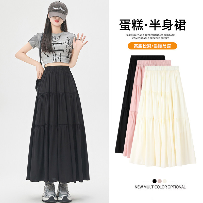 Розовая летняя длинная юбка, А-силуэт, высокая талия