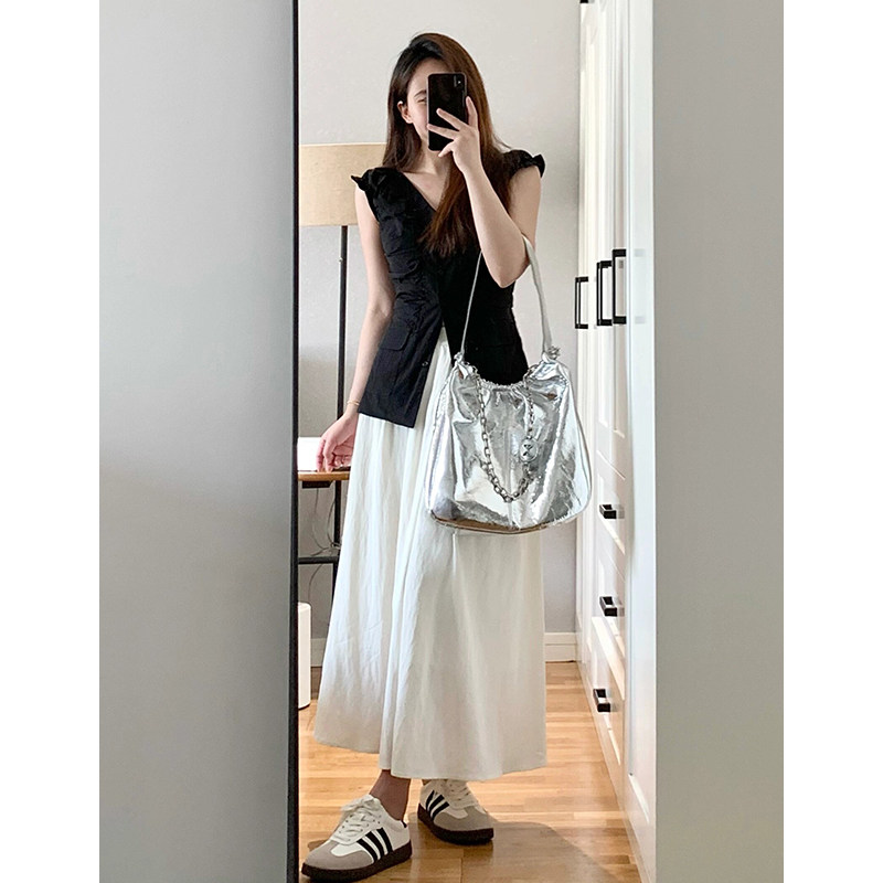 Белая летняя юбка, цветная юбка, подходит для подростков, высокая талия, А-силуэт, для формы тела «груша», длина миди