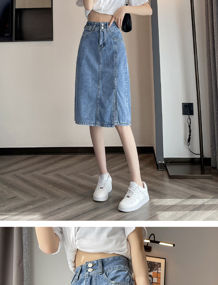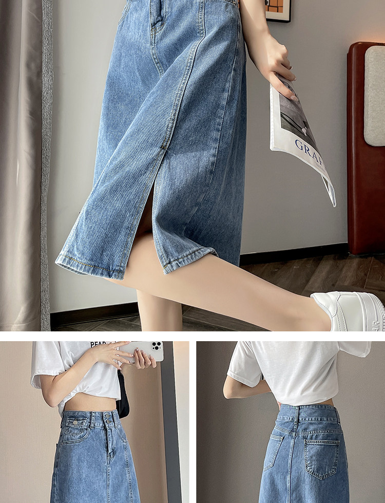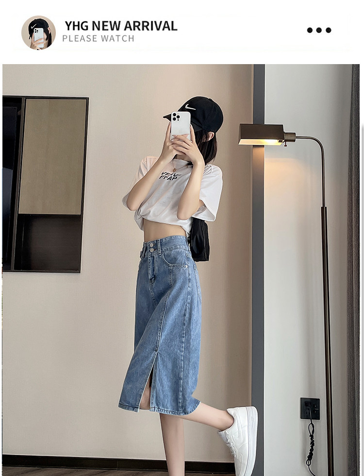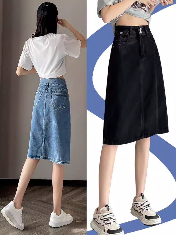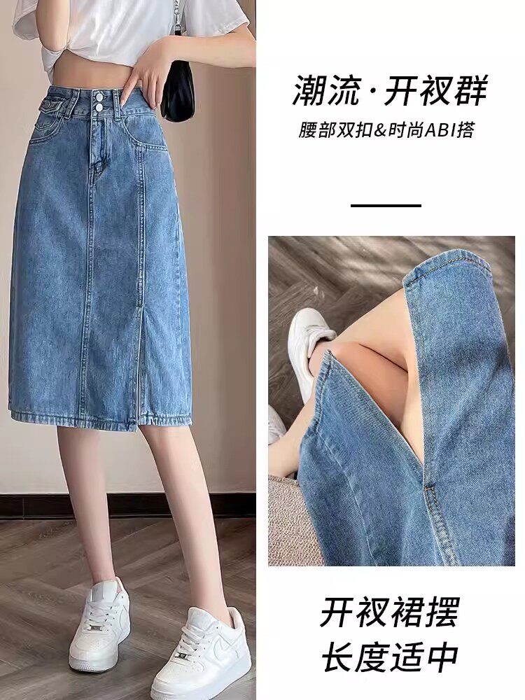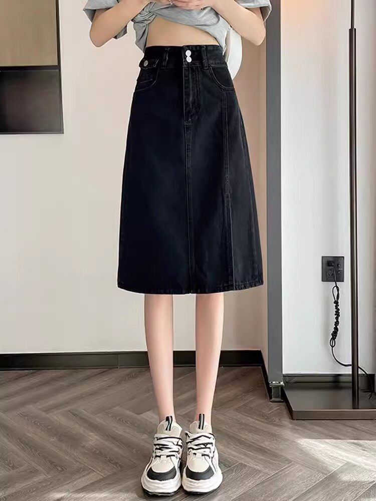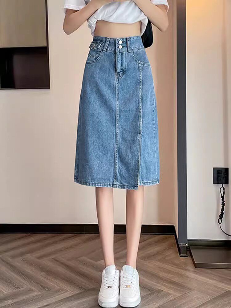 Летняя ретро длинная джинсовая юбка, высокая талия, подходит для подростков, 2025 года, А-силуэт, средней длины, с акцентом на бедрах