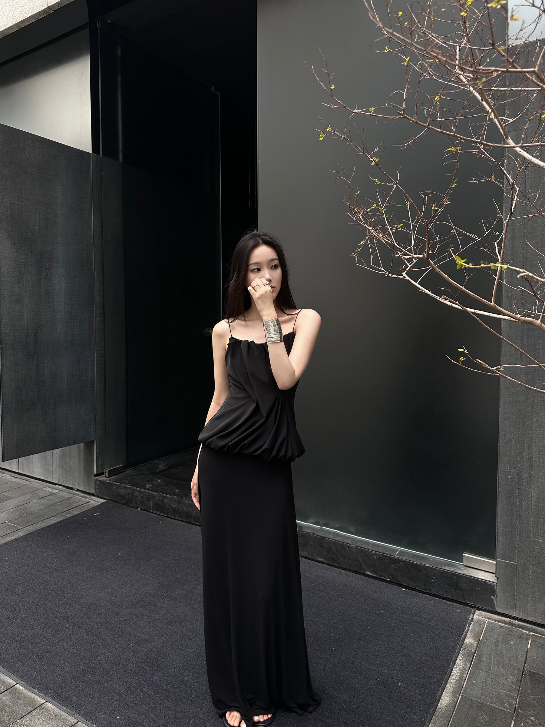 5werkwen Черная летняя приталенная длинная юбка, изысканный стиль, эластичная талия