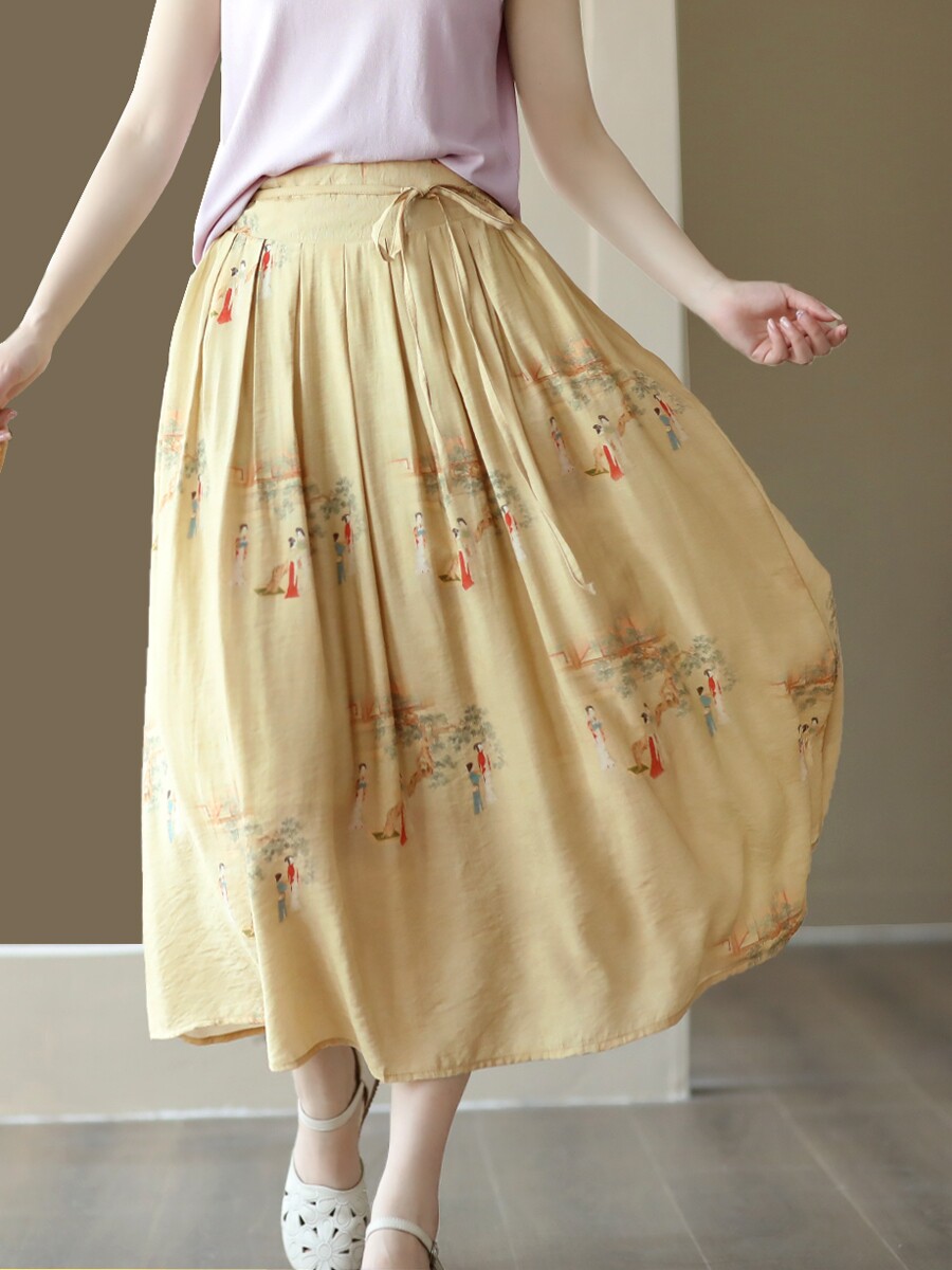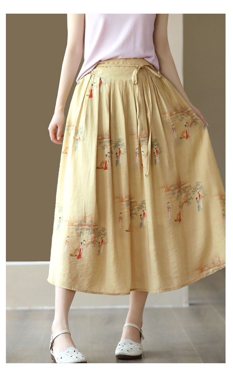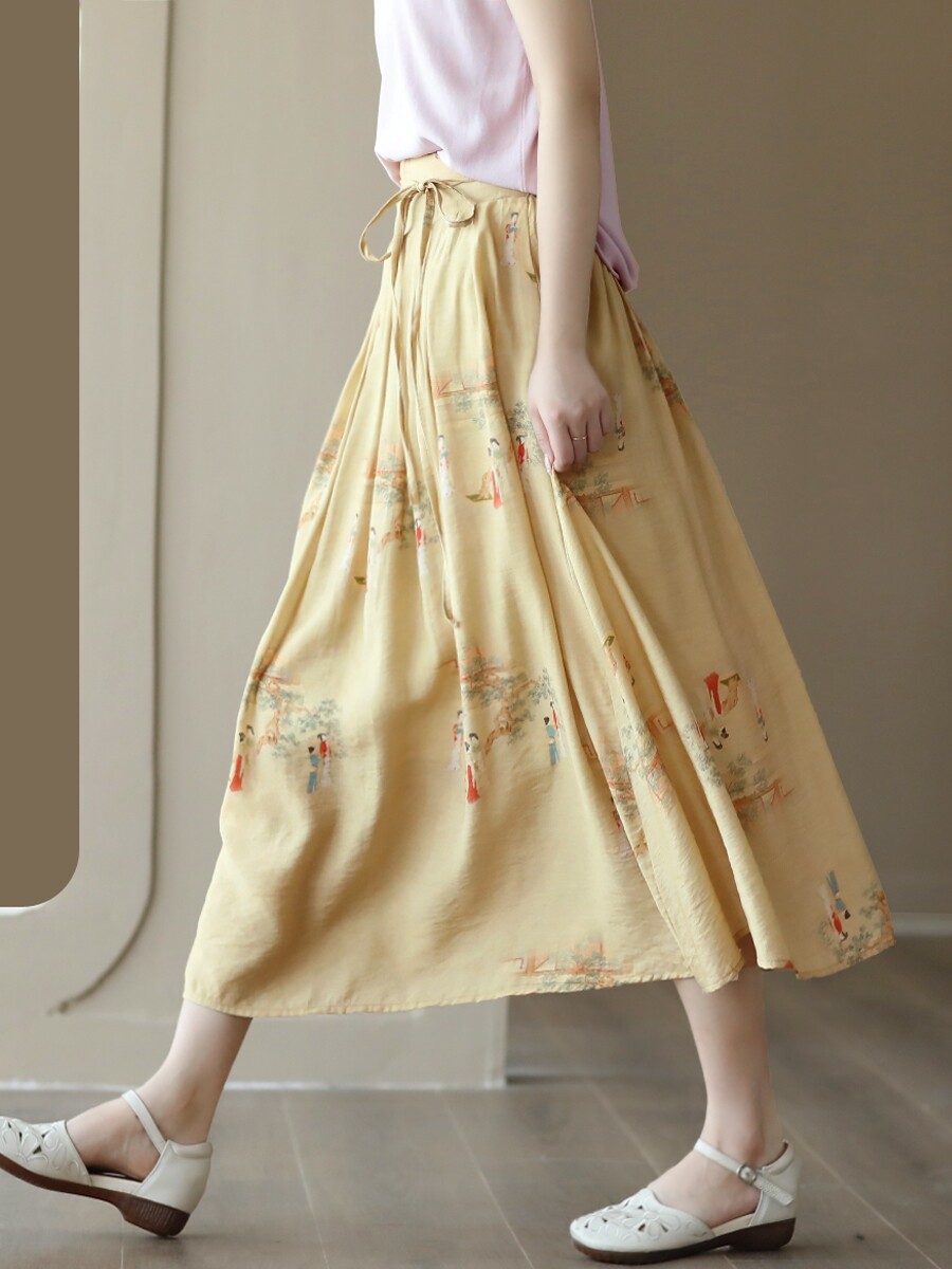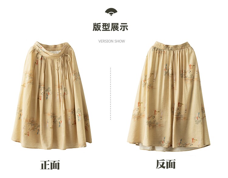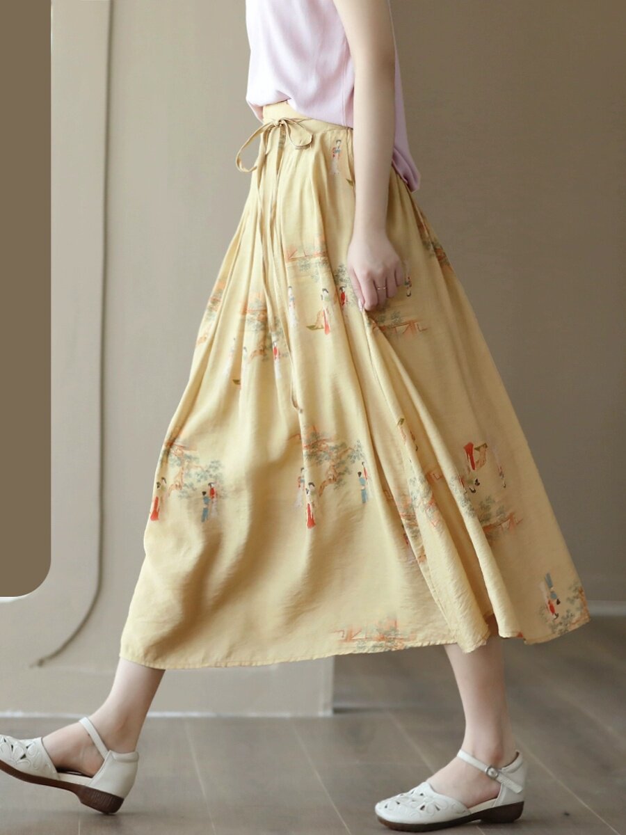 Летняя длинная юбка, китайский стиль, высокая талия