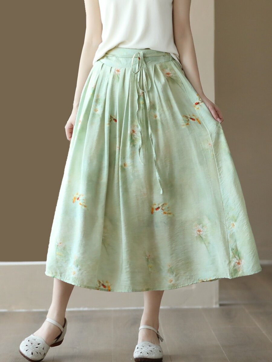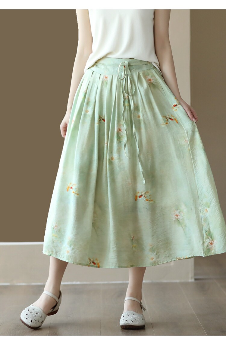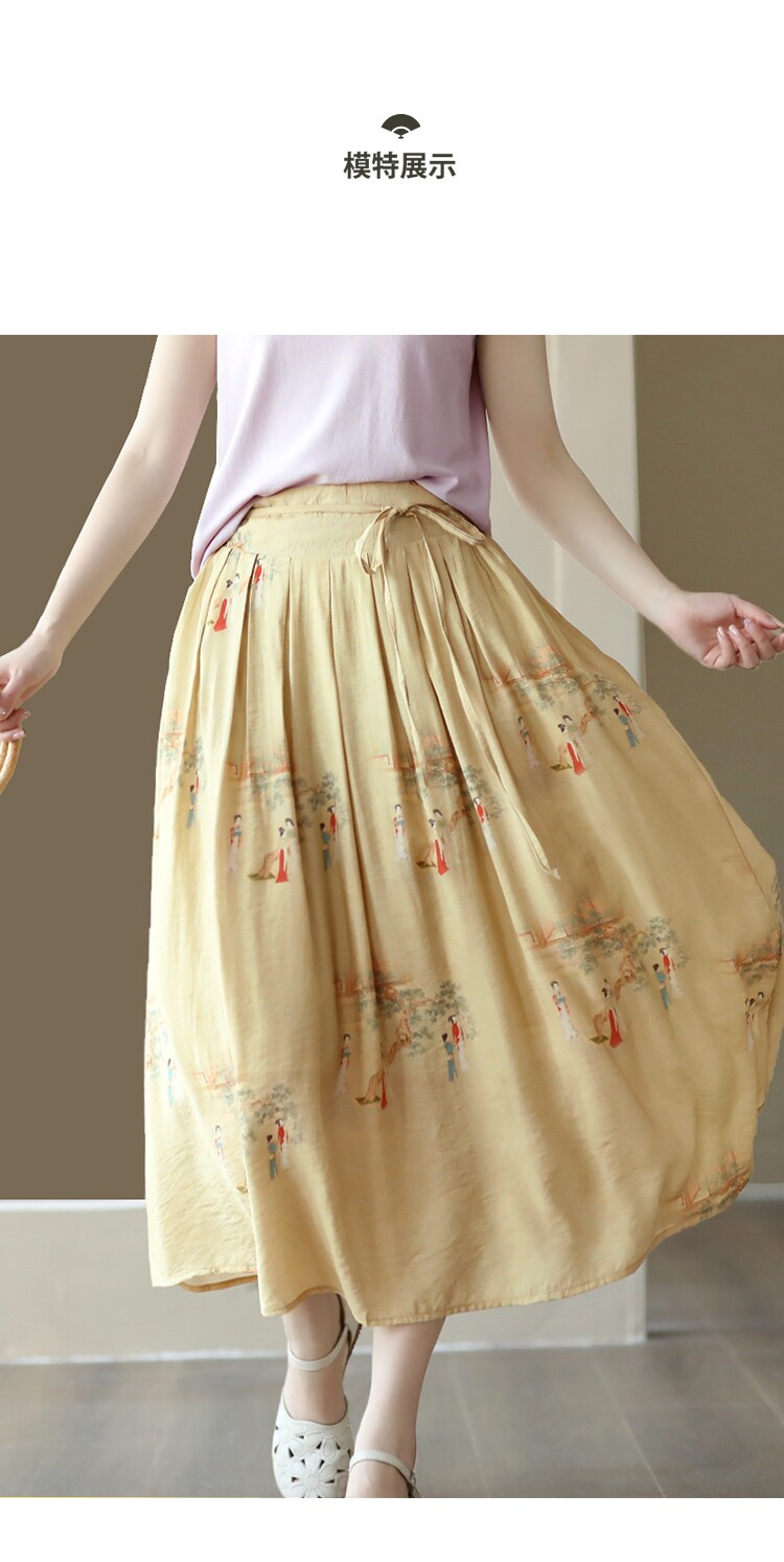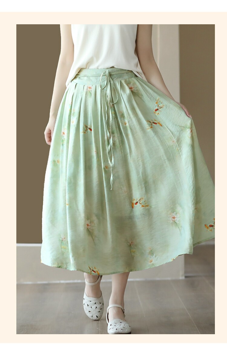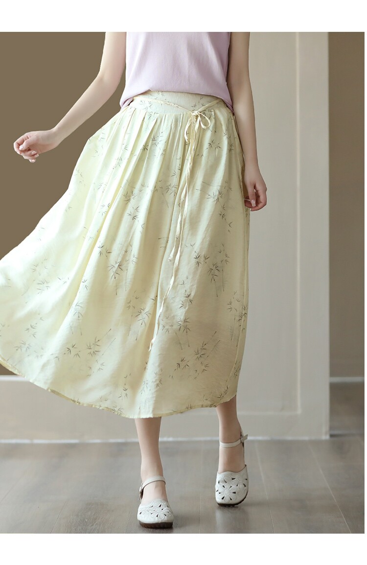Летняя длинная юбка, китайский стиль, высокая талия
