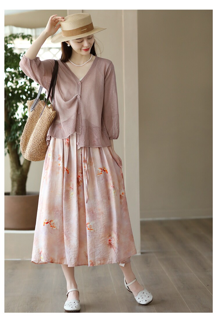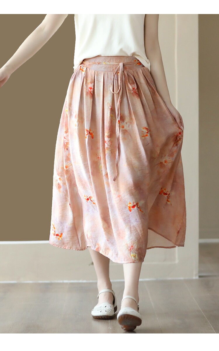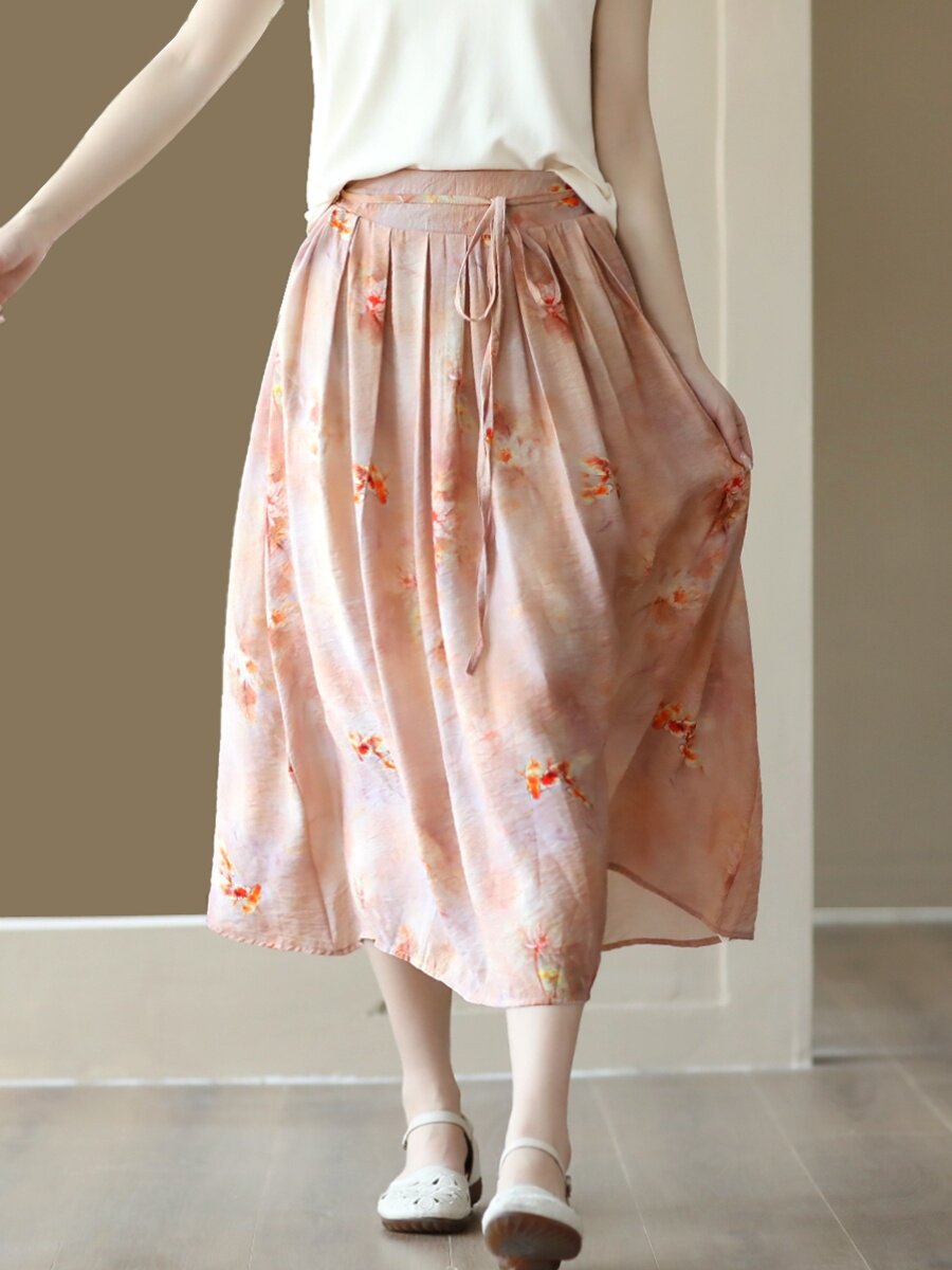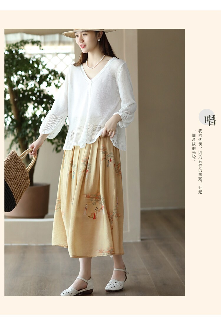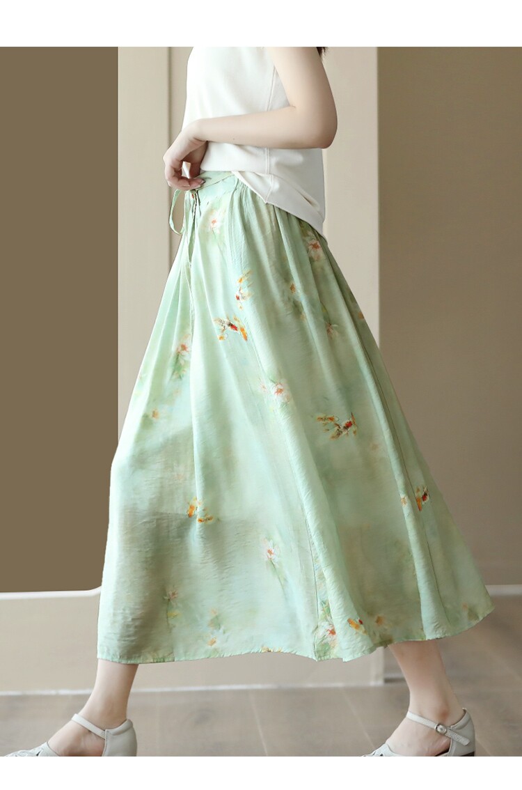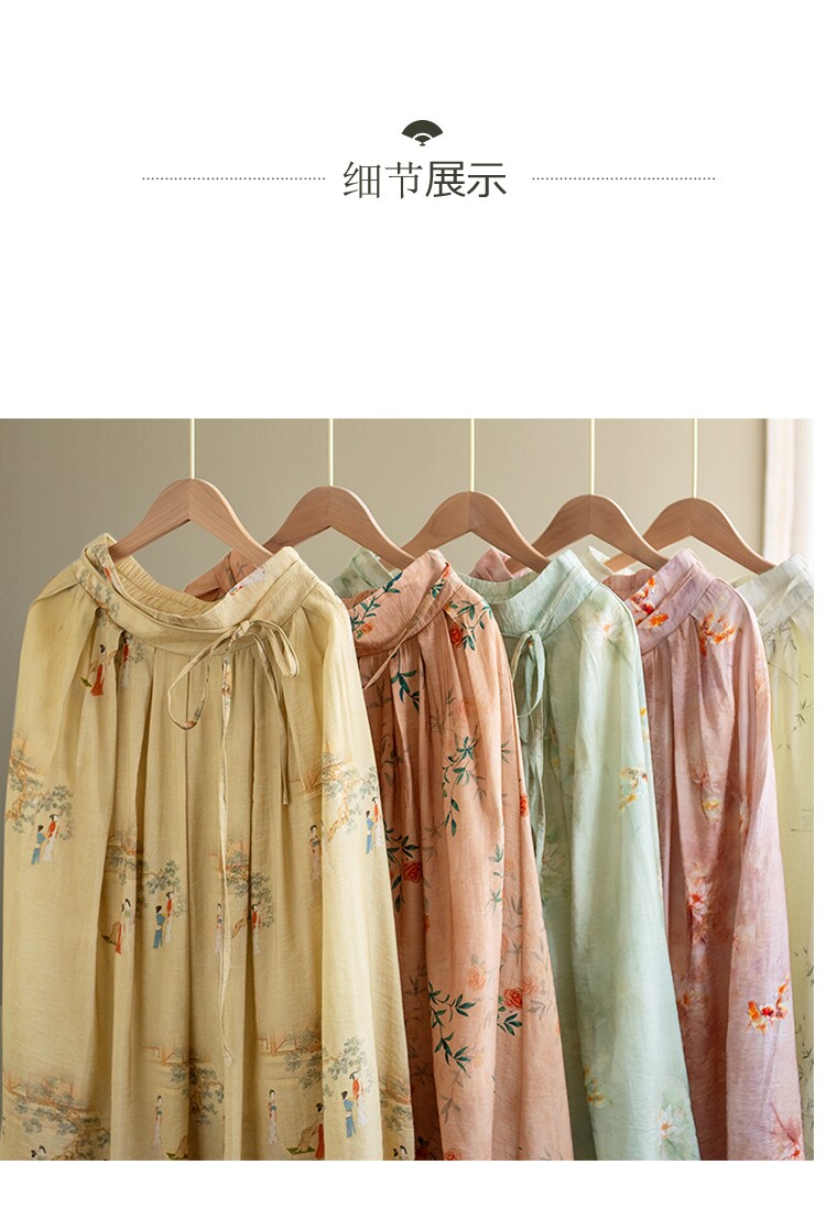 Летняя длинная юбка, китайский стиль, высокая талия