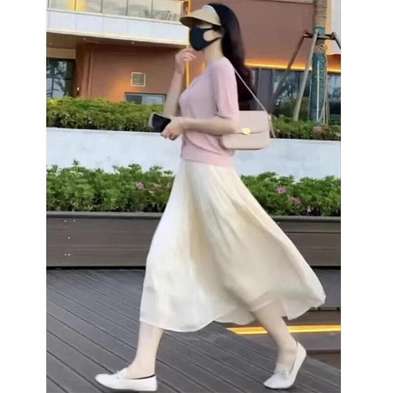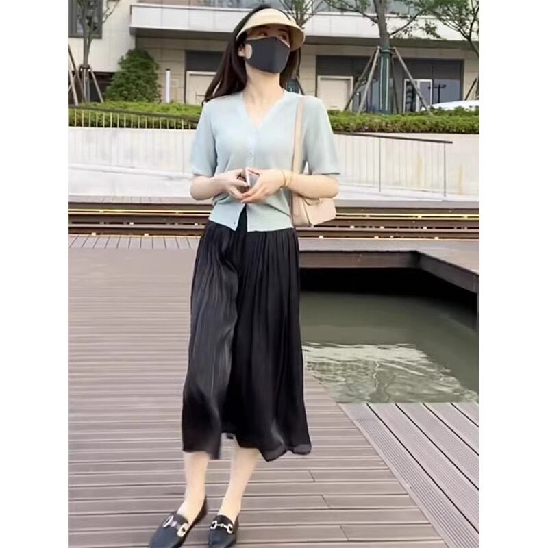 Летняя длинная юбка в складку, высокая талия, длина миди, А-силуэт