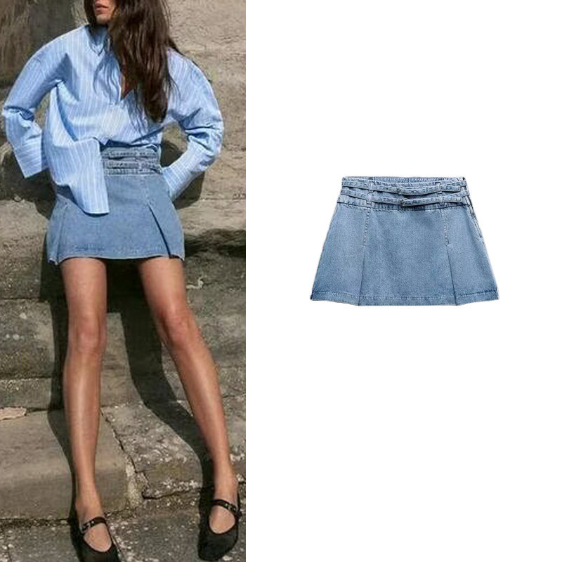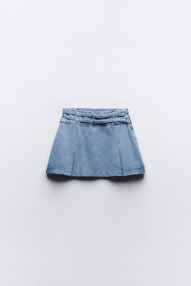 ZA весенне-летняя новая французская повседневная мини-юбка в стиле ретро со складками и заниженной талией 6147067