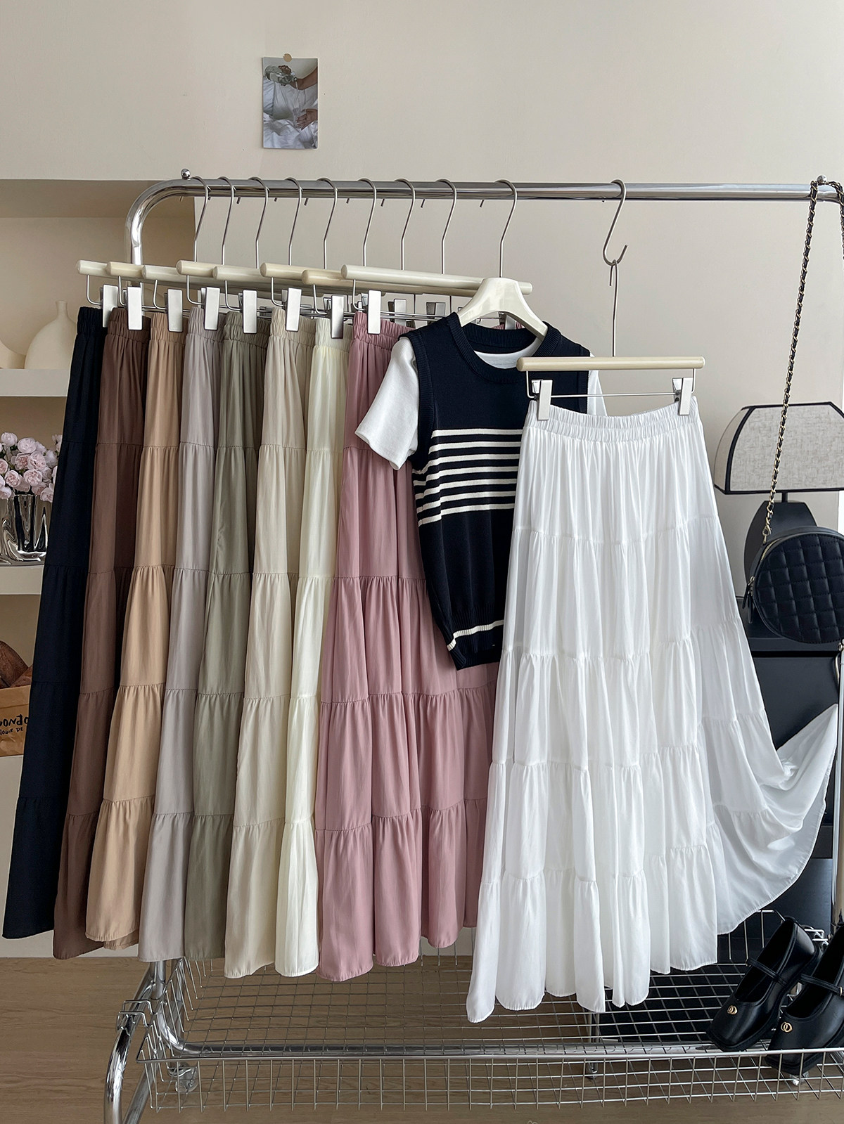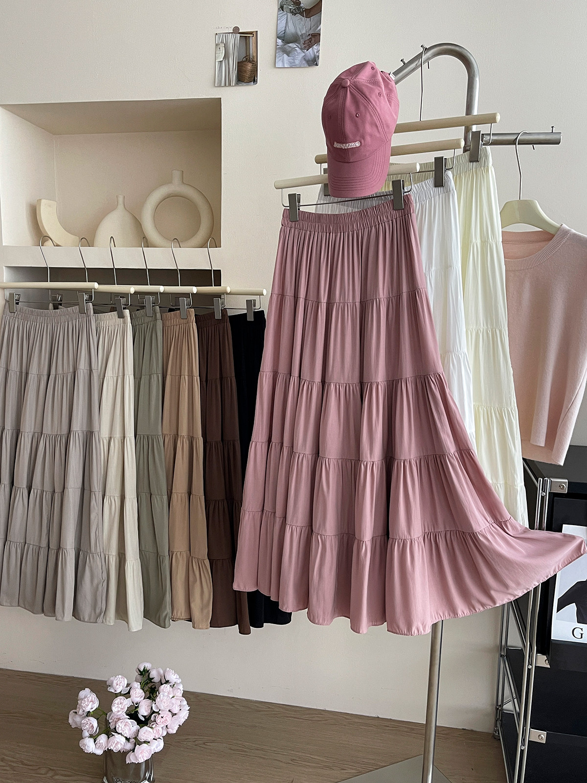 Розовая летняя длинная юбка, французский стиль