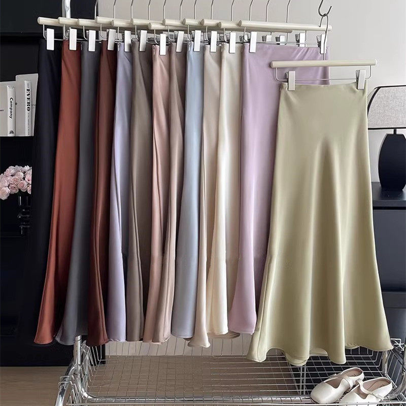 Длинная летняя длинная юбка, изысканный стиль, французский стиль, крой «рыбий хвост», с акцентом на бедрах, А-силуэт