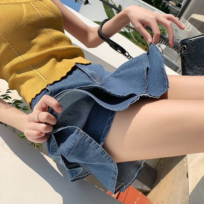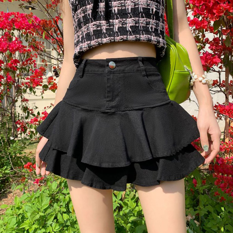 Черная джинсовая летняя юбка, приталенное защитное белье, мини-юбка, высокая талия, А-силуэт