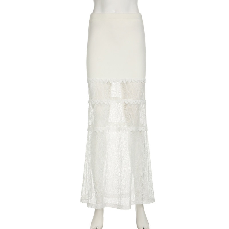 Милая кружевная юбка в складку, длинная юбка, кружевное платье, с акцентом на бедрах, крой «рыбий хвост»