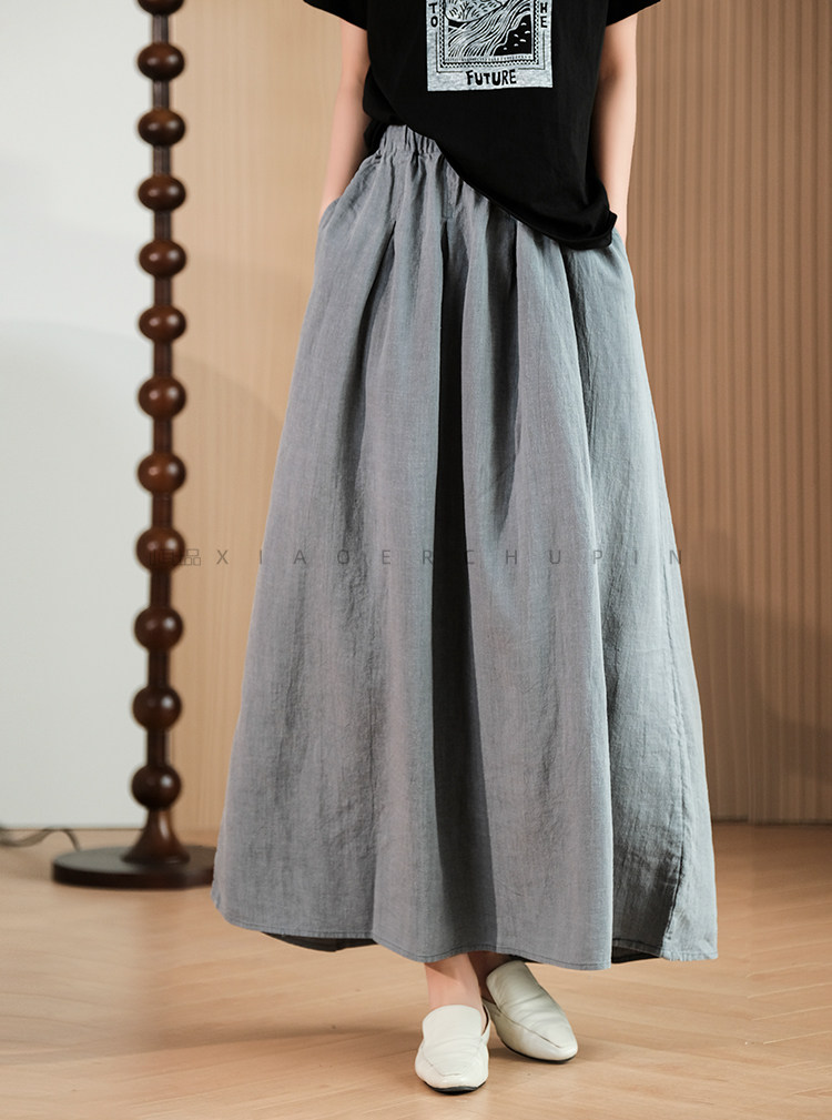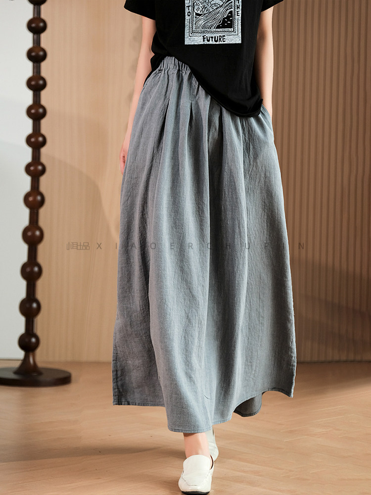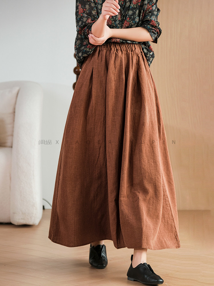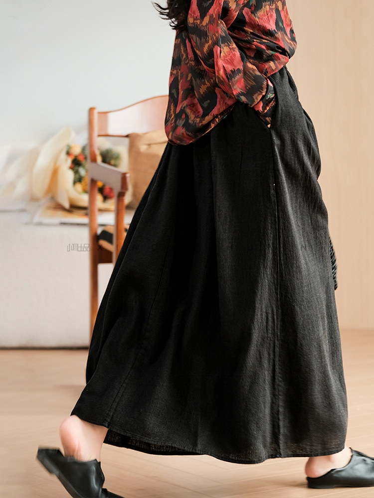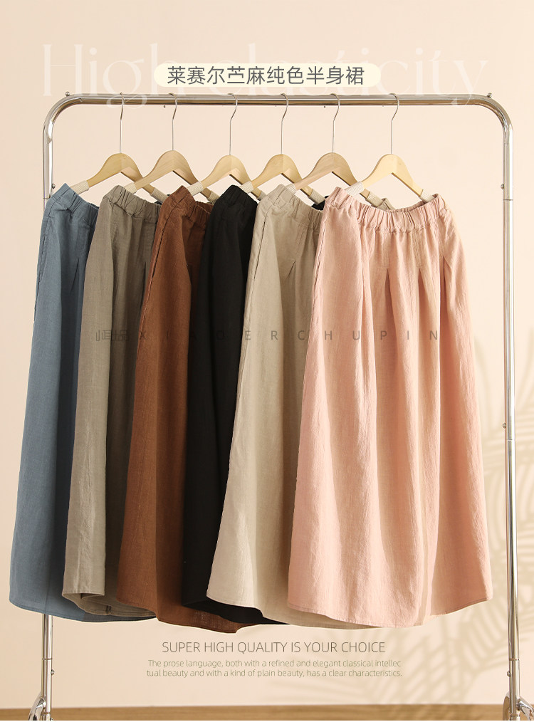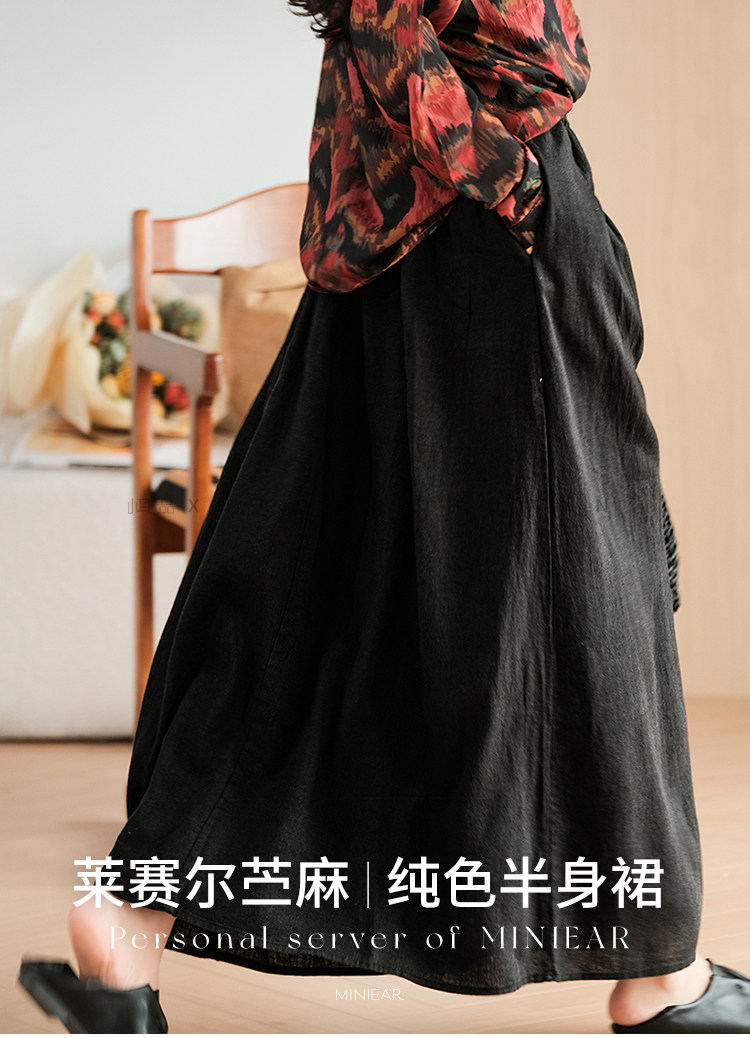 小耳出品 [Jiangnan Yayun] Юбка из лиоцелла из рами, однотонная литературная ретро-юбка трапециевидной формы для женщин