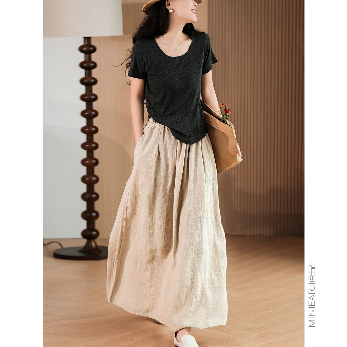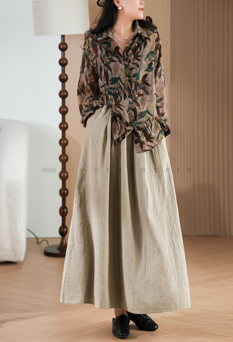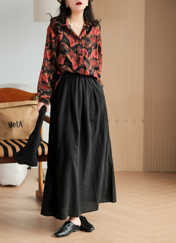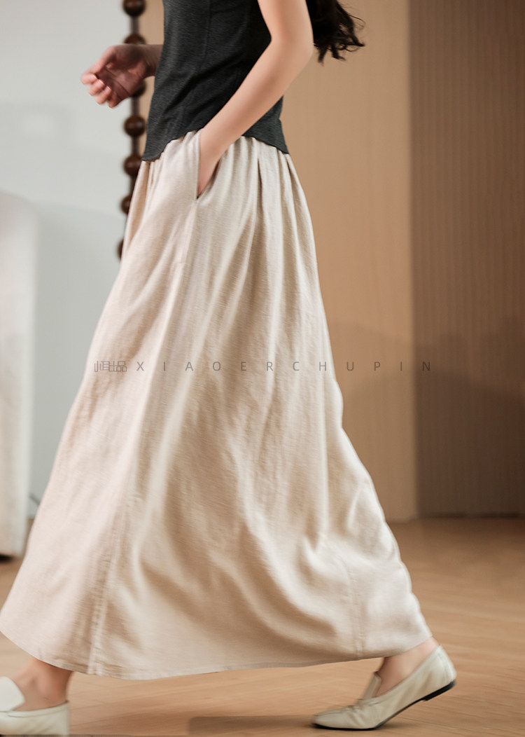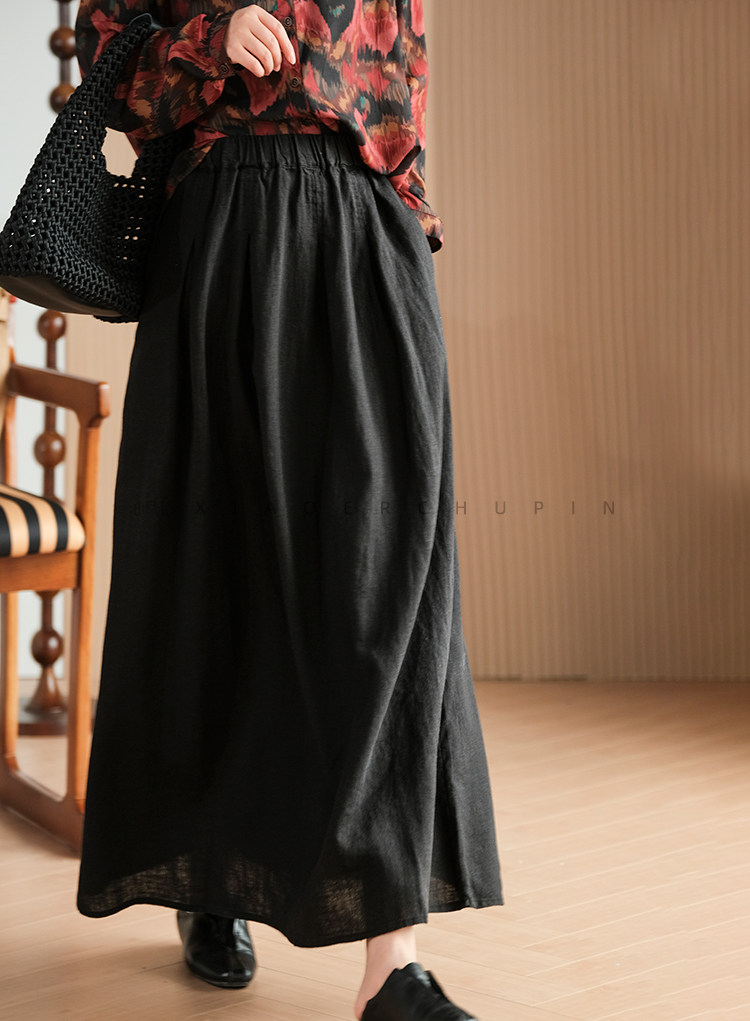 小耳出品 [Jiangnan Yayun] Юбка из лиоцелла из рами, однотонная литературная ретро-юбка трапециевидной формы для женщин
