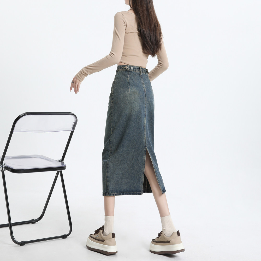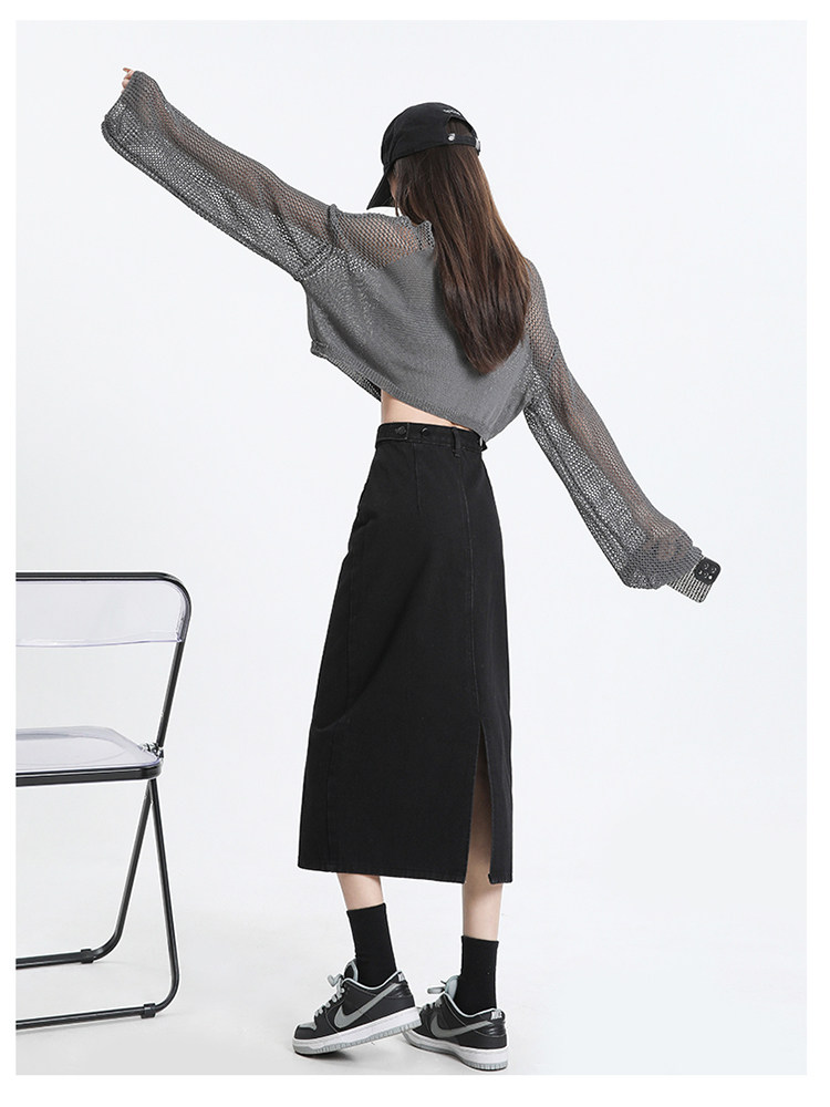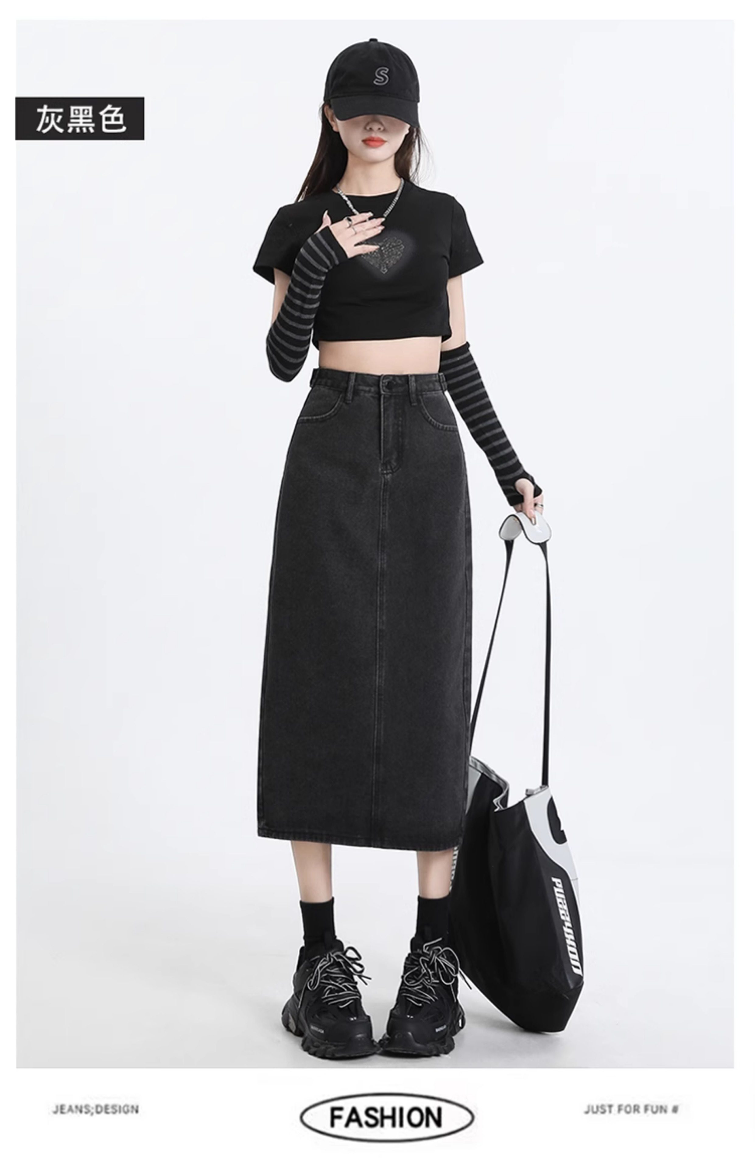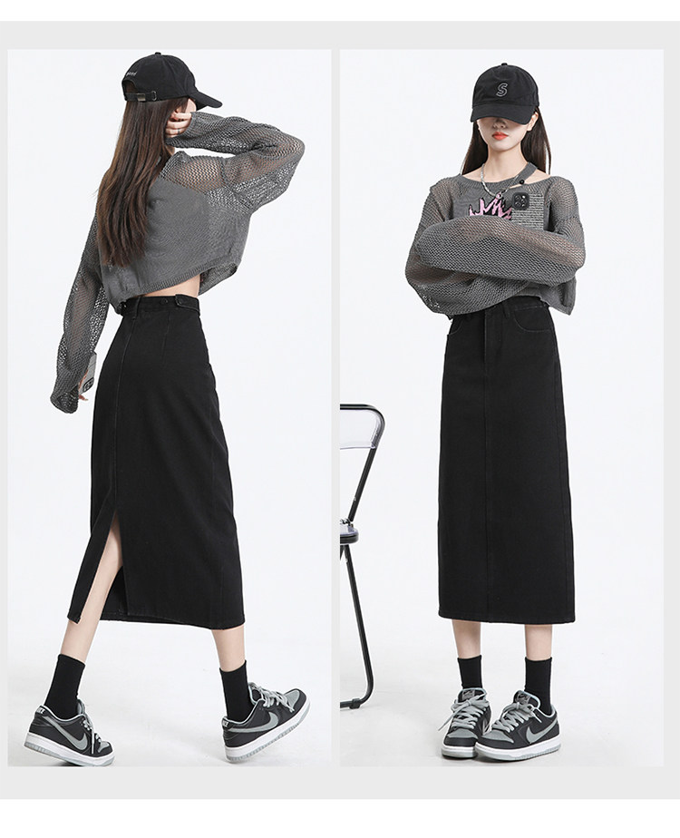 Весенняя черная джинсовая длинная юбка, 2024 года, А-силуэт, длина макси