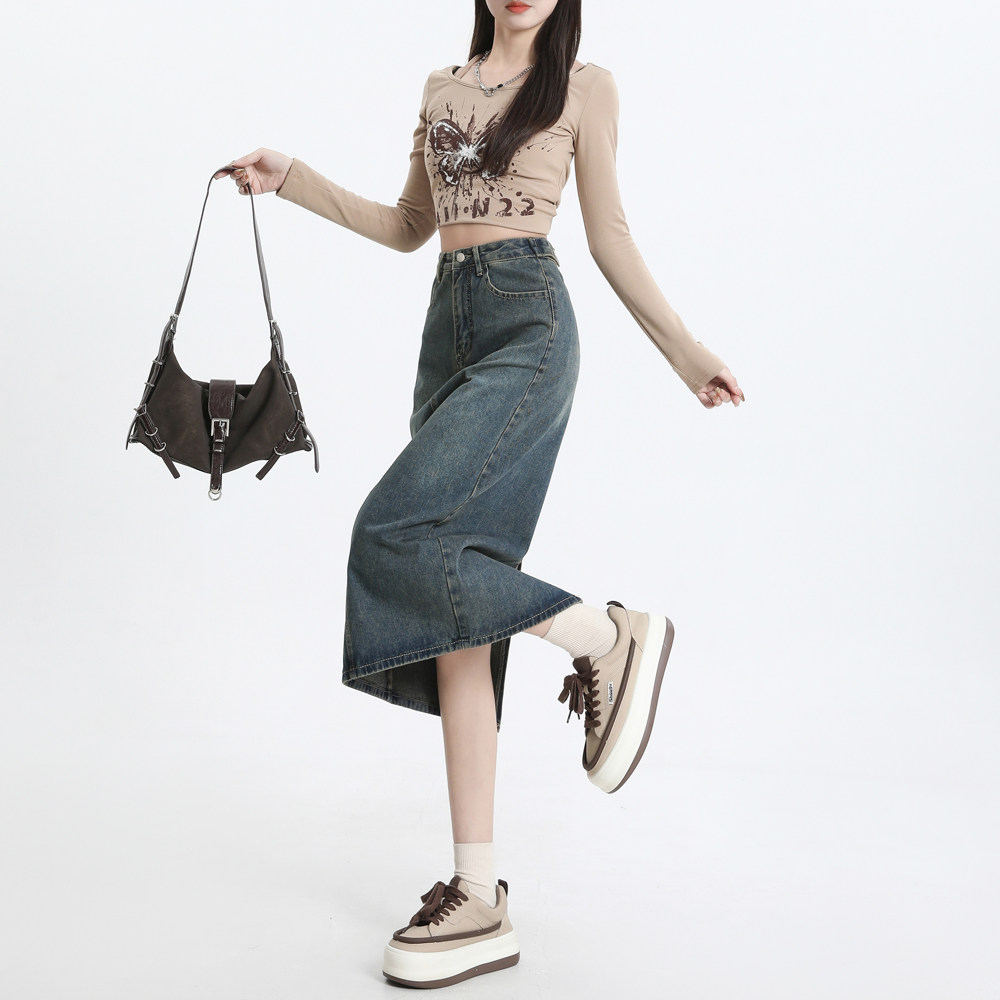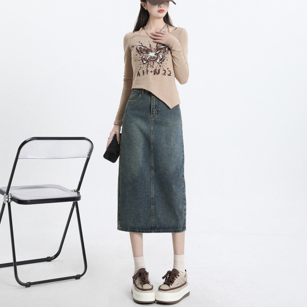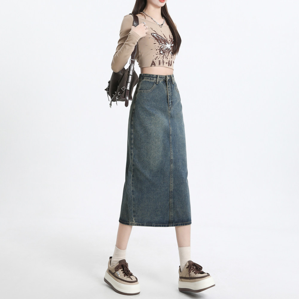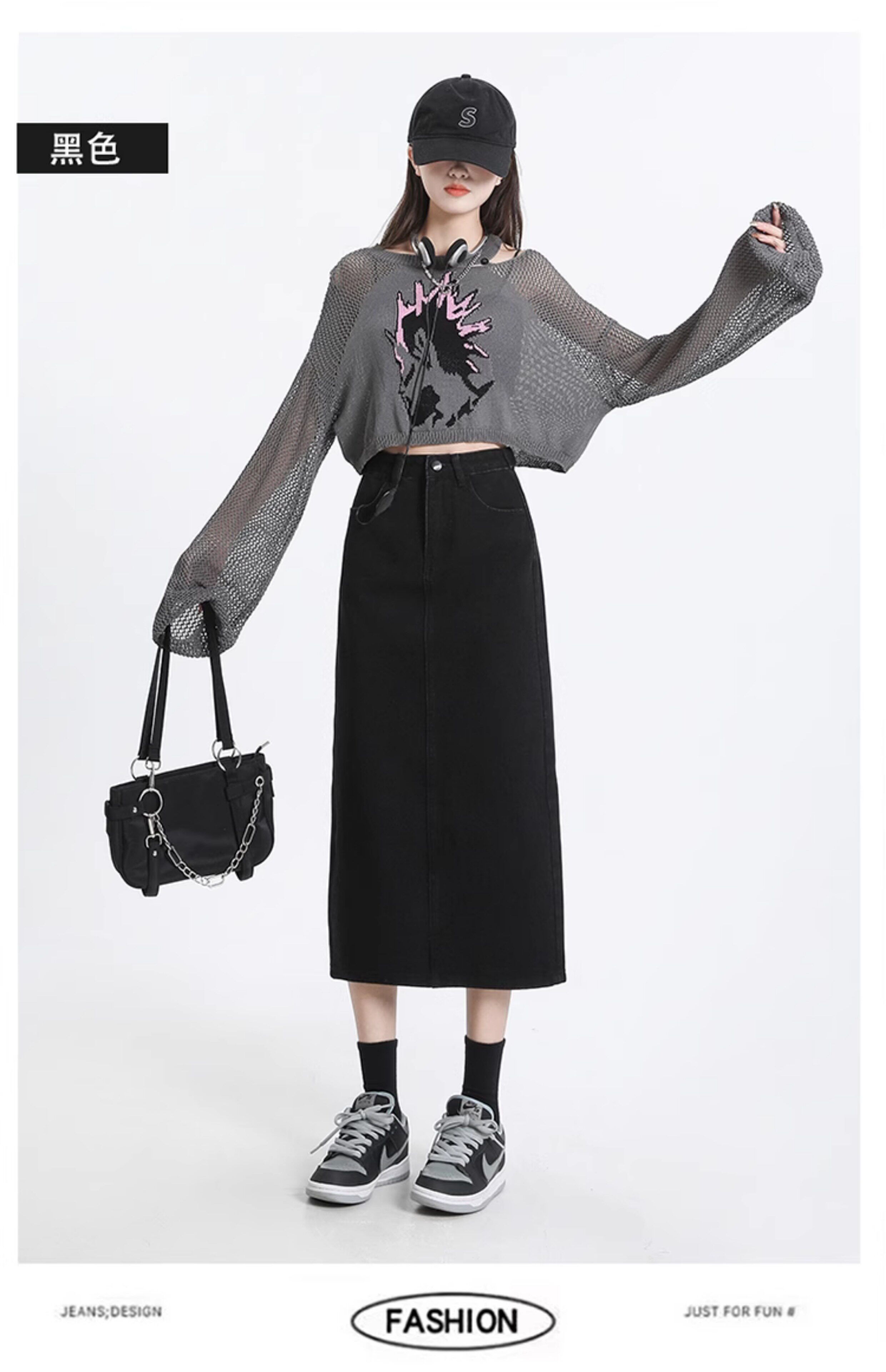 Весенняя черная джинсовая длинная юбка, 2024 года, А-силуэт, длина макси