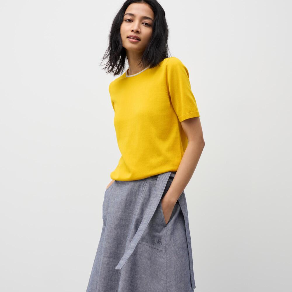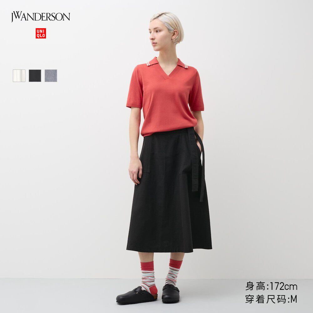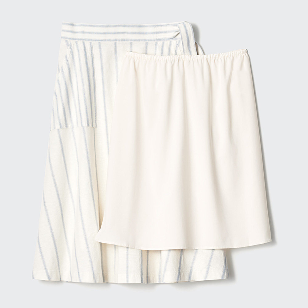Коллаборация UNIQLO/женская льняная расклешенная юбка/юбка с поясом 467077