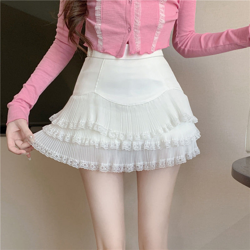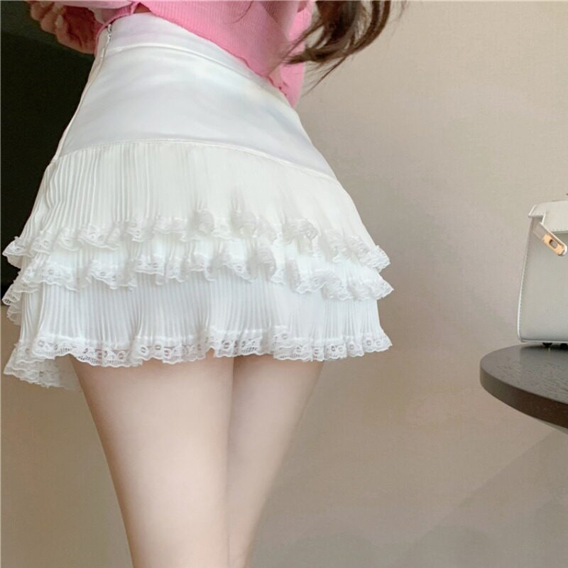 Кружевная белая летняя юбка, А-силуэт, подходит для подростков, плиссированная юбка