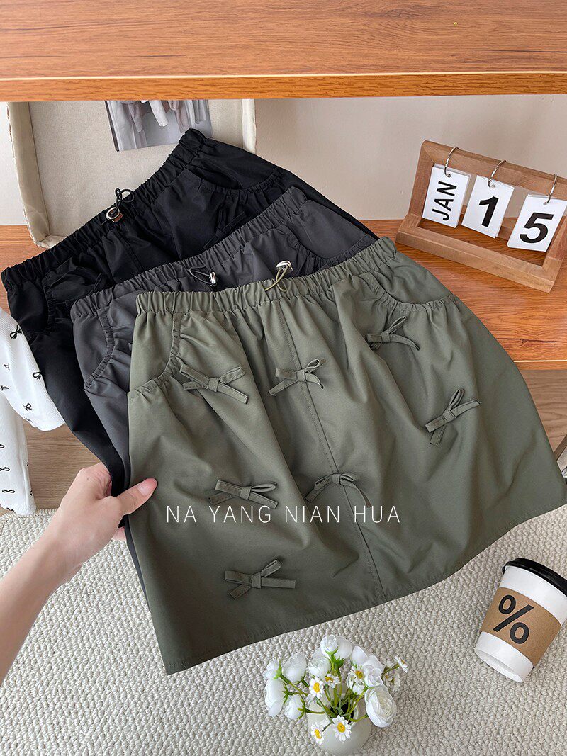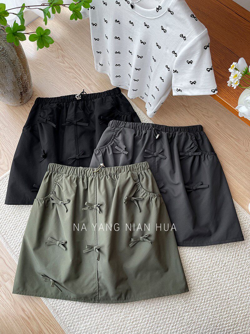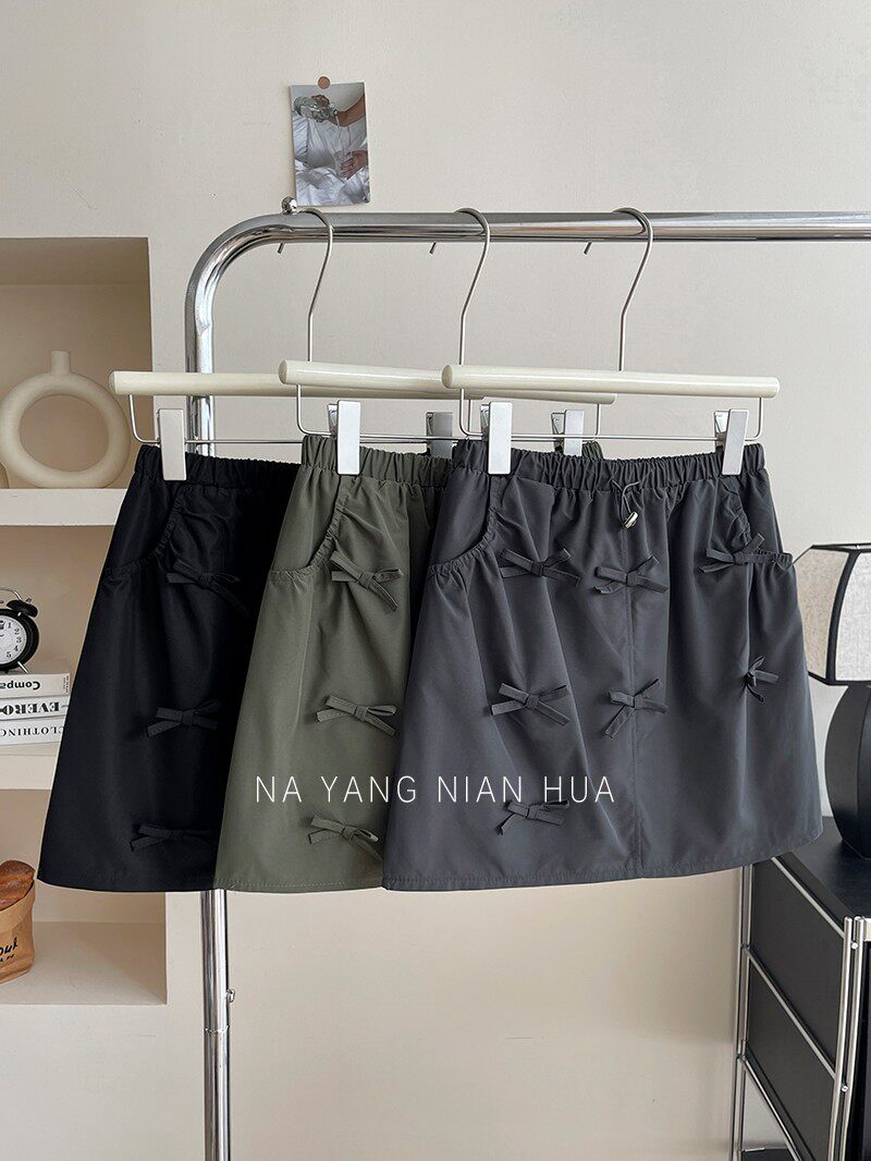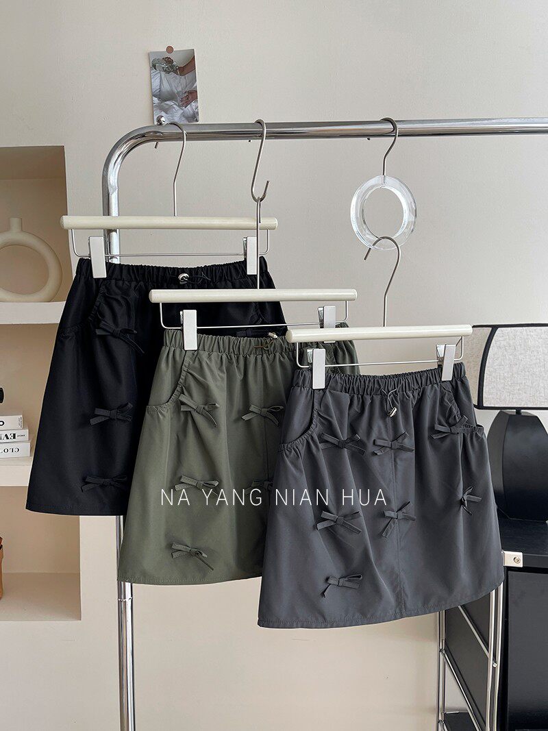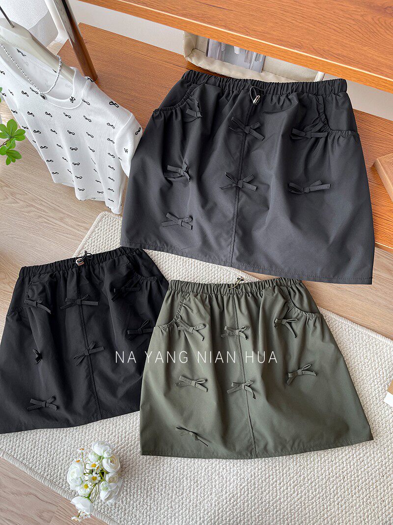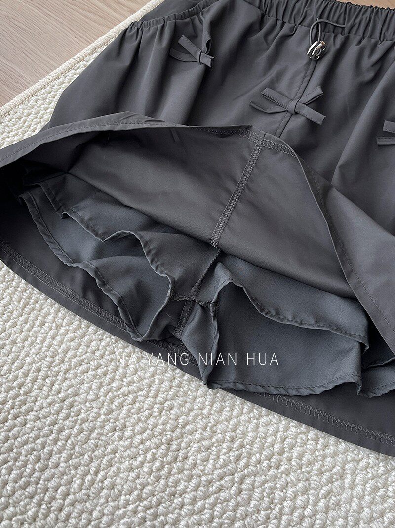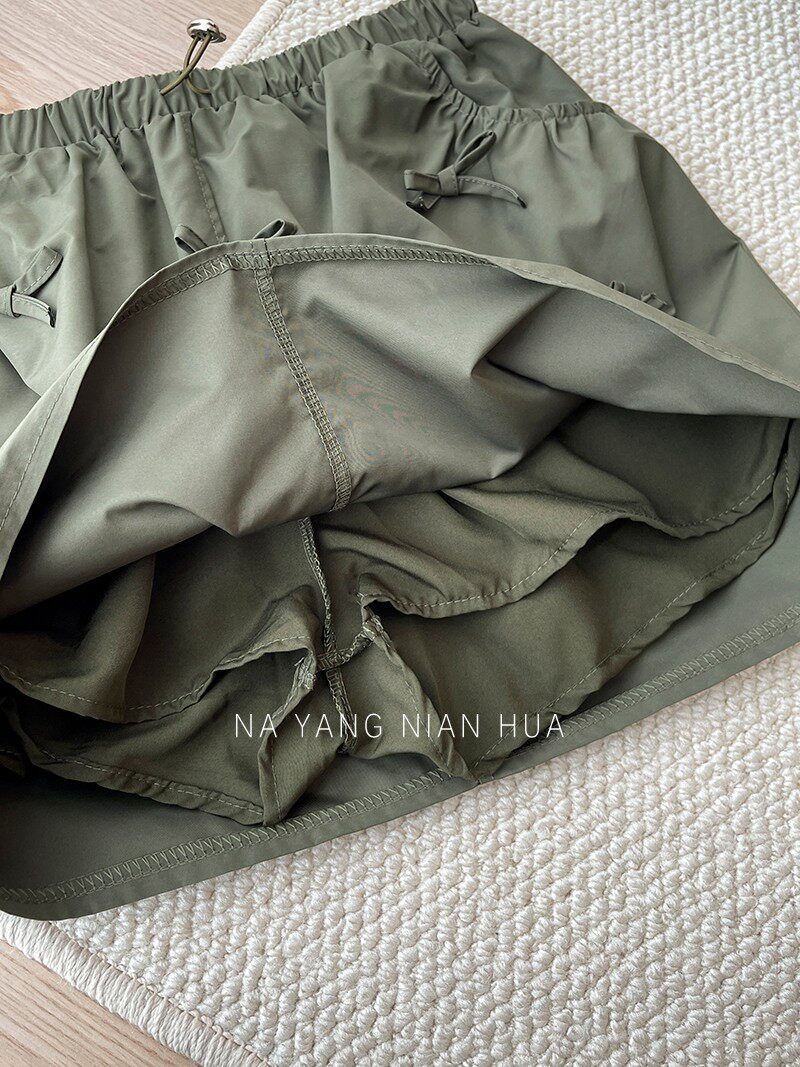 Ретро юбка с бантиком, защитное белье, мини-юбка, в американском стиле, на шнурках, высокая талия, А-силуэт