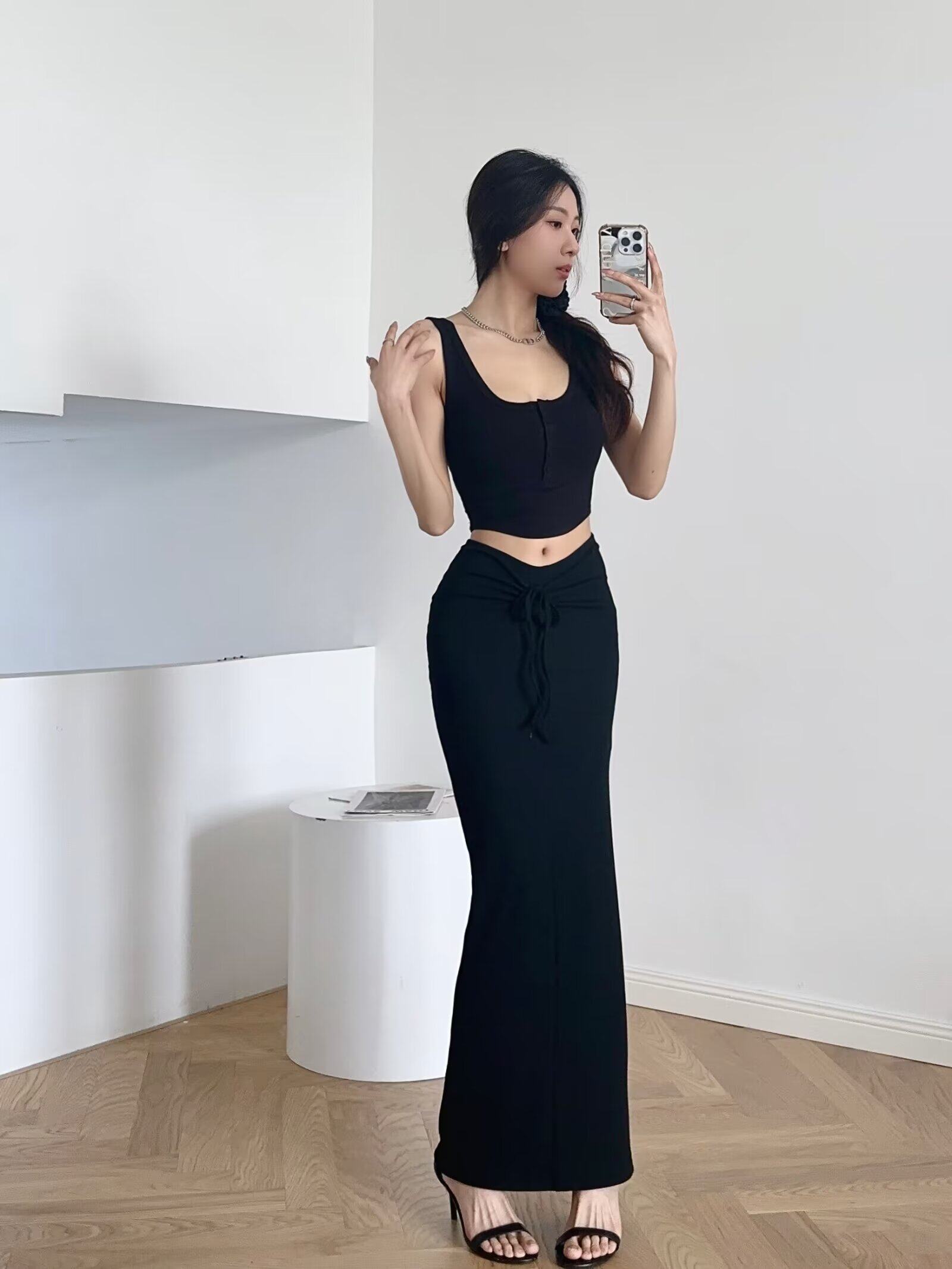 Дизайнерская приталенная длинная юбка, европейский стиль, высокая талия, средней длины