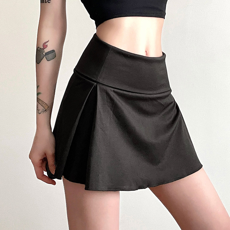 [WEEKEEP 纯欲风深灰色基础百搭气质包臀短裙A摆显瘦半身裙子夏季]