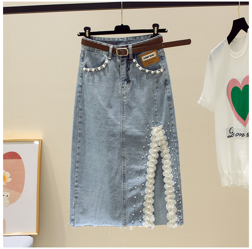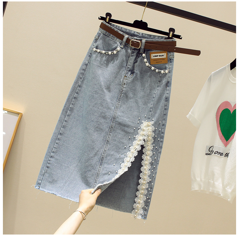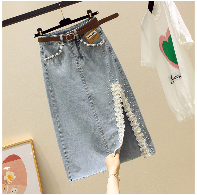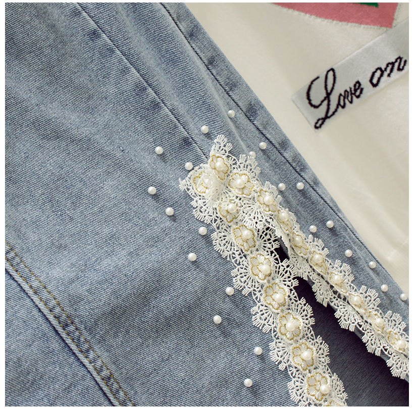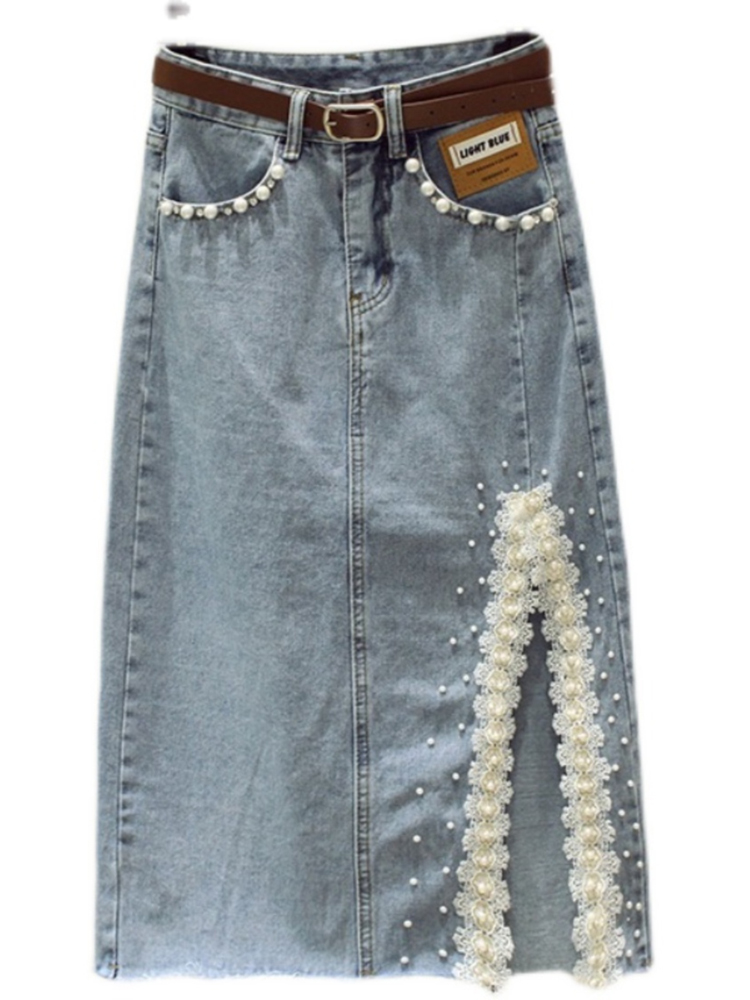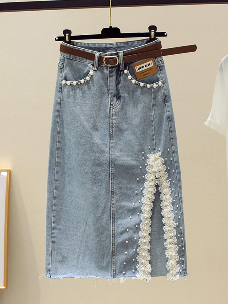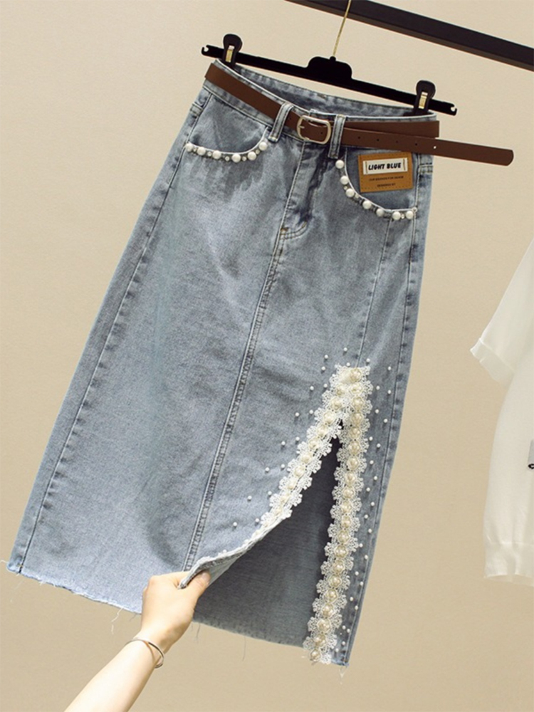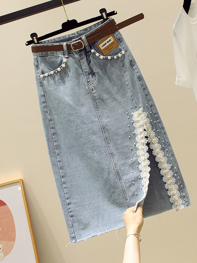 Кружевная джинсовая летняя приталенная юбка, высокая талия, длина миди