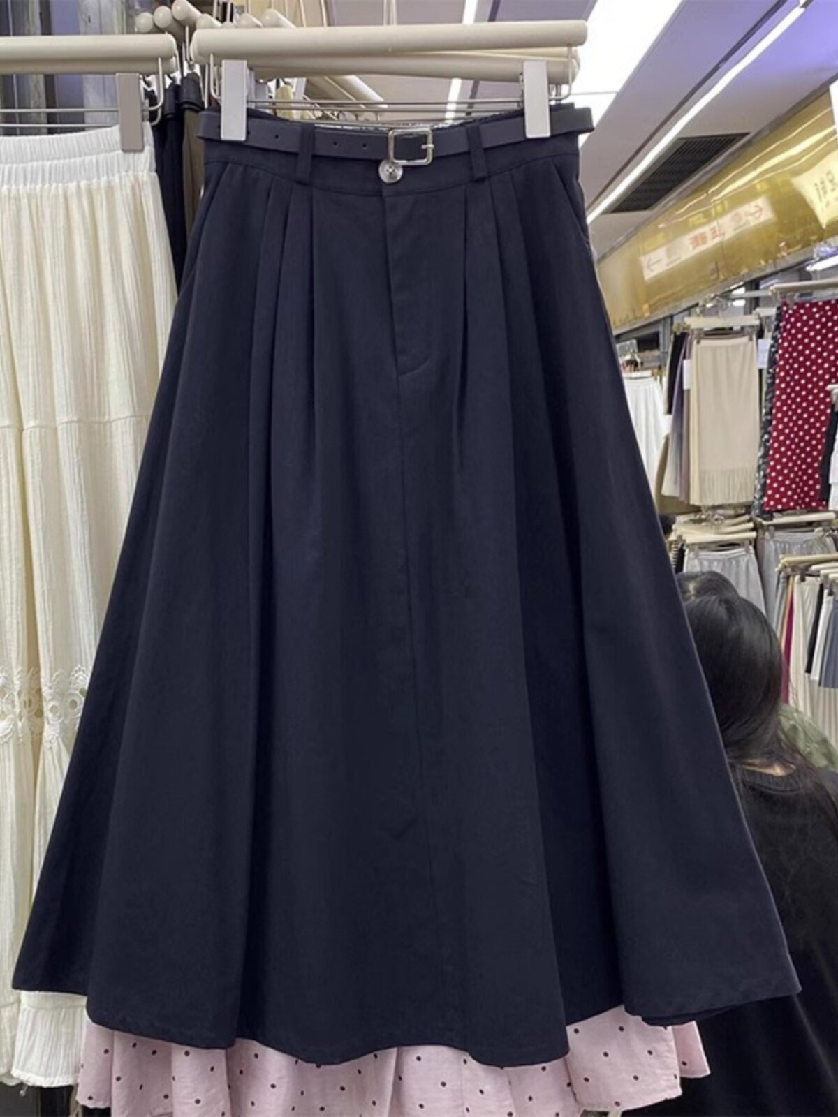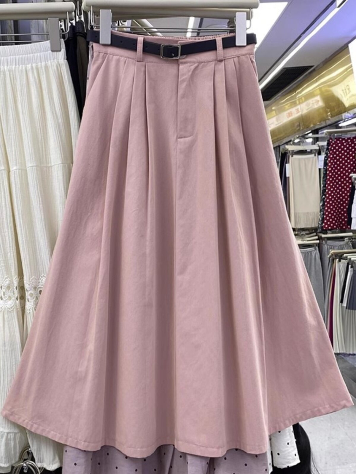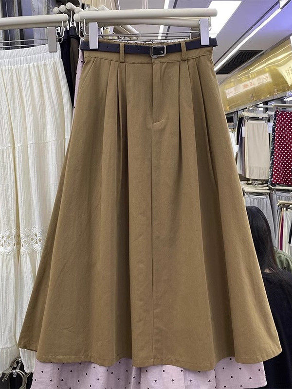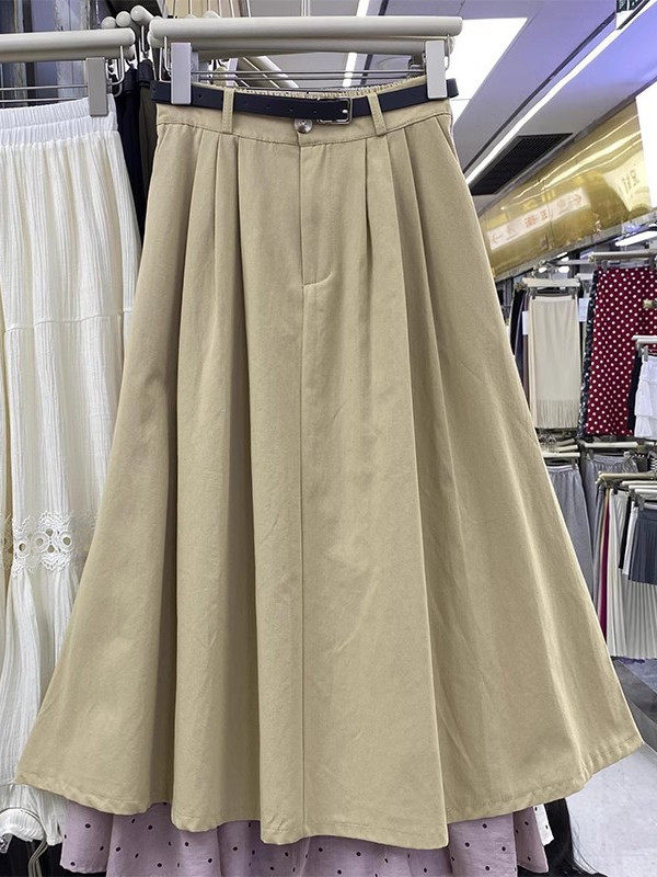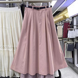 Летняя юбка, длинный ремень, в корейском стиле, простой и элегантный дизайн, высокая талия, длина миди