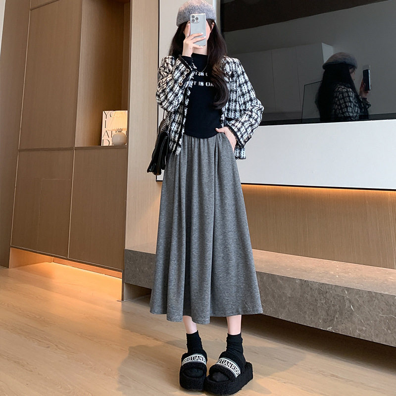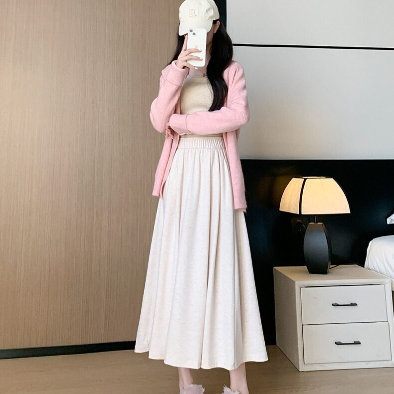 Демисезонный однотонный цветной клейкий рис, приталенная демисезонная длинная юбка, юбка в складку, средней длины