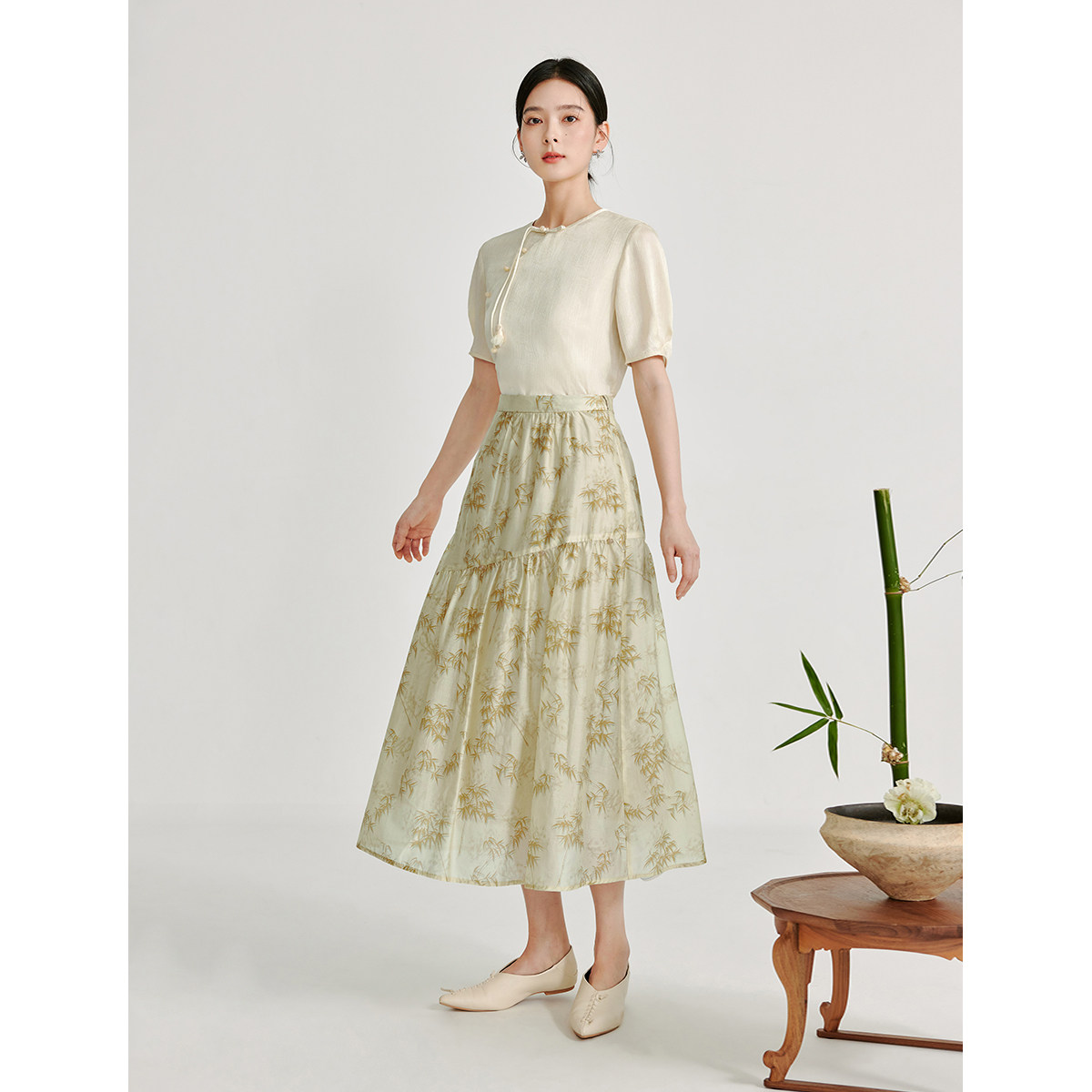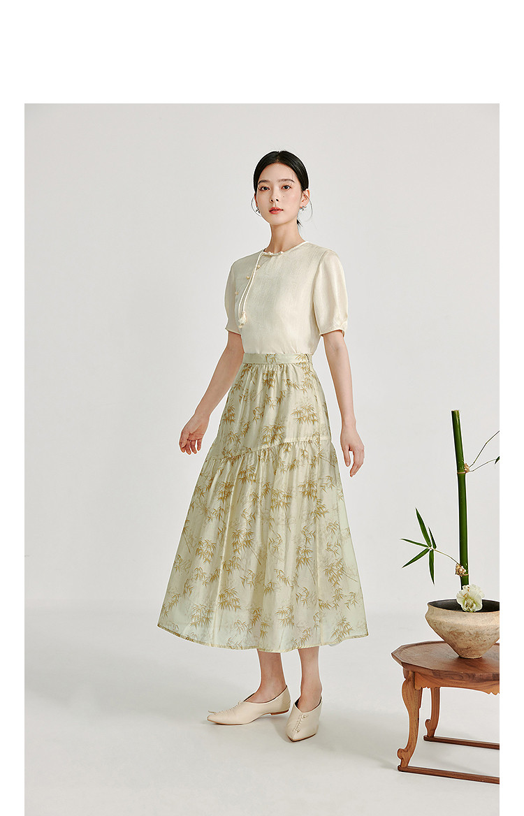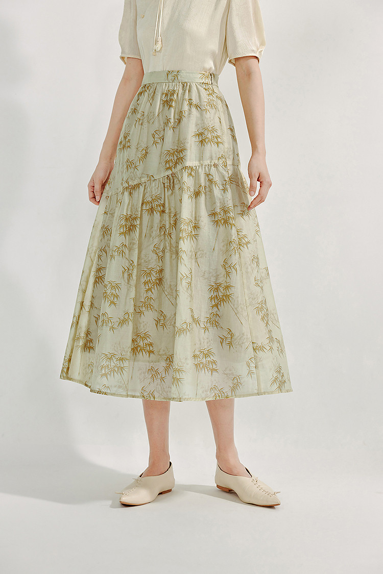 Летняя юбка, китайский стиль, в цветочек