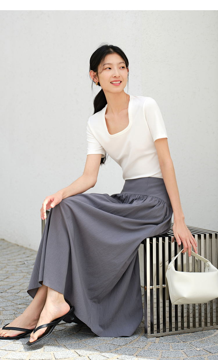 【Tiansi】 Yigu Высококачественная женская одежда 2025 Новая летняя ниша Дизайн линии свободной и элегантной юбки