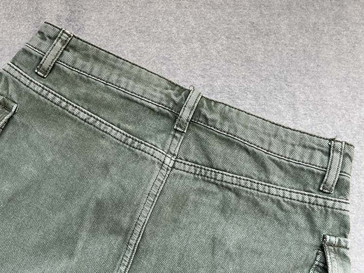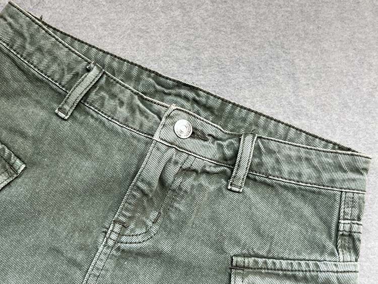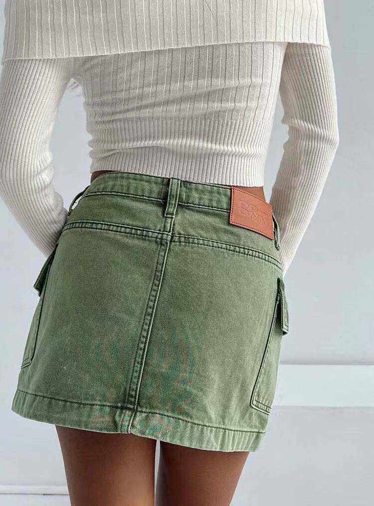 Ретро зеленая джинсовая маленькая мини-юбка, А-силуэт, с акцентом на бедрах