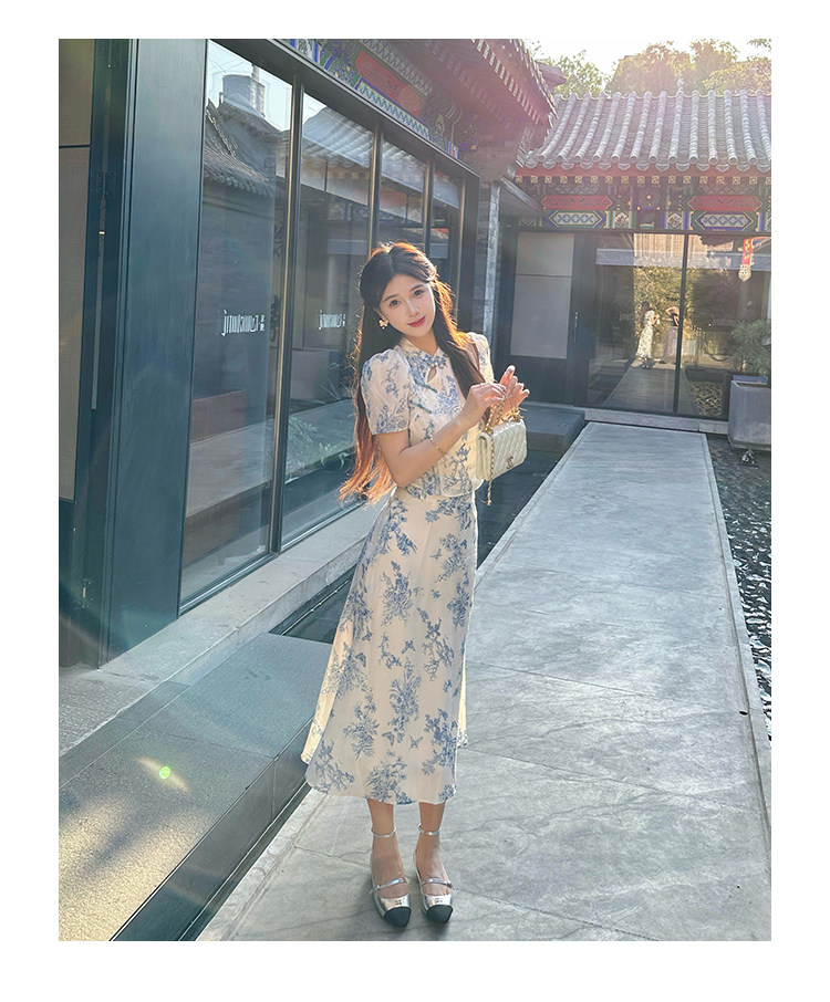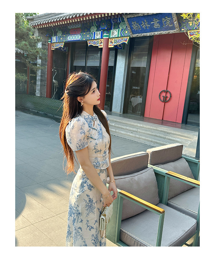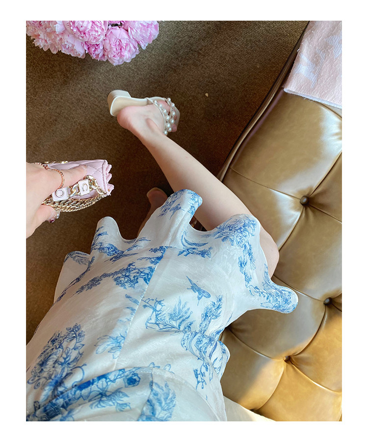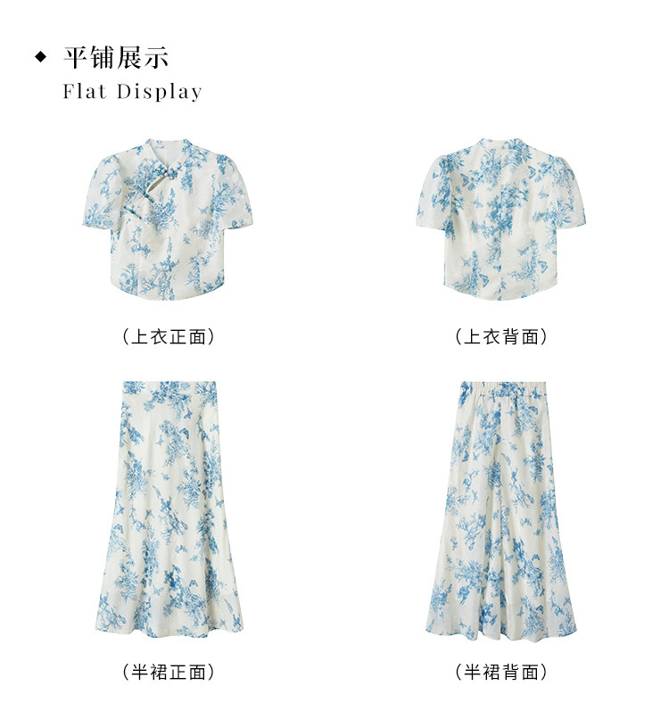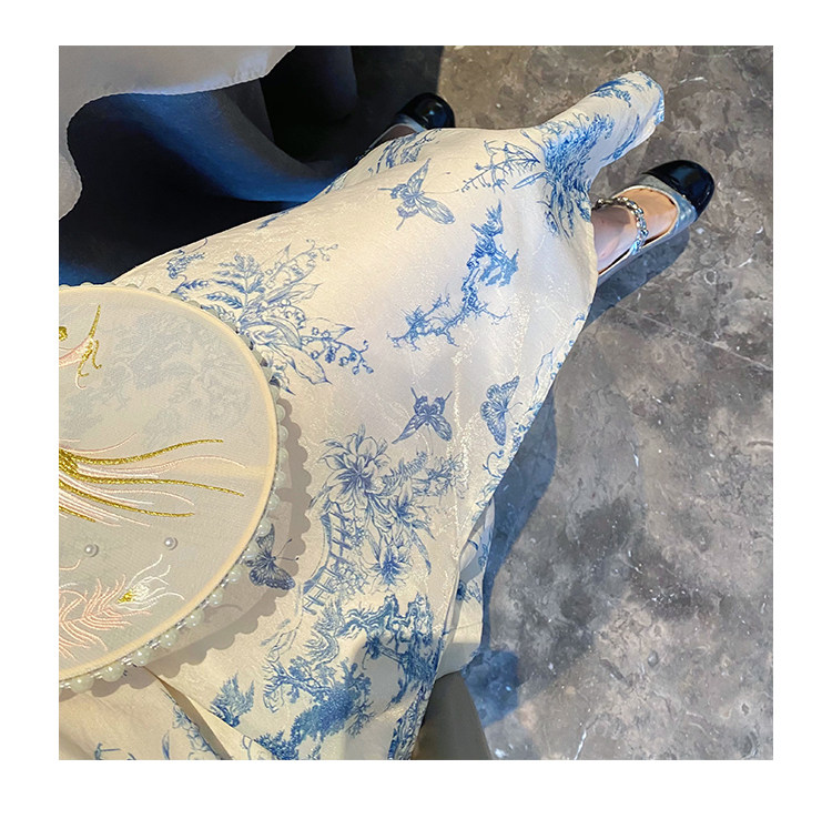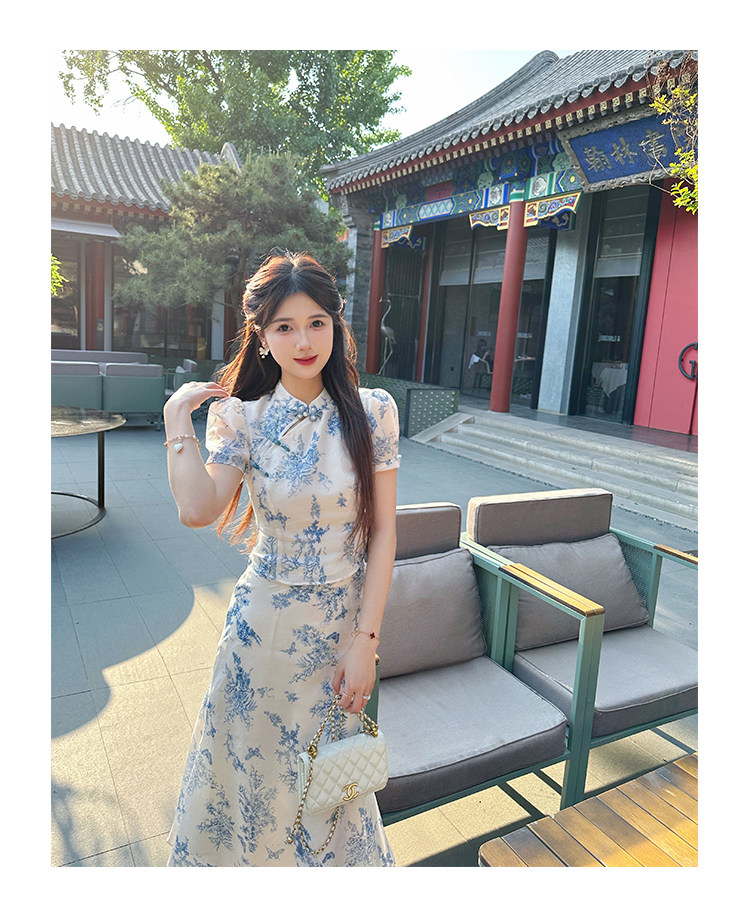 Сине-белая летняя юбка, элегантный комплект, минифигурки, китайский стиль, облегающий крой
