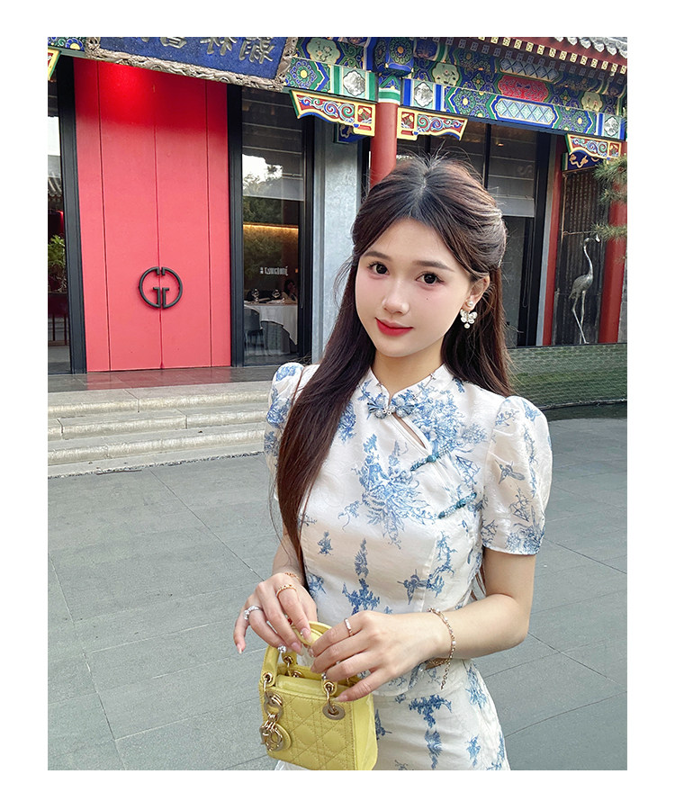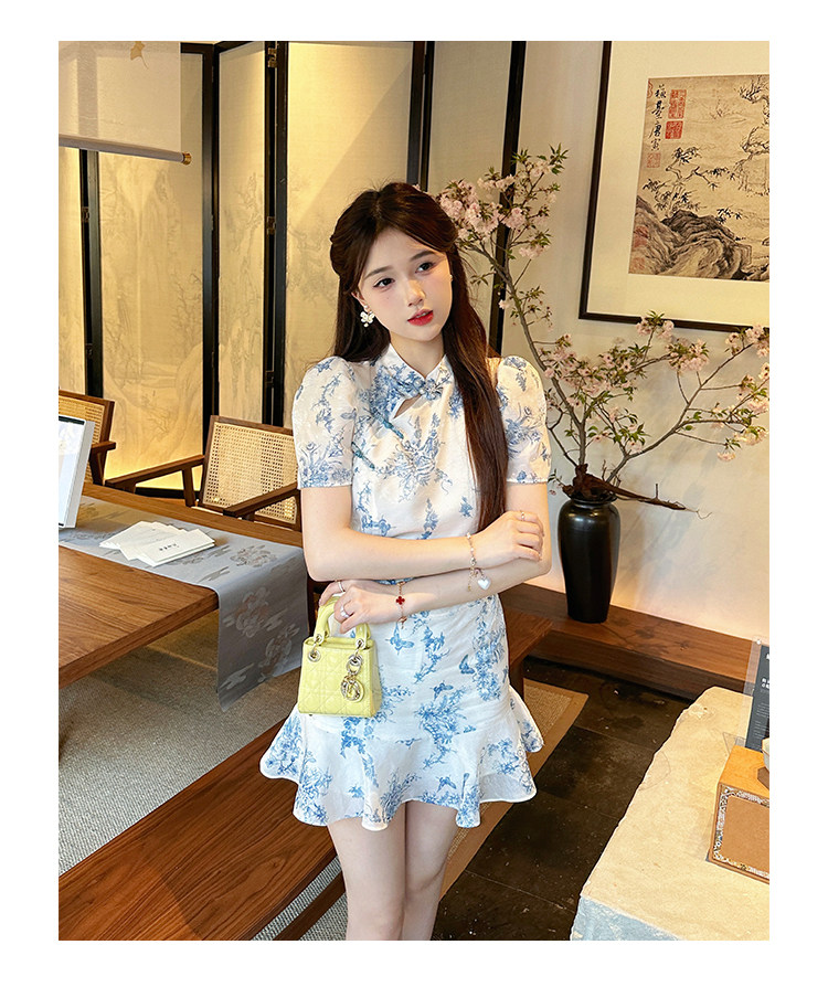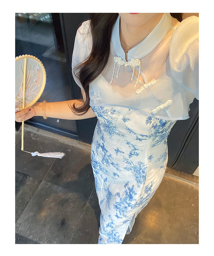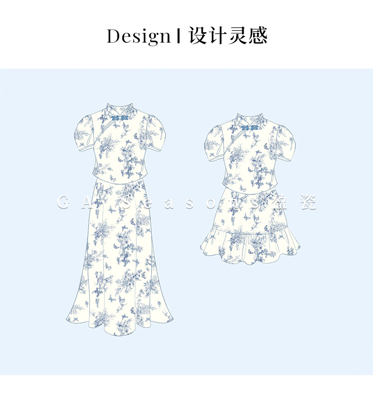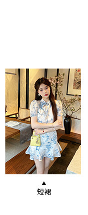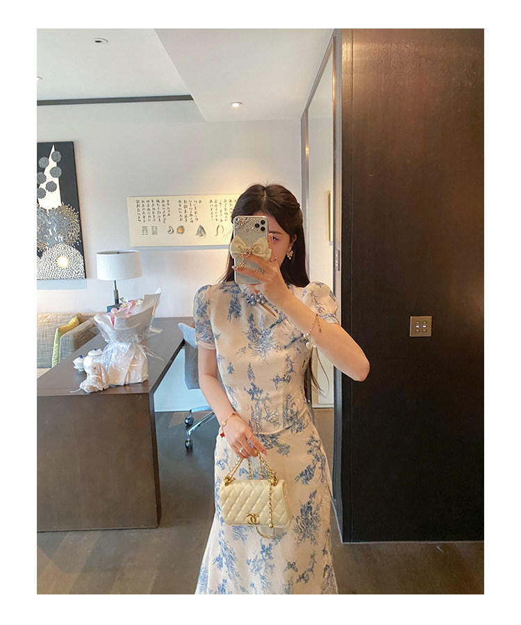 Сине-белая летняя юбка, элегантный комплект, минифигурки, китайский стиль, облегающий крой