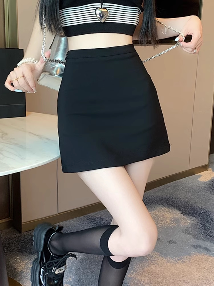 Летняя черная мини-юбка, облегающий крой, с акцентом на бедрах, высокая талия