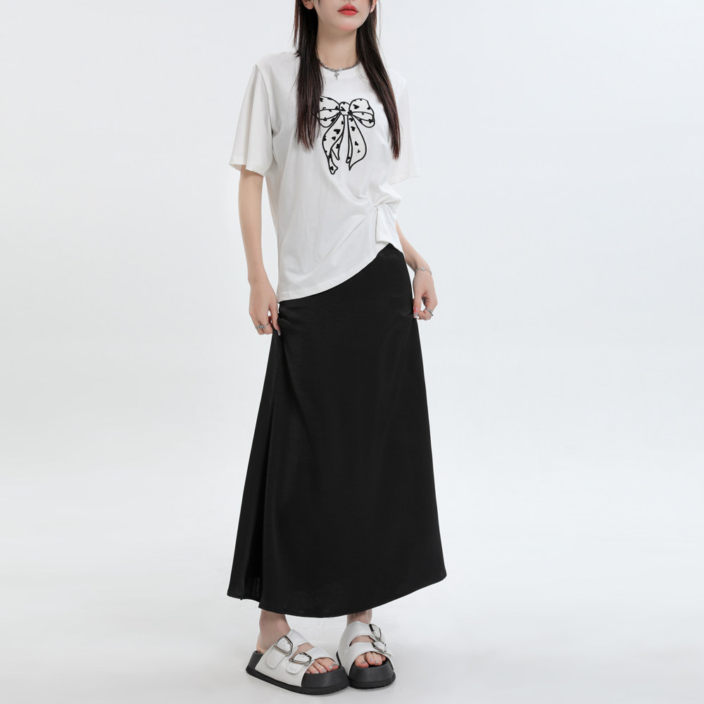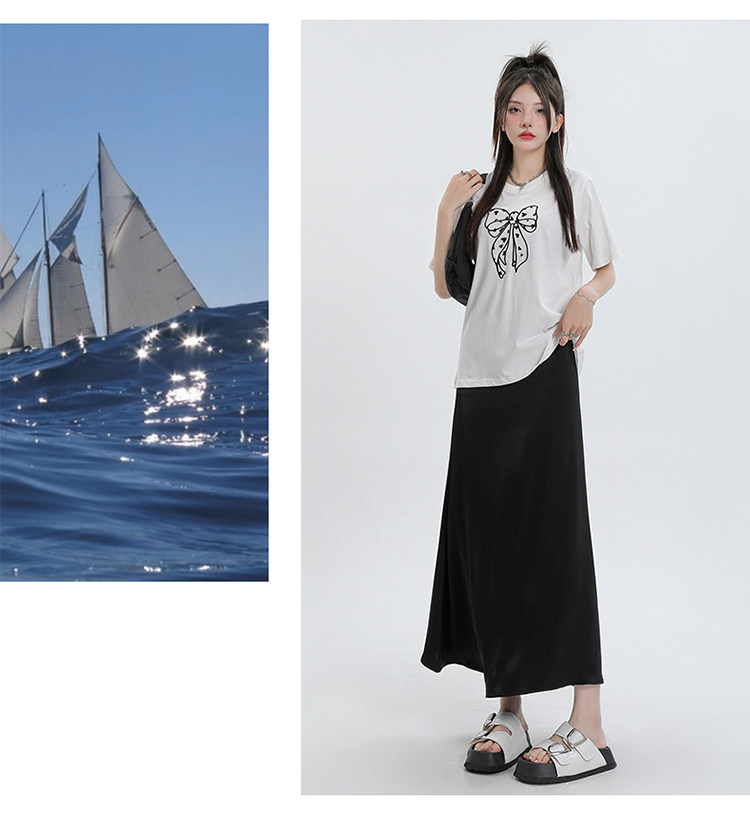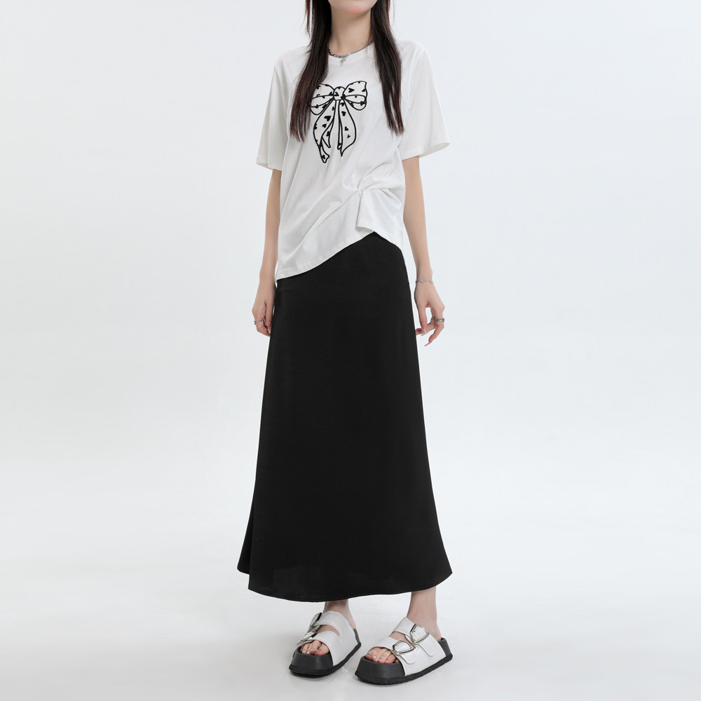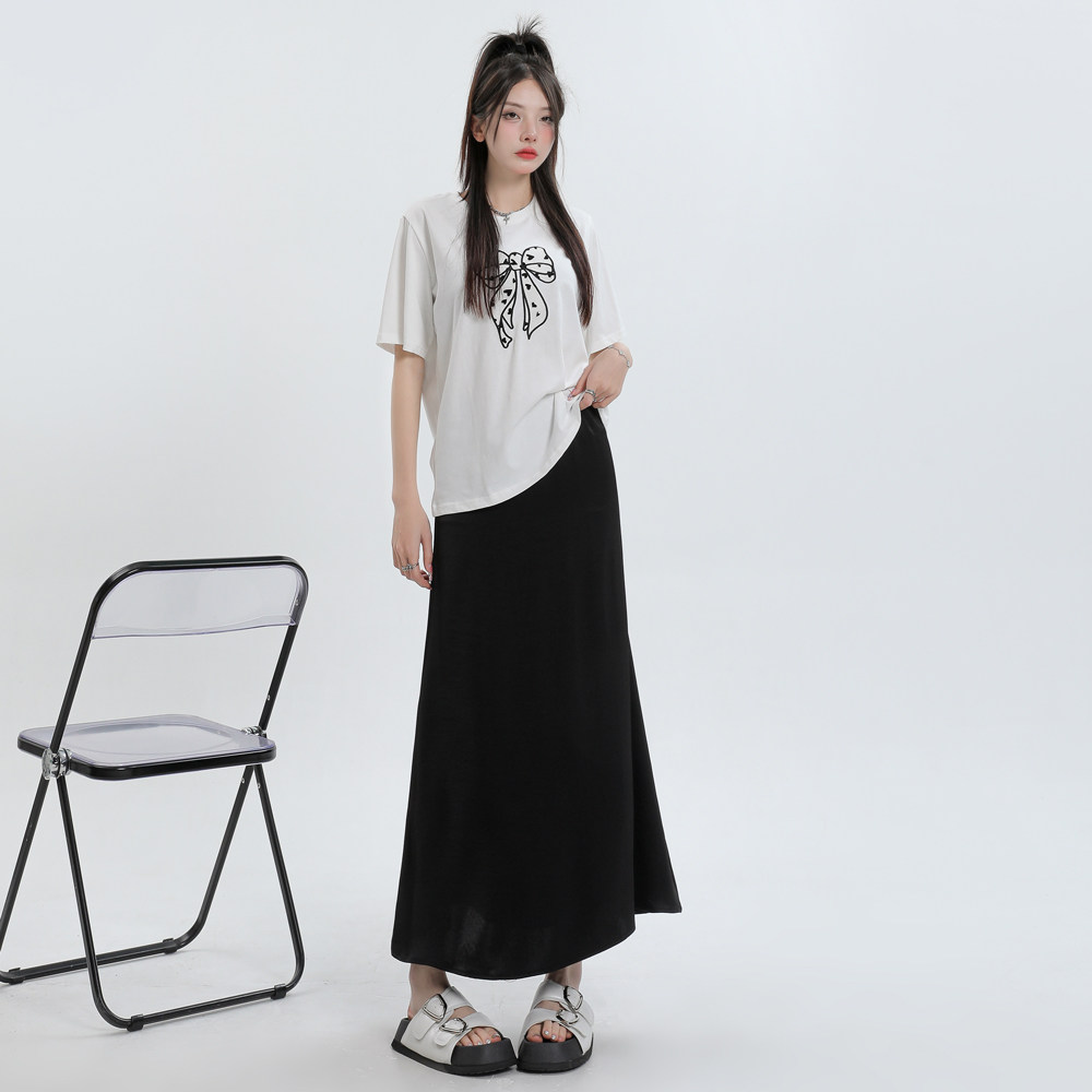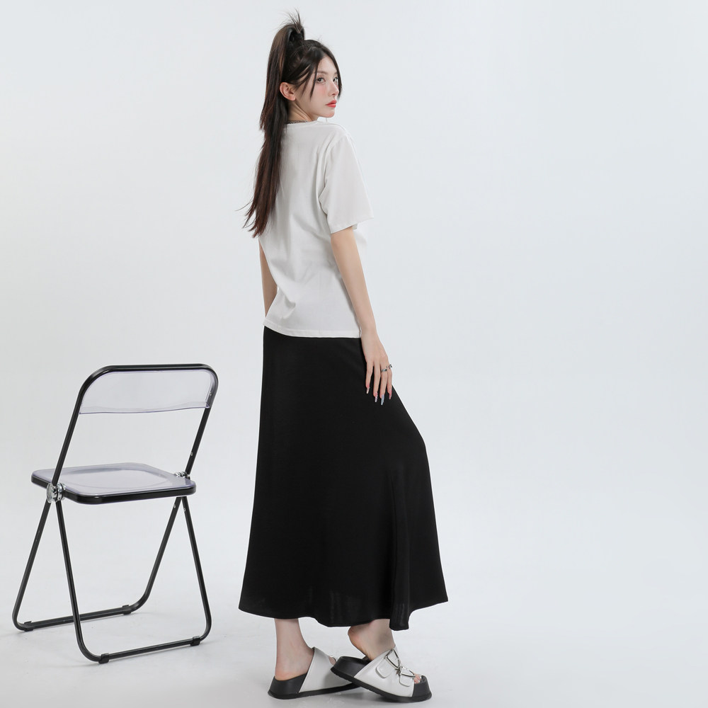 Летняя шелковистая длинная юбка, высокая талия, рыбий хвост, длина миди, А-силуэт, с акцентом на бедрах