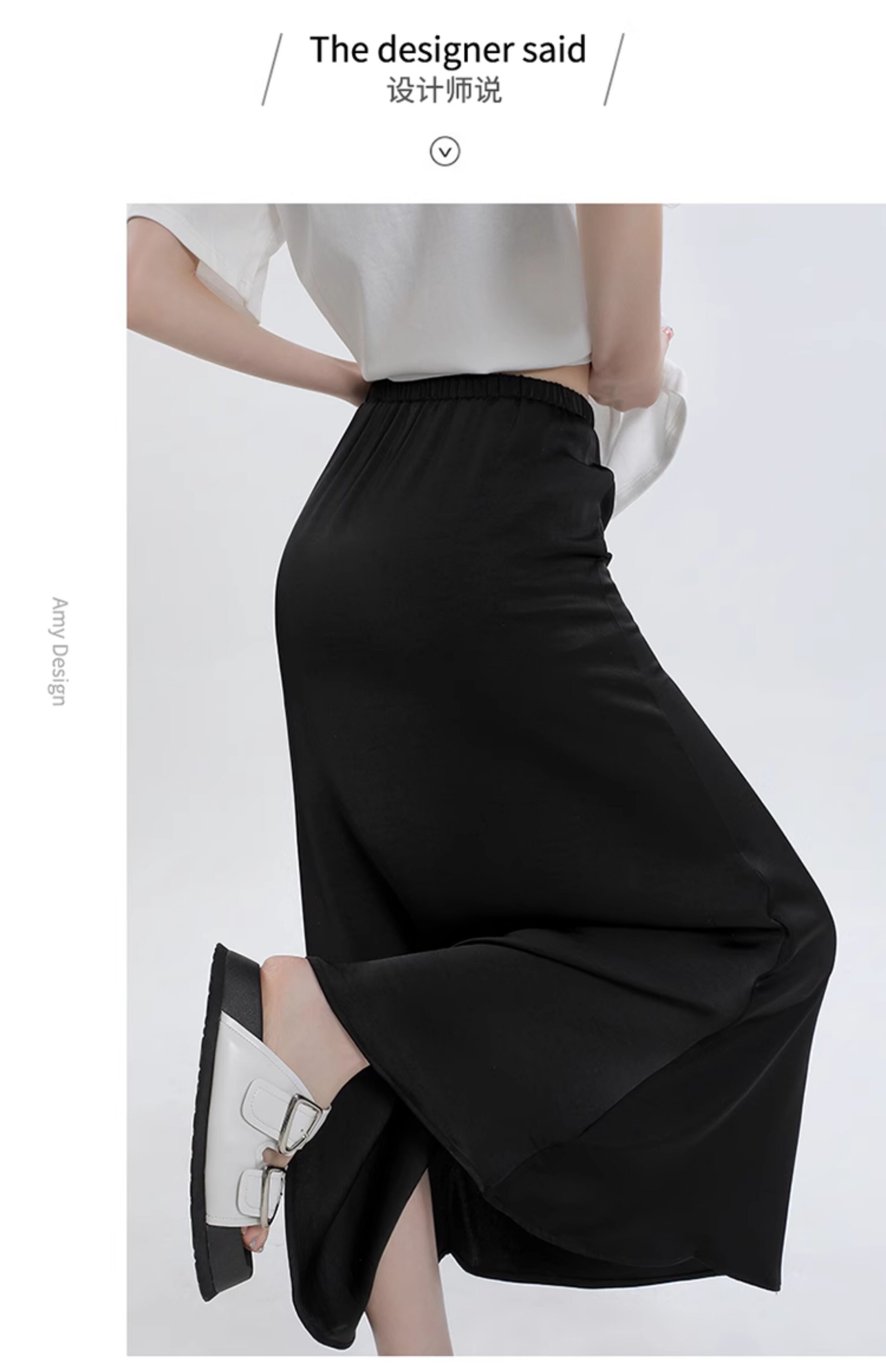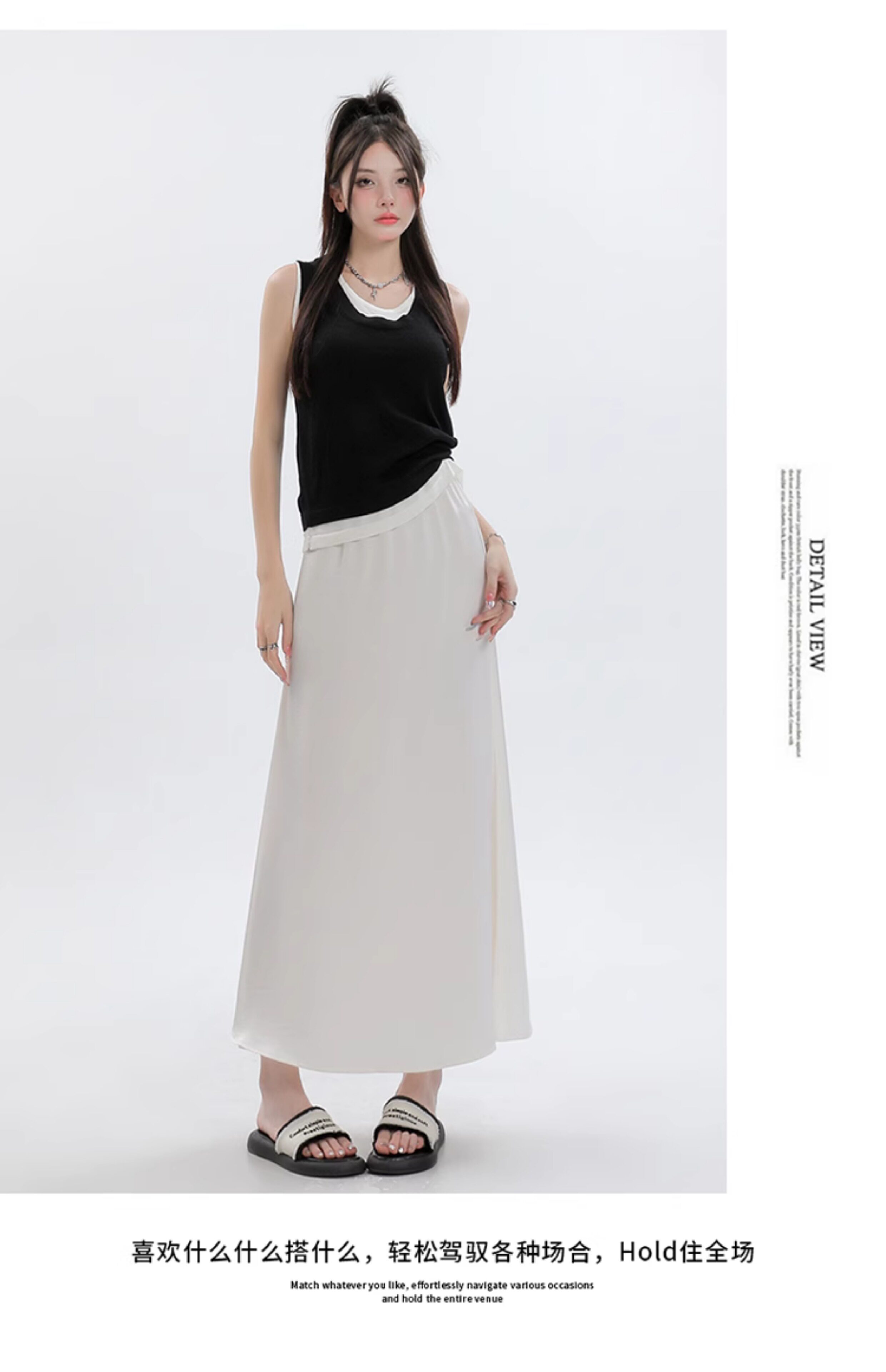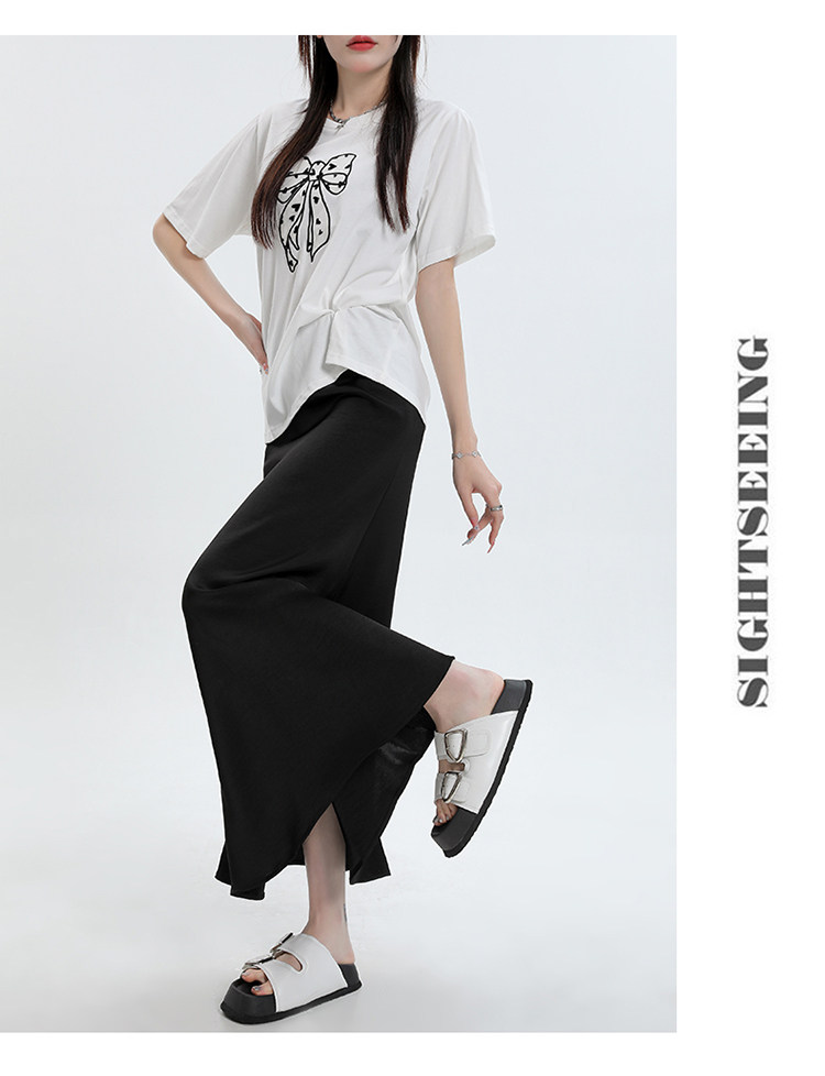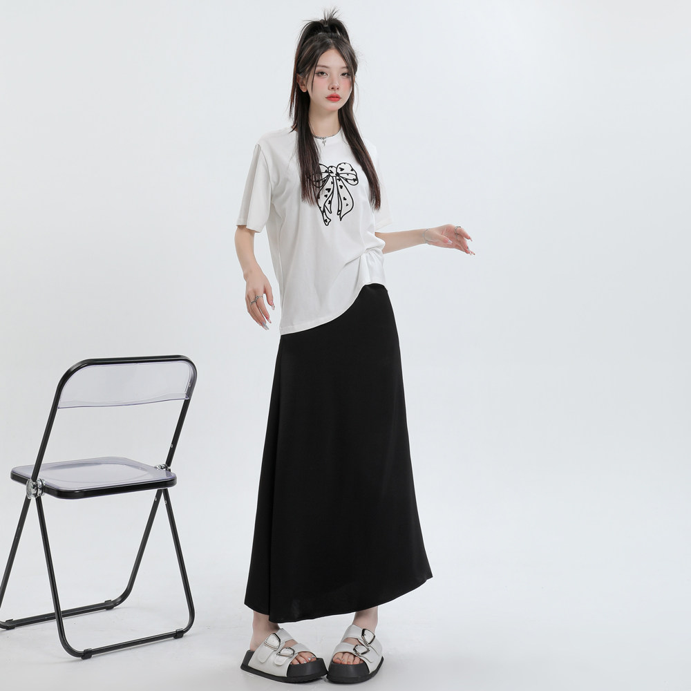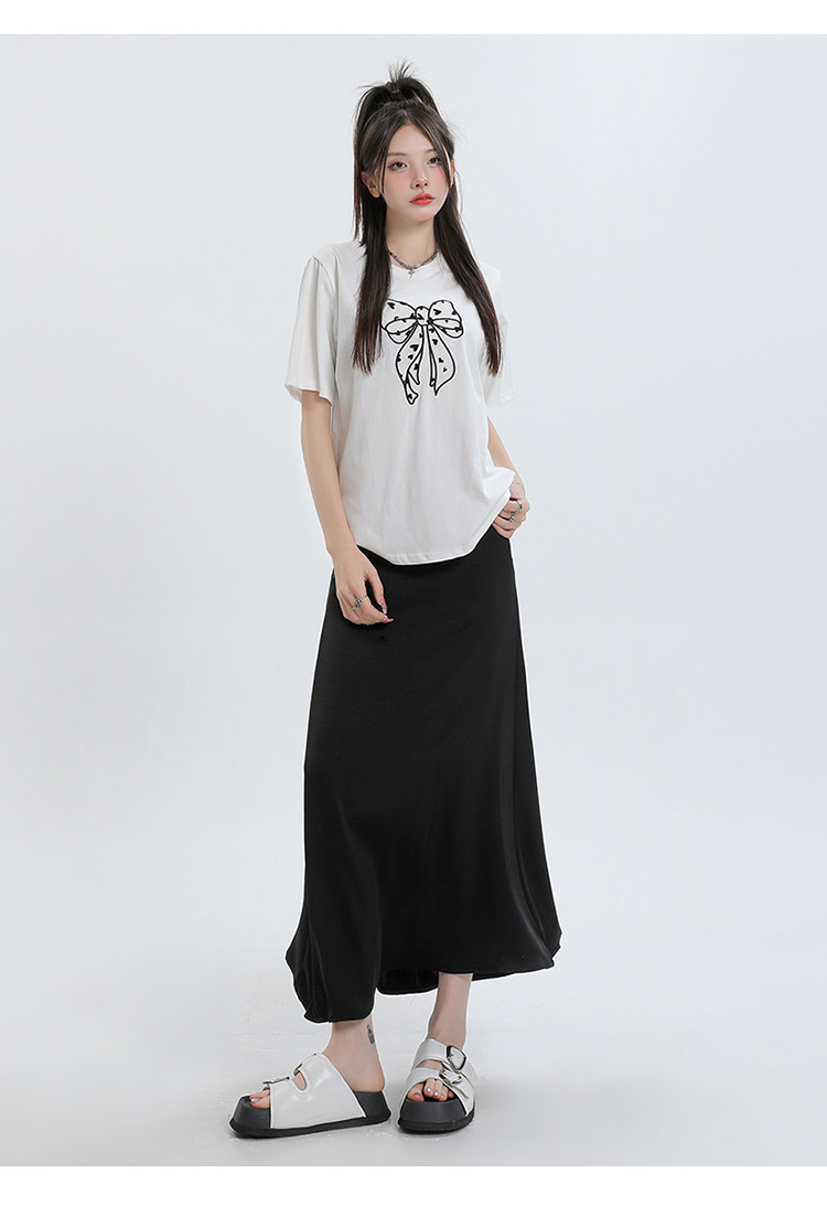 Летняя шелковистая длинная юбка, высокая талия, рыбий хвост, длина миди, А-силуэт, с акцентом на бедрах
