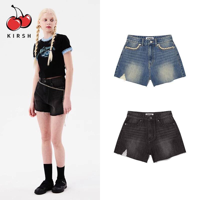 Летние штаны, ретро джинсовая юбка, шорты, по фигуре, свободный крой, высокая талия