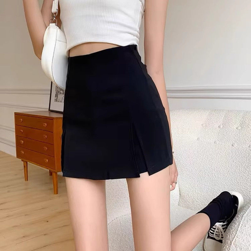 Черная летняя юбка, мини-юбка, высокая талия, 2024 года, с акцентом на бедрах