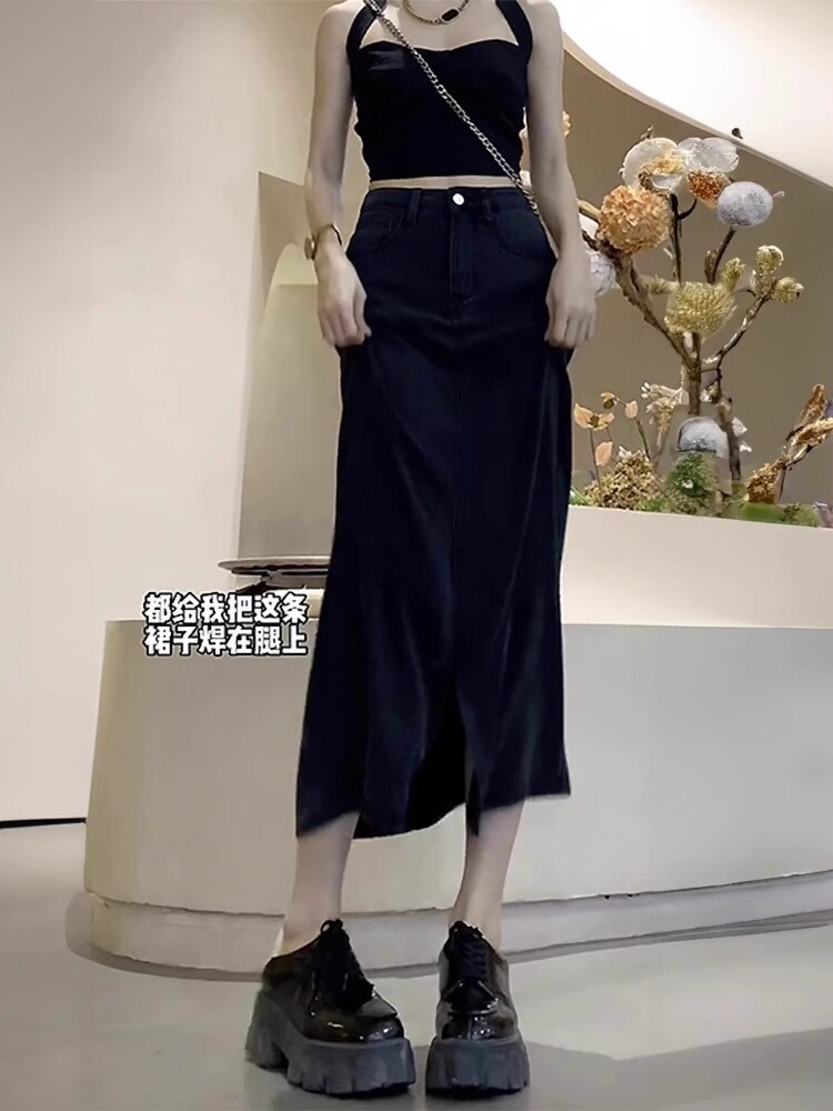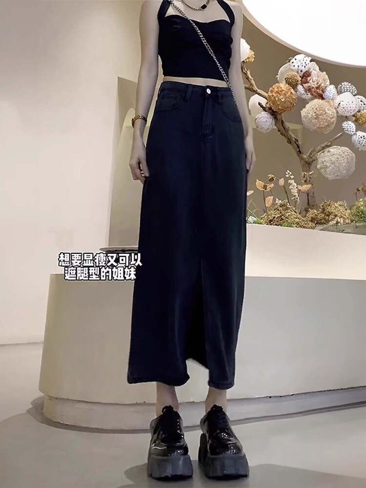 Демисезонная джинсовая юбка, поясная сумка, А-силуэт, высокая талия