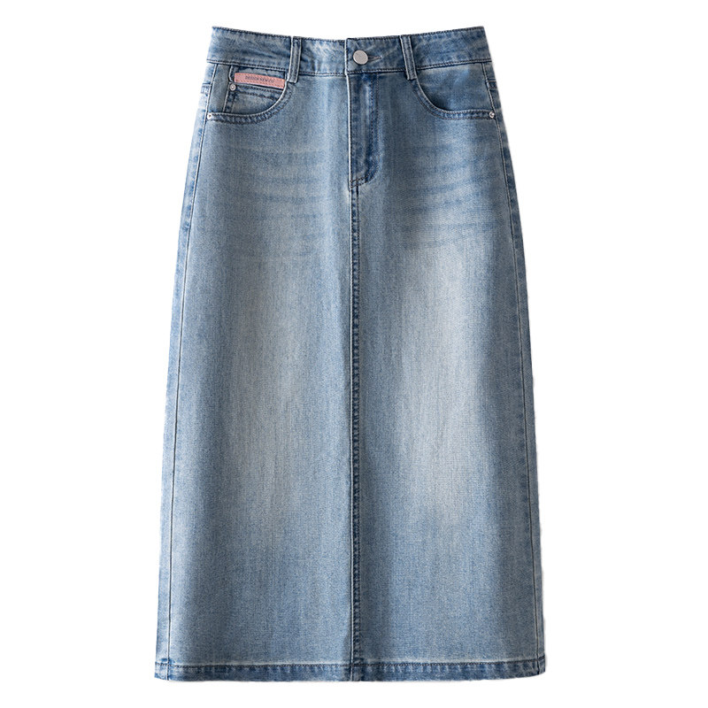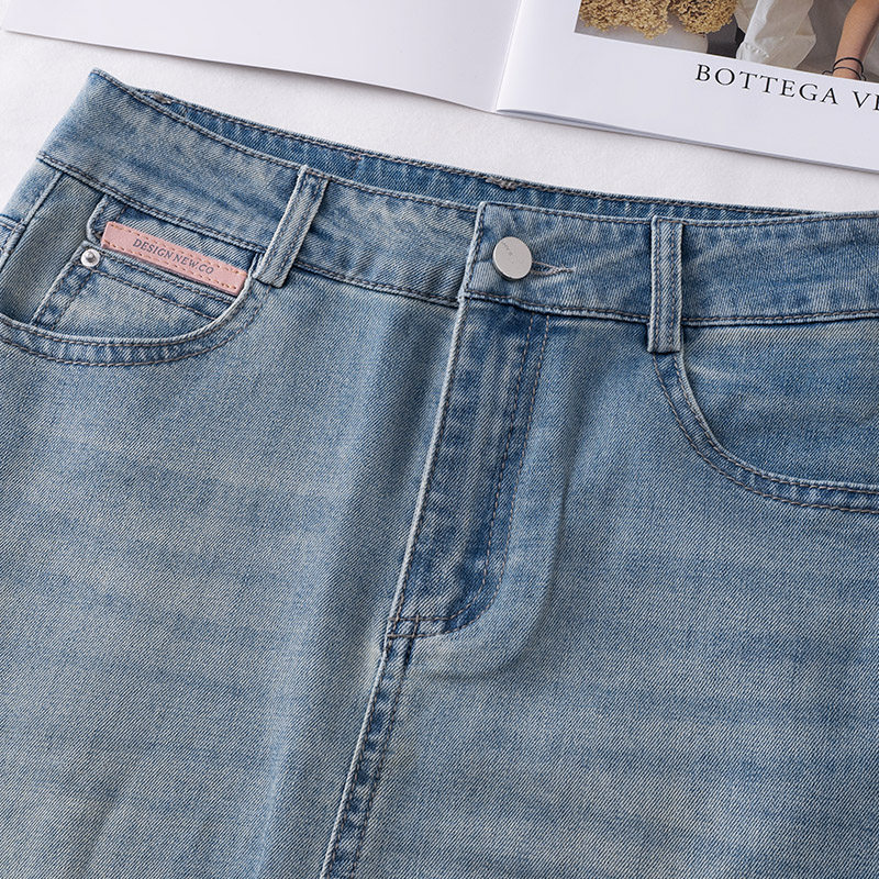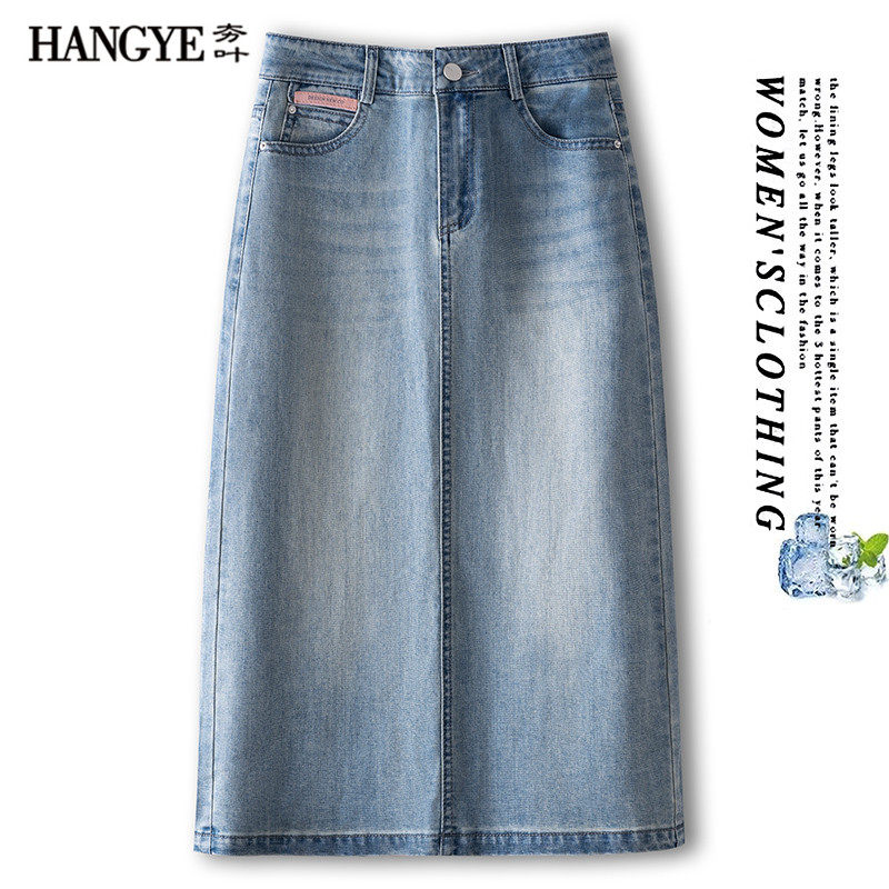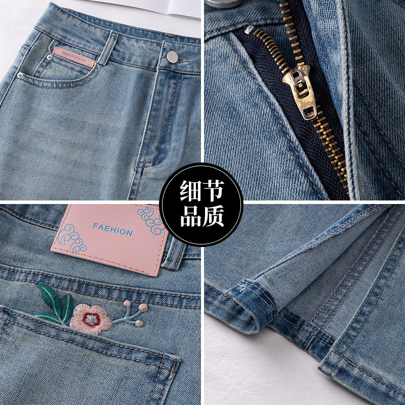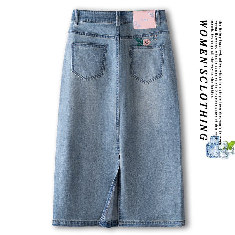 Летняя тонкая джинсовая юбка, длинная вышивка, высокая талия, с вышивкой, А-силуэт, с акцентом на бедрах