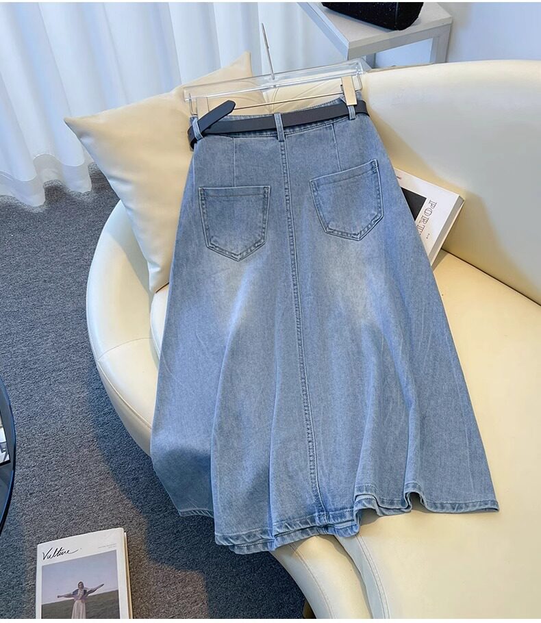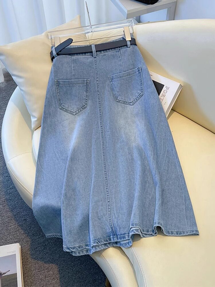 Брендовая джинсовая летняя юбка, высокая талия, А-силуэт, длина миди