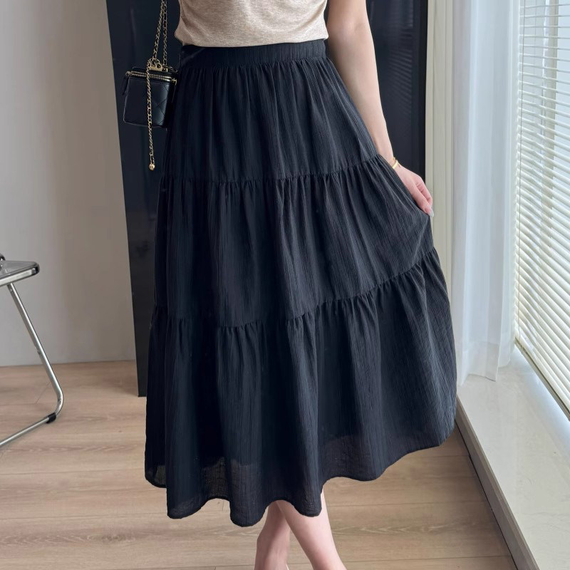 Длинная юбка, эластичная талия, средней длины
