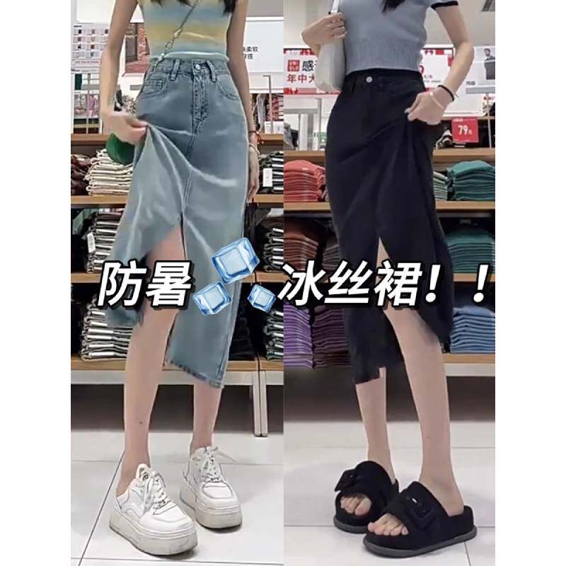 Синяя тонкая джинсовая юбка, шелковая длинная юбка, для формы тела «груша», размер, А-силуэт