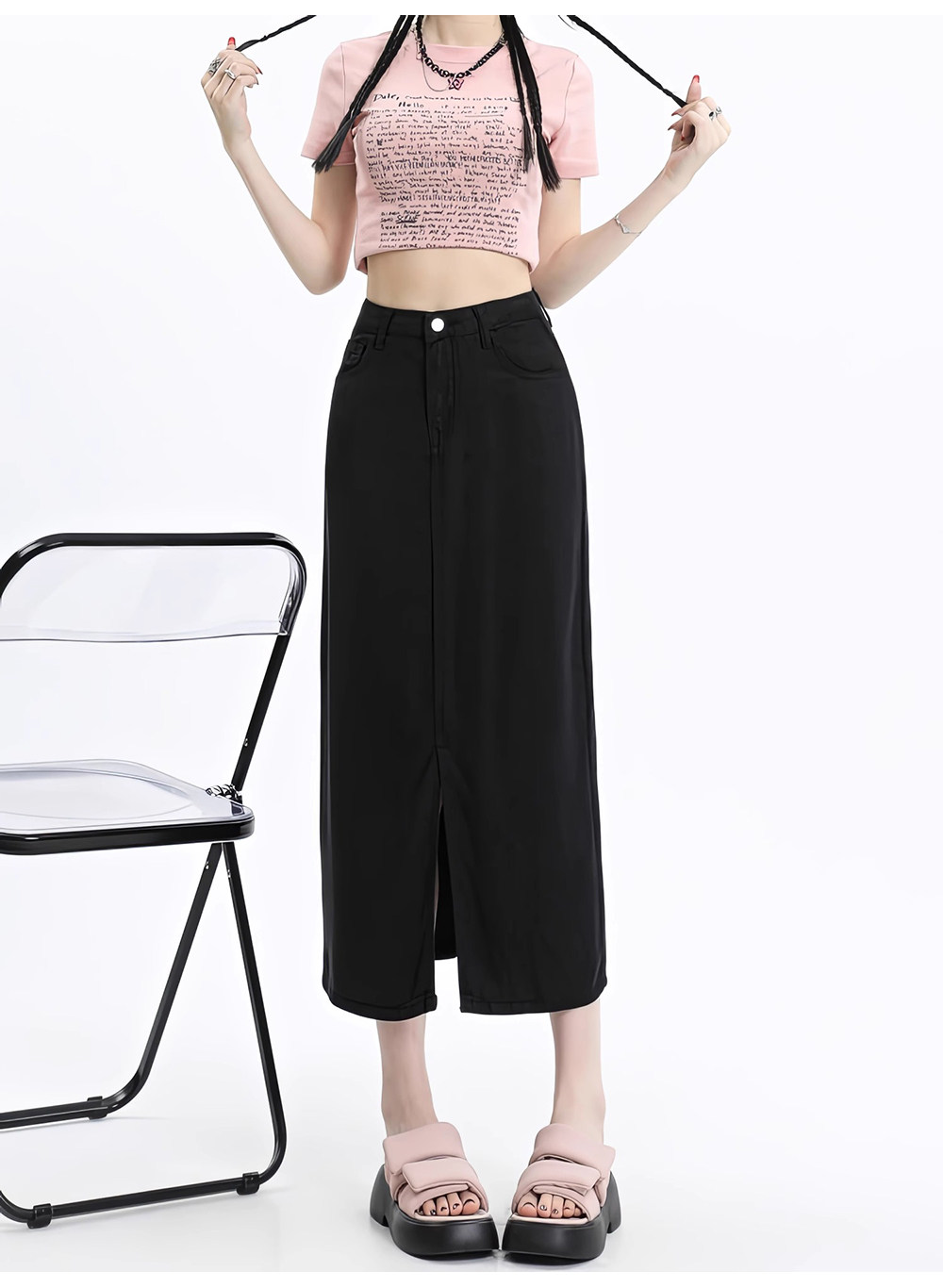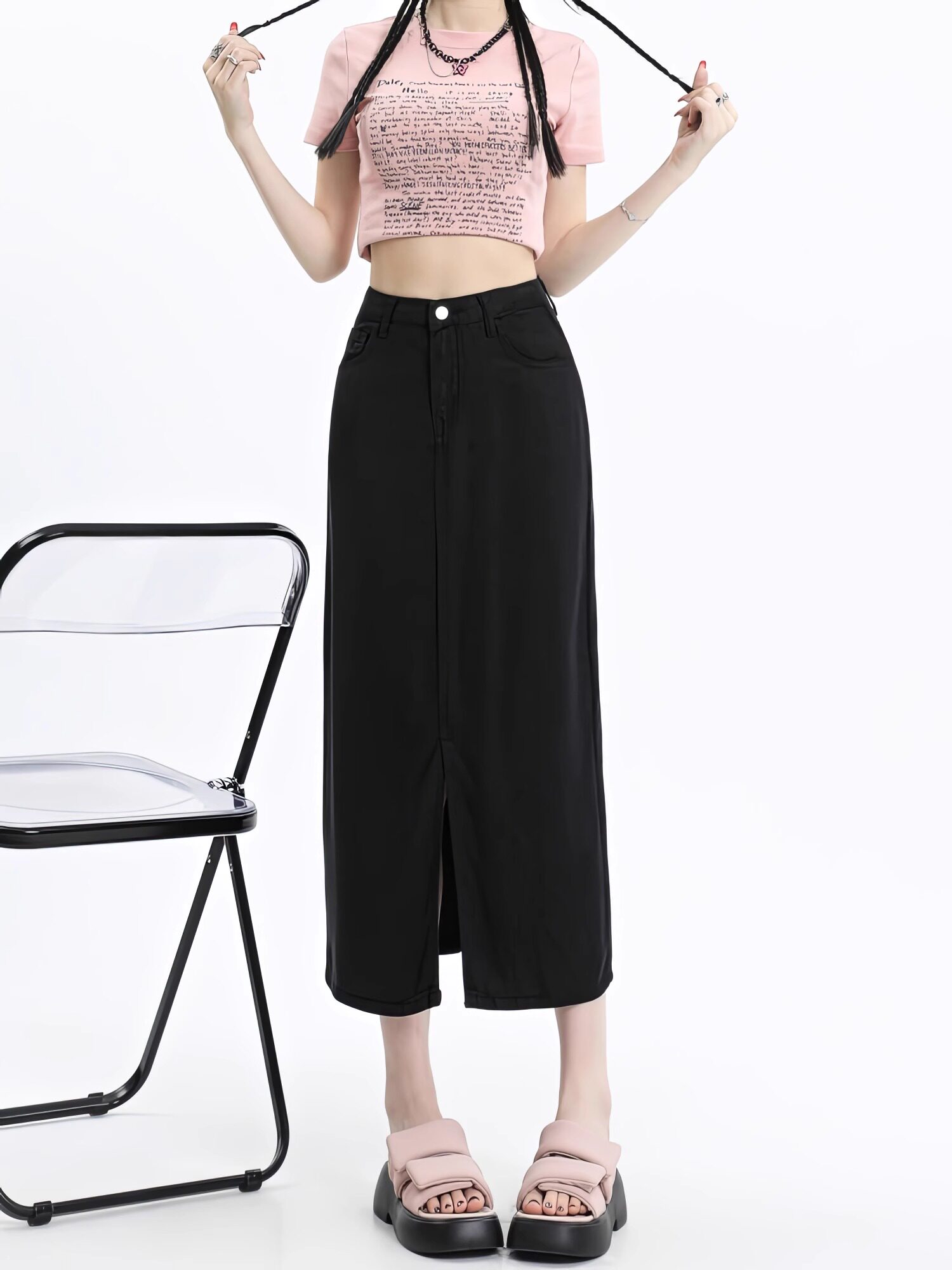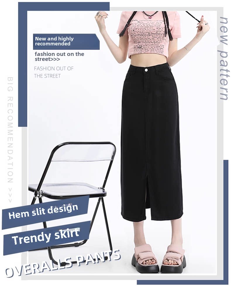 Черная летняя корейская маленькая джинсовая юбка, высокая талия